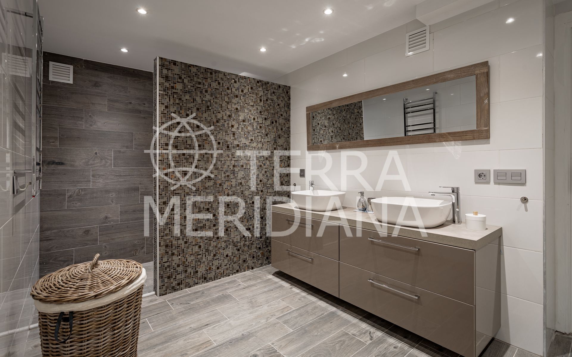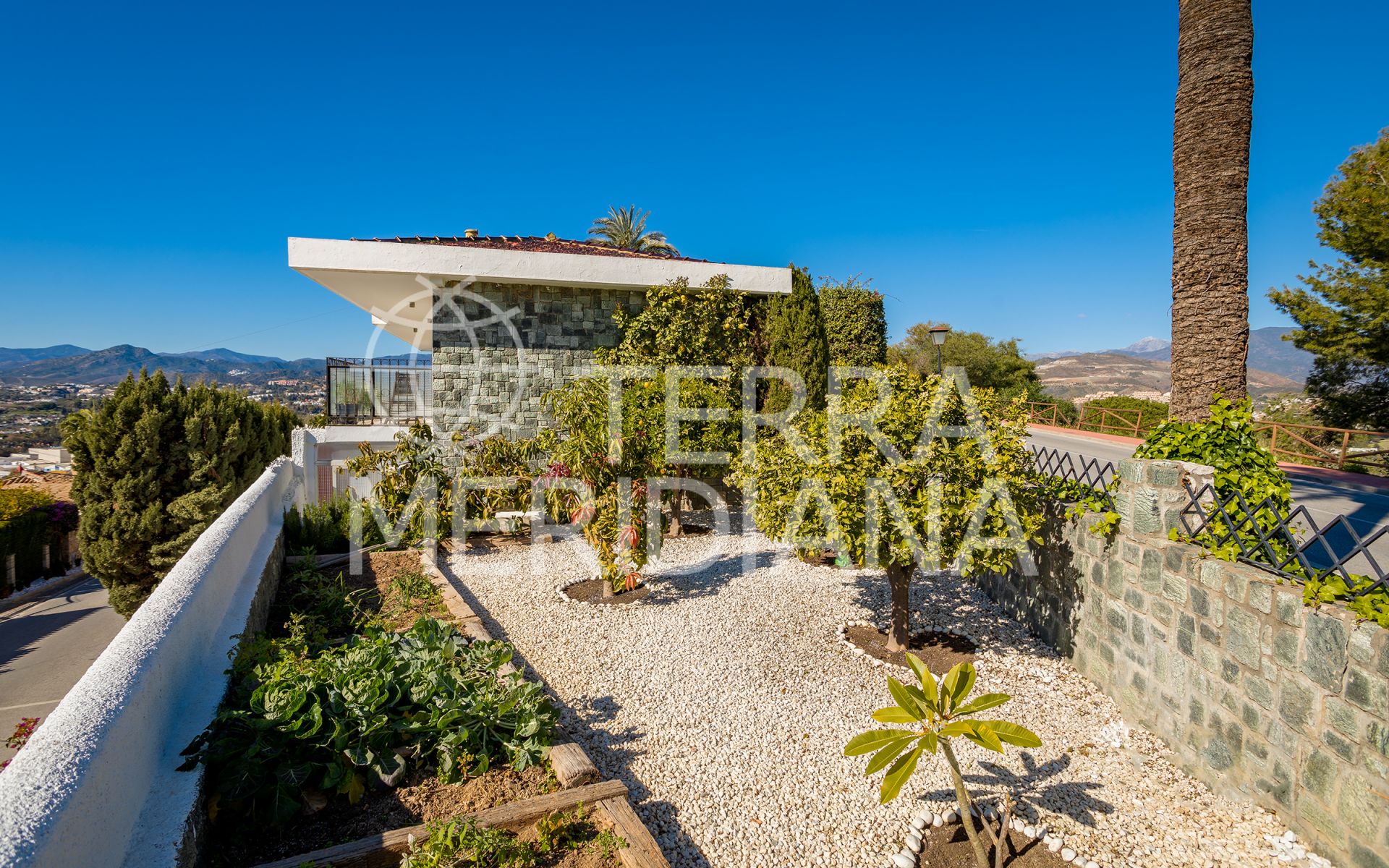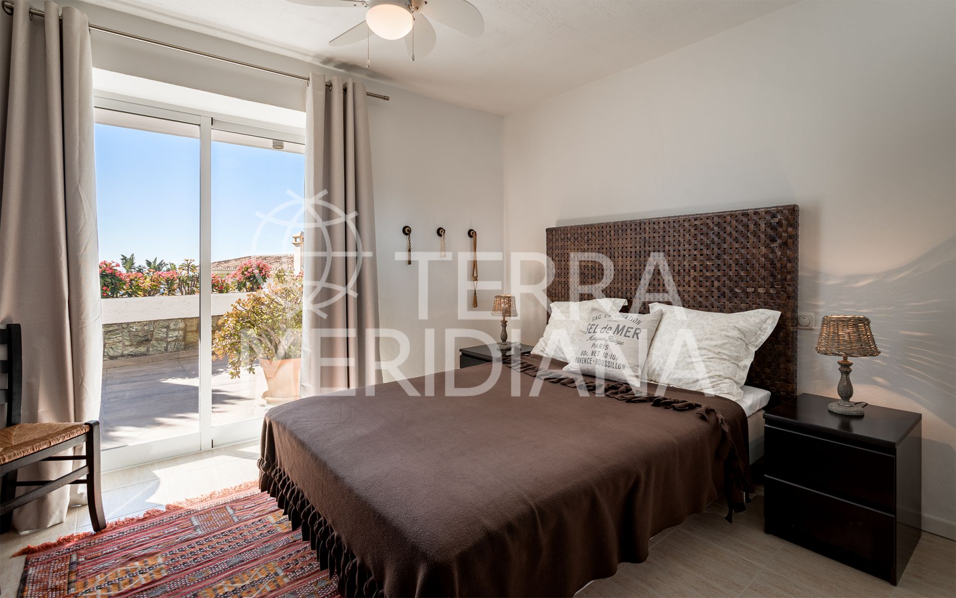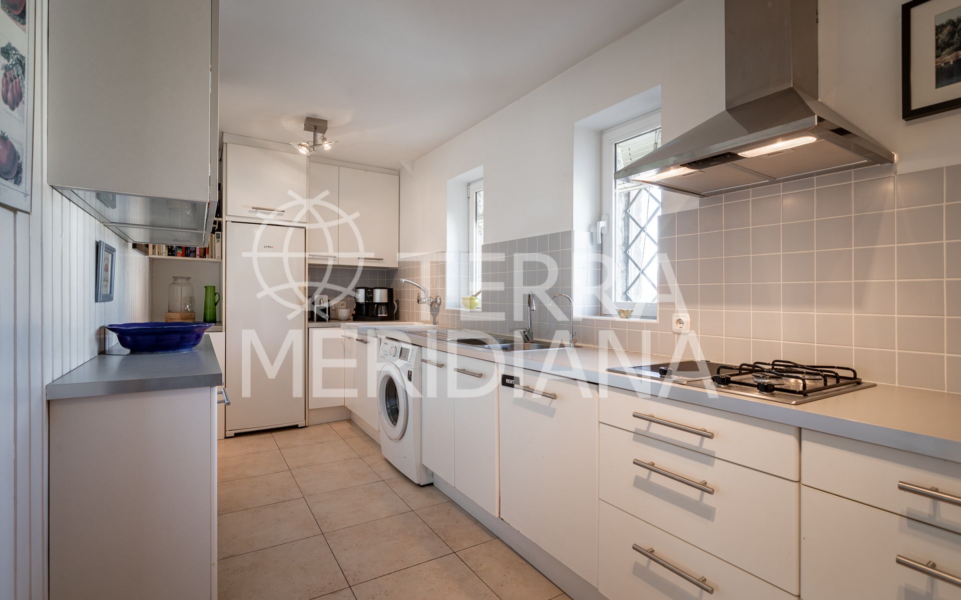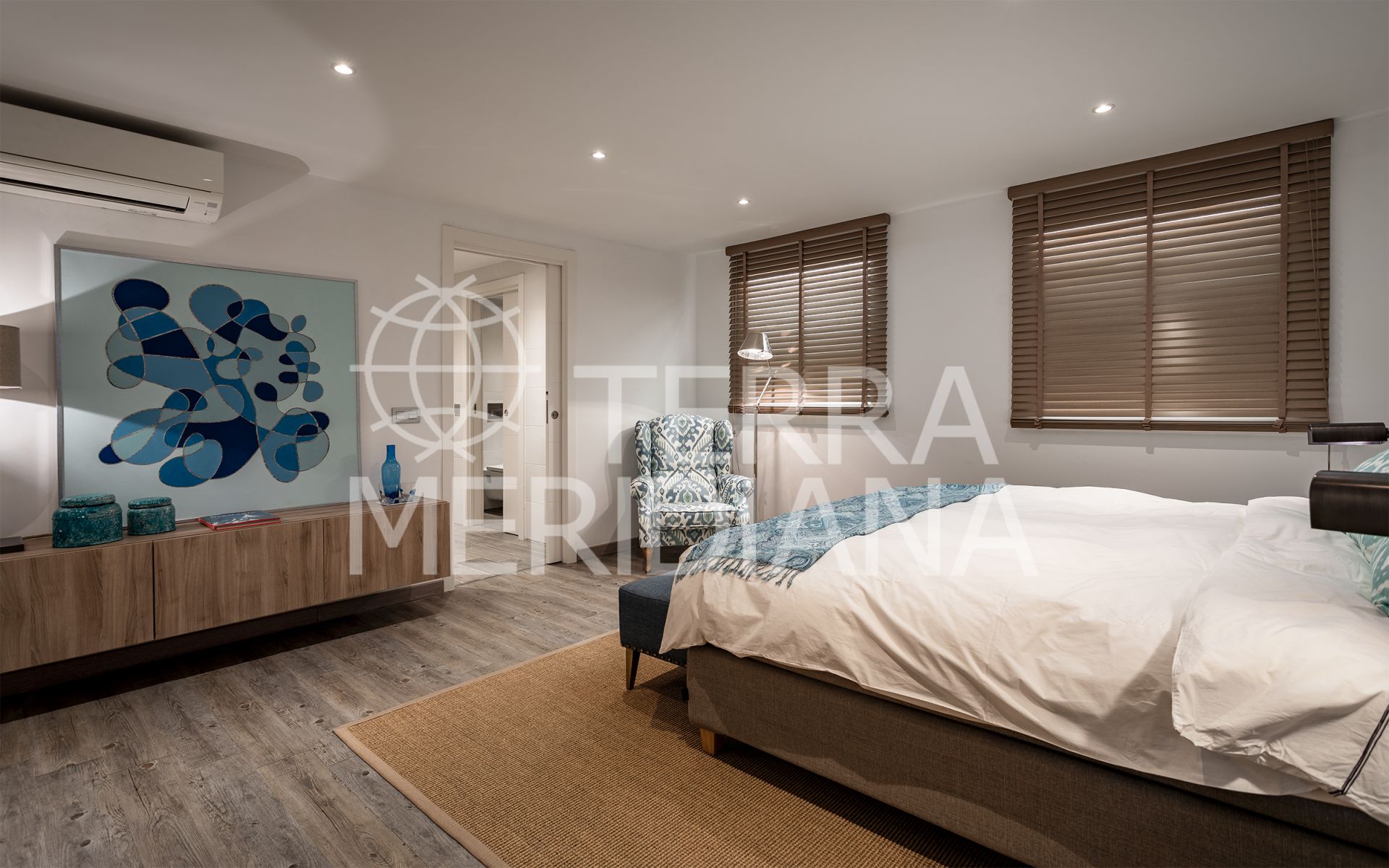 Fantastic villa with panoramic sea views walking distance to amenities in Nueva Andalucia. Built on three levels, property comprises, on entrance level: en-suite master bedroom; living/dining room with fireplace and access to the terraces enjoying the panoramic sea views; fully equipped kitchen with laundry room & dirty kitchen with separate entrance; guest toilet. Middle floor: double sitting room with fireplace and access to the heated swimming pool & bbq area; an office; 2 bedrooms sharing a bathroom; and a guest toilet. Basement: en-suite bedroom; garage with space for 4 cars; 2 large storages; a tool workshop; a wine cellar; the machinery room. Extra features include: alarm system; underfloor heating in the bathrooms; solar panels for the whole electric system. A property with lots of potential just a 5-minute drive (or 25-minute walk) to the beach and Puerto Banús.