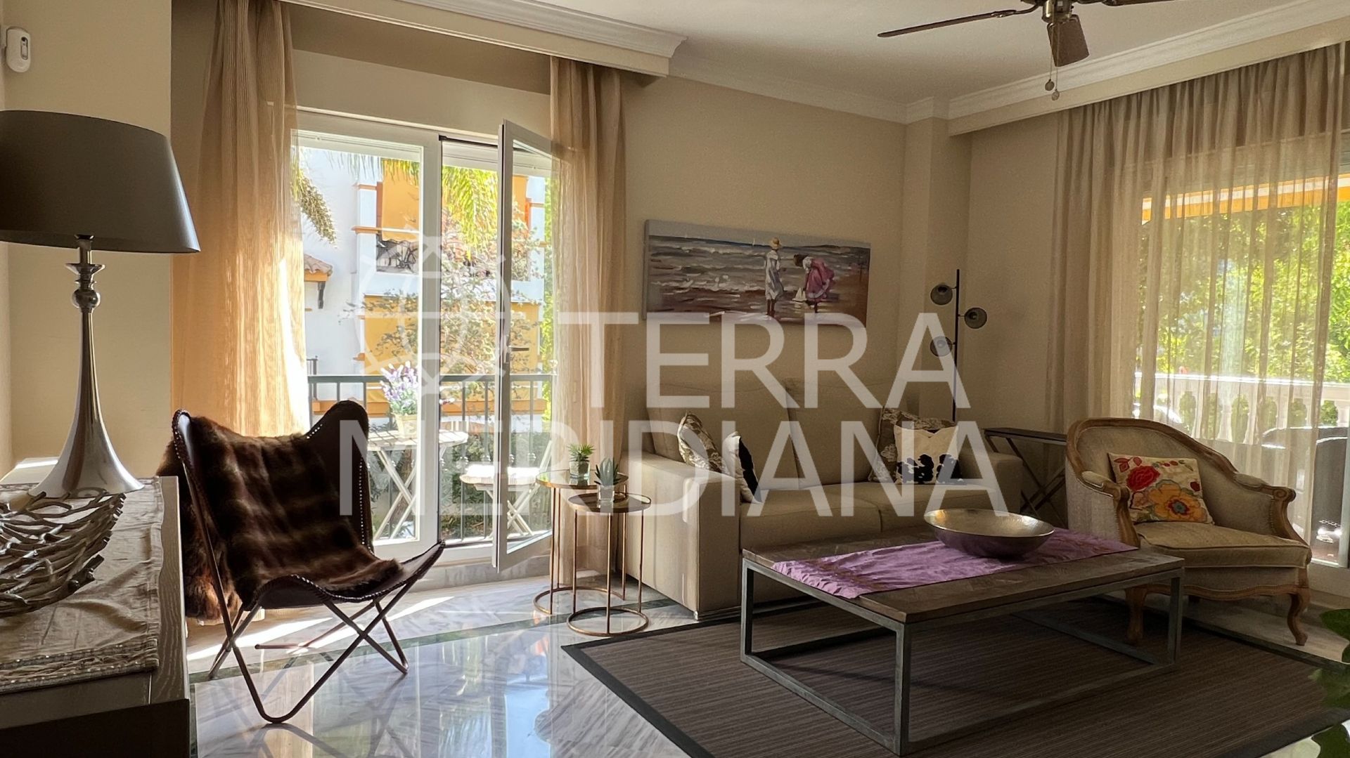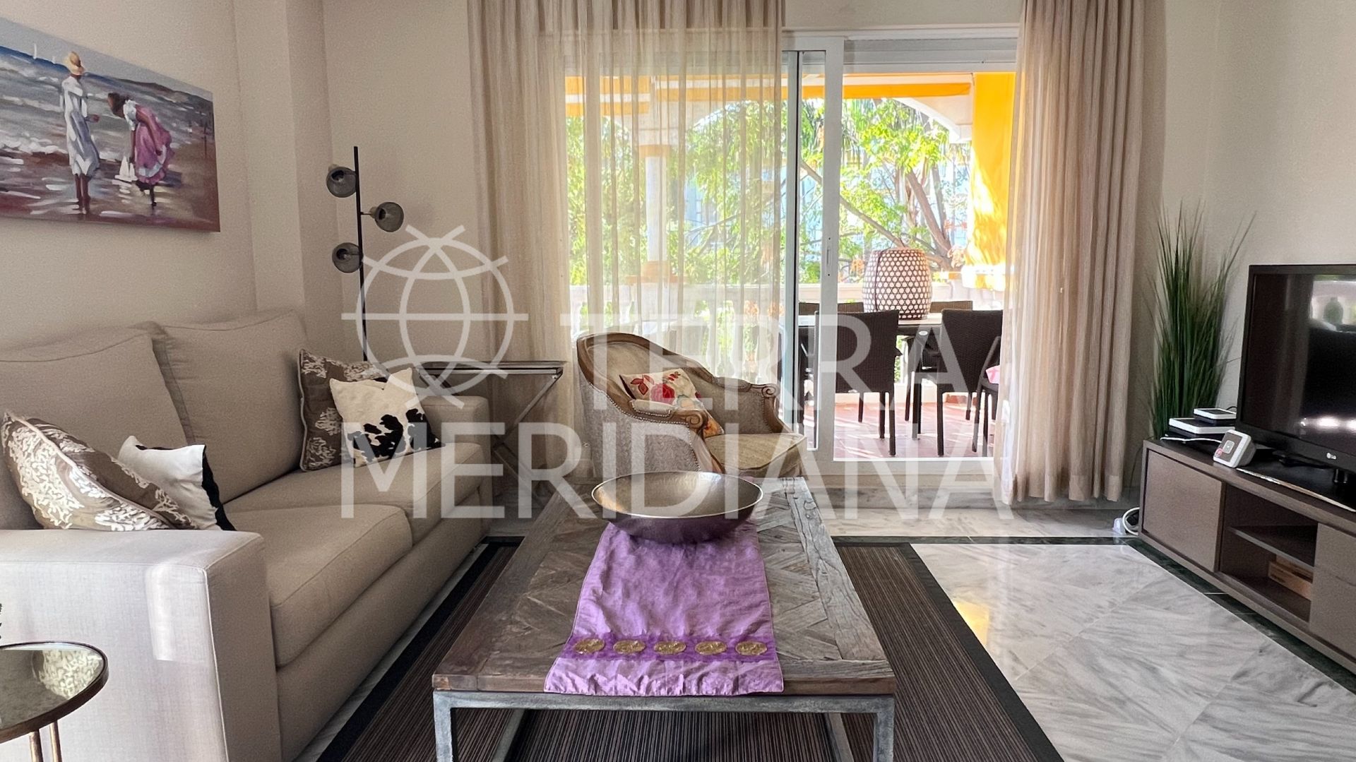 This beautifully renovated and fully furnished 3-bedroom, 2-bathroom ground-floor apartment is located in the sought-after area of Nueva...