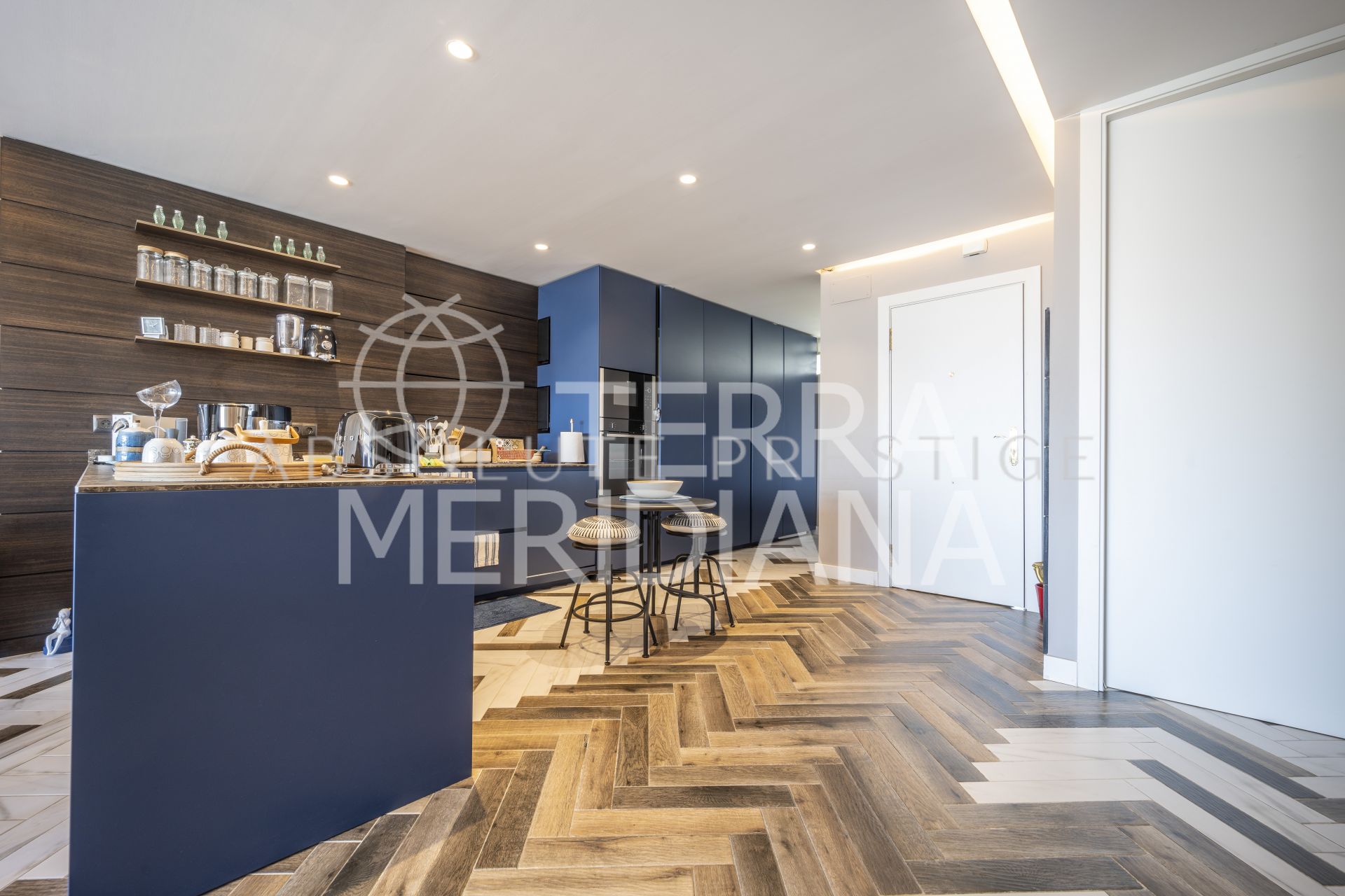 The expansive living room seamlessly integrates with an open-plan designer kitchen, creating an ideal space for both entertaining and everyday living. Additional amenities include a dedicated storage room and a private parking space for added convenience.