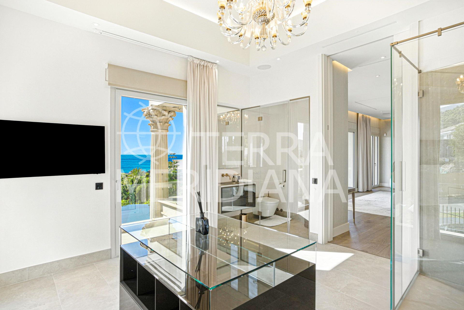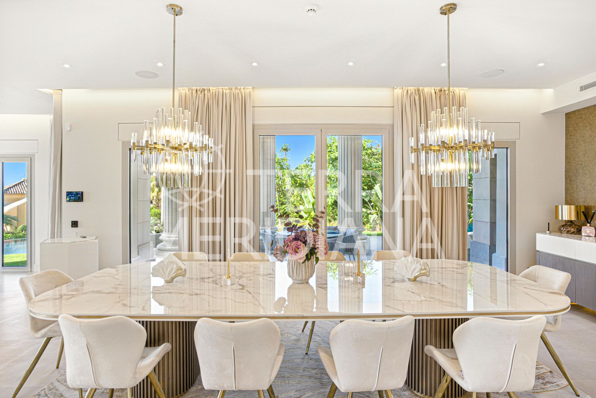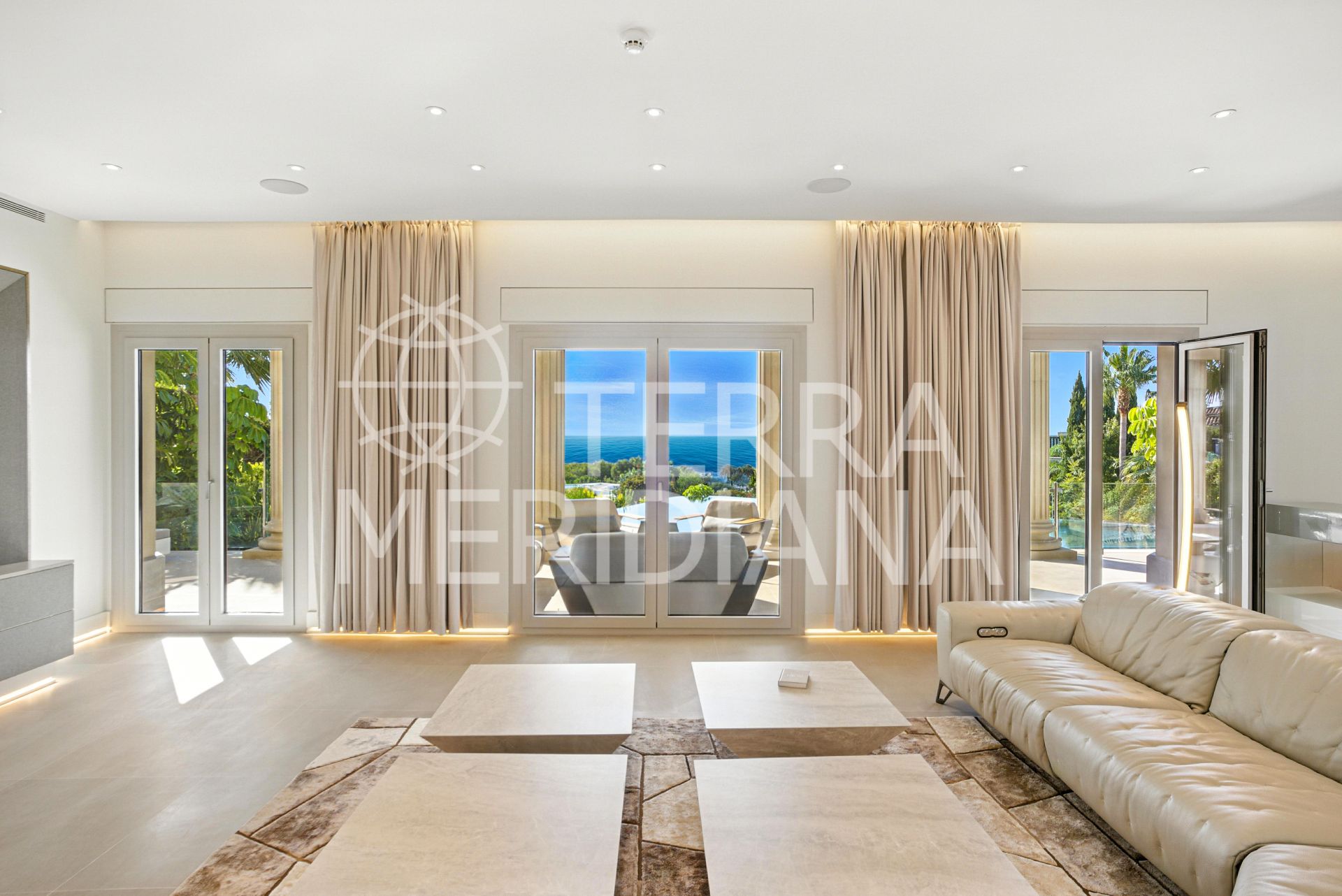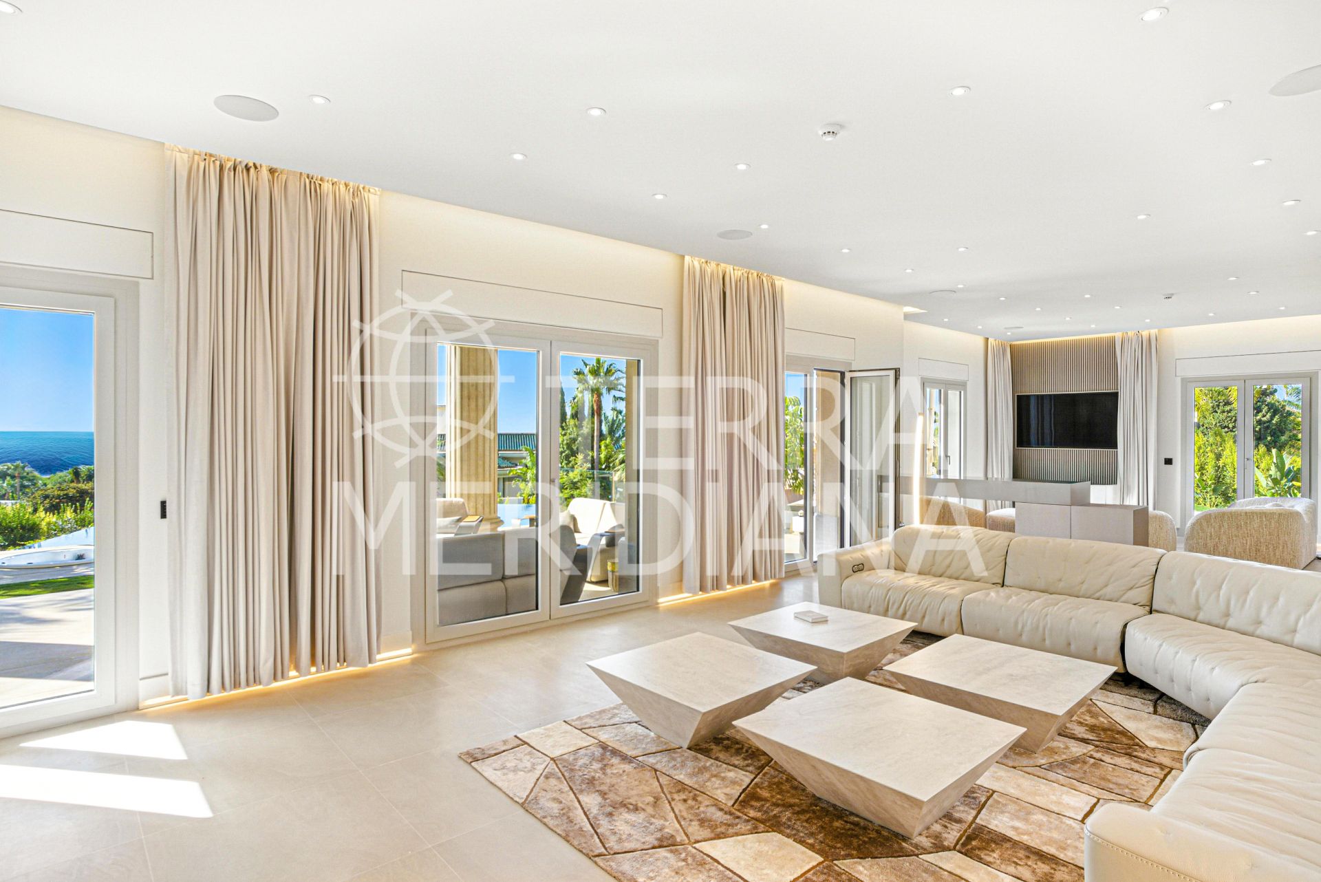 An architecturally unique, south-facing property located in the exclusive gated community of Sierra Blanca on Marbella’s prestigious Golden Mile. This brand-new mansion offers exceptional design, panoramic sea and mountain views, 24-hour security, and is just minutes from world-class beaches, golf courses, international schools, fine dining, and the glamour of Puerto Banús. Designed to impress, the villa blends bold contemporary lines with timeless European craftsmanship. Luxurious finishes include premium natural stone flooring, imported French limestone columns, custom Rimadesio wardrobes, wood doors, and German-engineered fittings.
