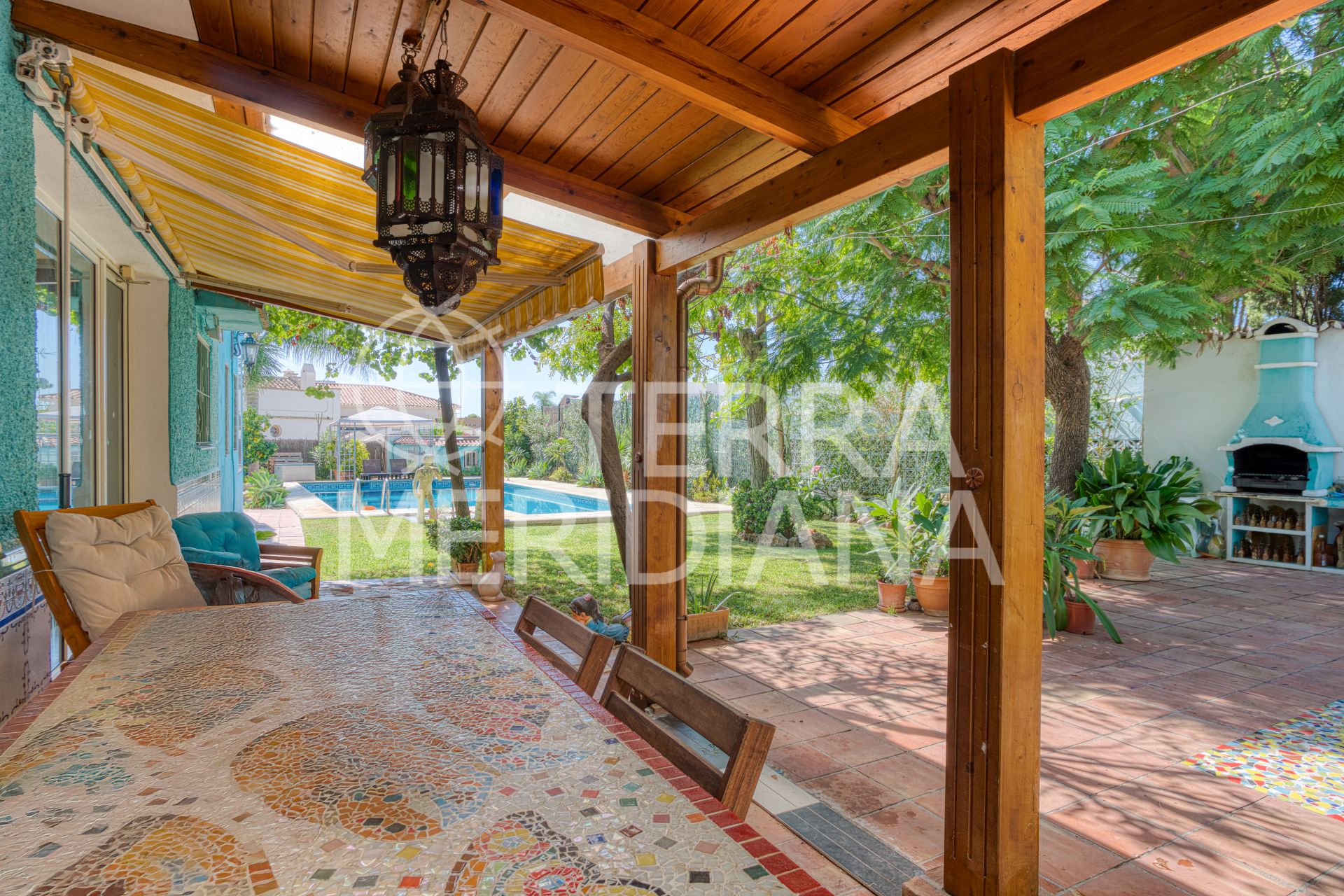 Unique opportunity in Marbella: this south-west facing single-story home combines charm, comfort, and flexibility with endless potential. The main house offers four spacious bedrooms, two bathrooms, and a guest toilet, while an independent guesthouse with its own kitchen and bathroom allows for the possibility of adding a loft for children. An additional apartment off the living room includes a glass-enclosed lounge, bedroom, and planned laundry room with exterior access, making it ideal for conversion into a separate unit. Outdoor living is enhanced by a private swimming pool, roof terrace, driveway for two cars, and a lush garden with lemon, orange, mango, and avocado trees, alongside decorative plantings that provide beauty all year round. Ideally located in Marbella city center, the property is next to the local hospitals schools, bus stops, gyms, a library, markets, restaurants, sports centers, and green spaces such as La Represa Park. With the additional option to build another level, this home offers both lifestyle appeal and outstanding investment potential.