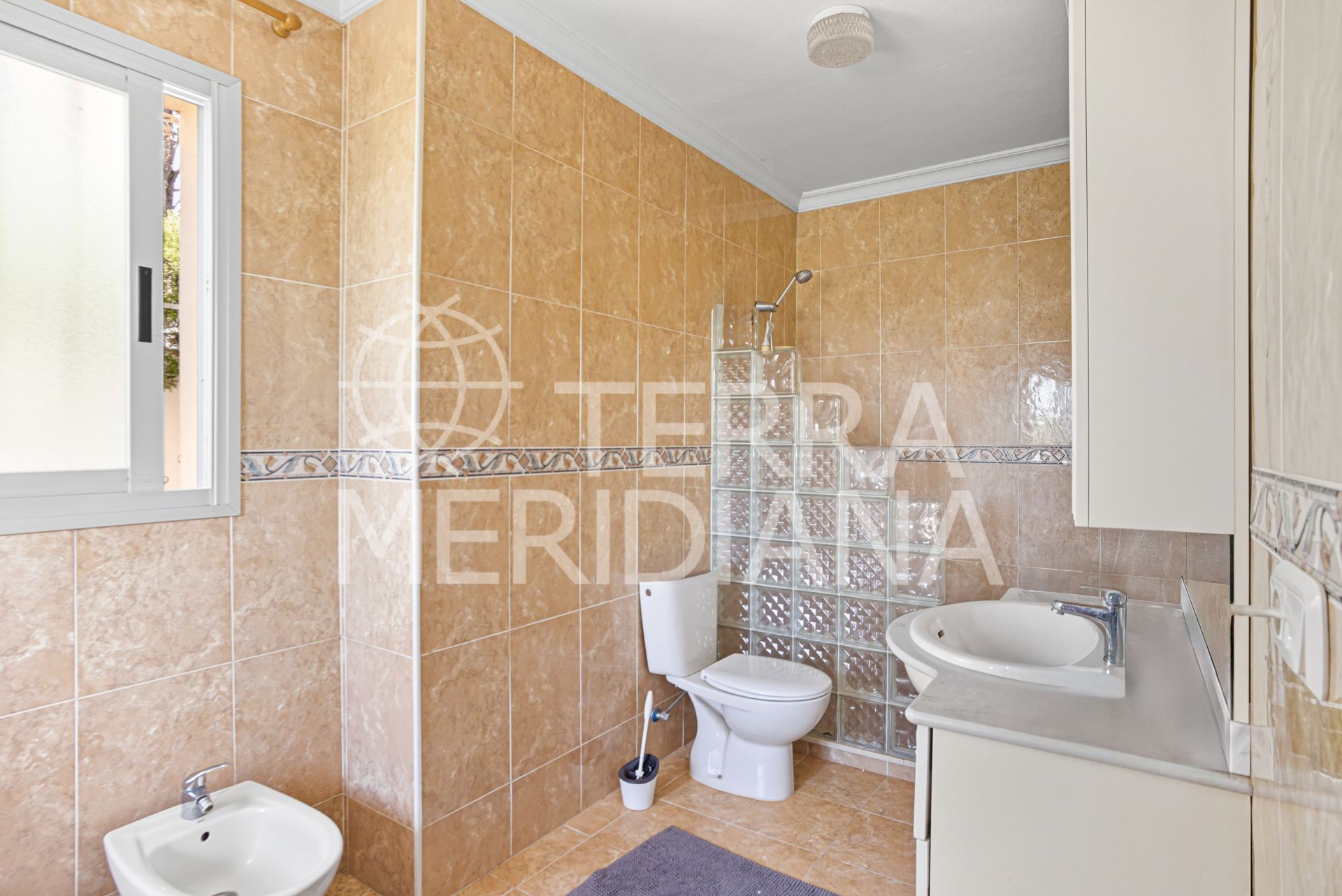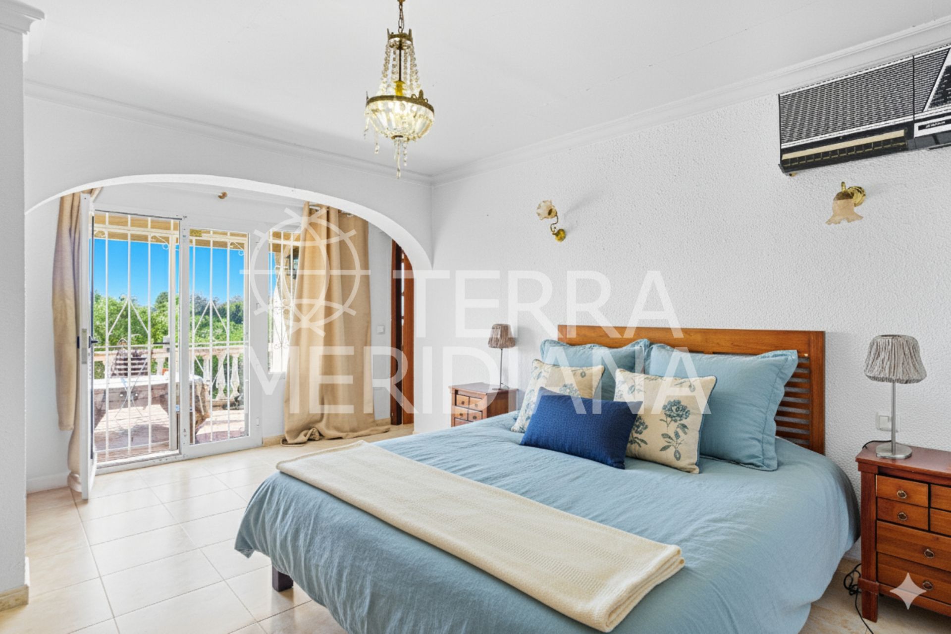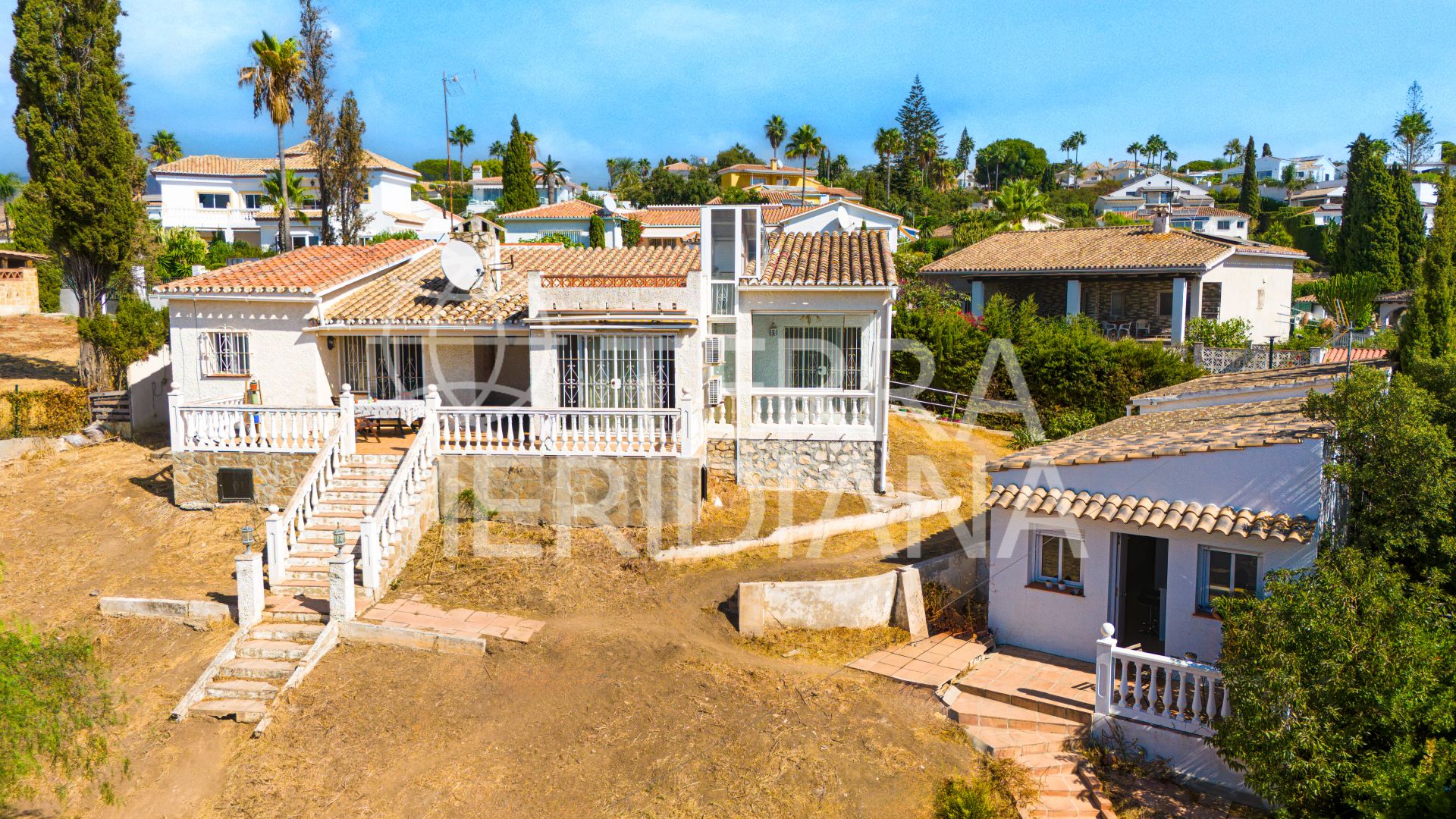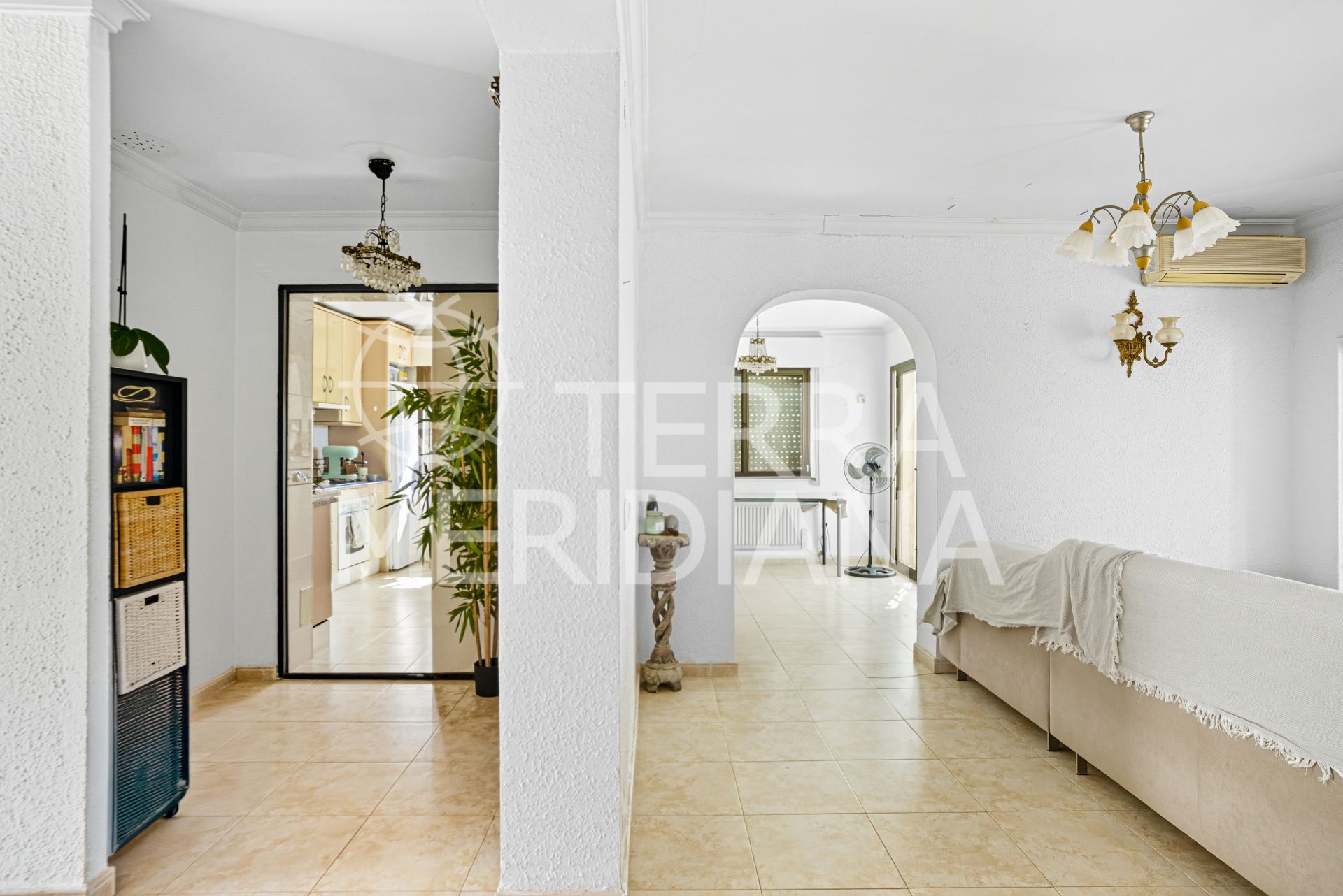 Located in the quiet and sought-after residential area of Parque Elviria, this charming southwest-facing villa sits on a generous 1,084m² plot and offers an excellent renovation opportunity. Ideal for those looking to create their dream family home or investors seeking a property with great potential. The single-level home features a fully renovated detached guest apartment, providing privacy and additional comfort. The current layout includes several well-proportioned bedrooms, a spacious living room, separate dining area, kitchen, and family bathrooms. Large windows throughout fill the interior with natural light and create a seamless connection to the surrounding gardens. Set in a safe and peaceful neighborhood, it is just a short drive from the beach, golf courses, international schools, and all local amenities. This is a unique chance to acquire a property with solid foundations, generous land, and the potential to become an exceptional home in a prime Costa del Sol location.