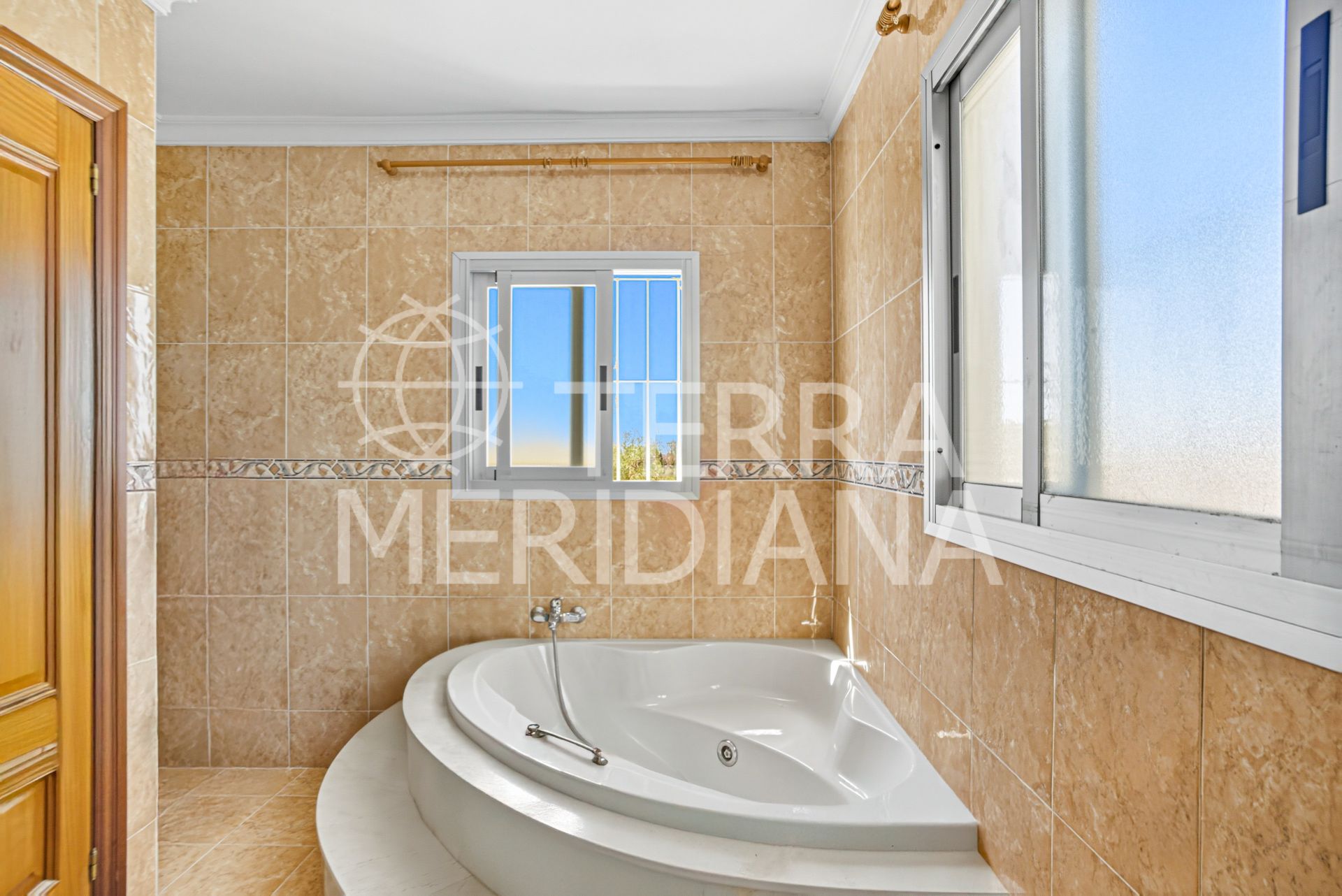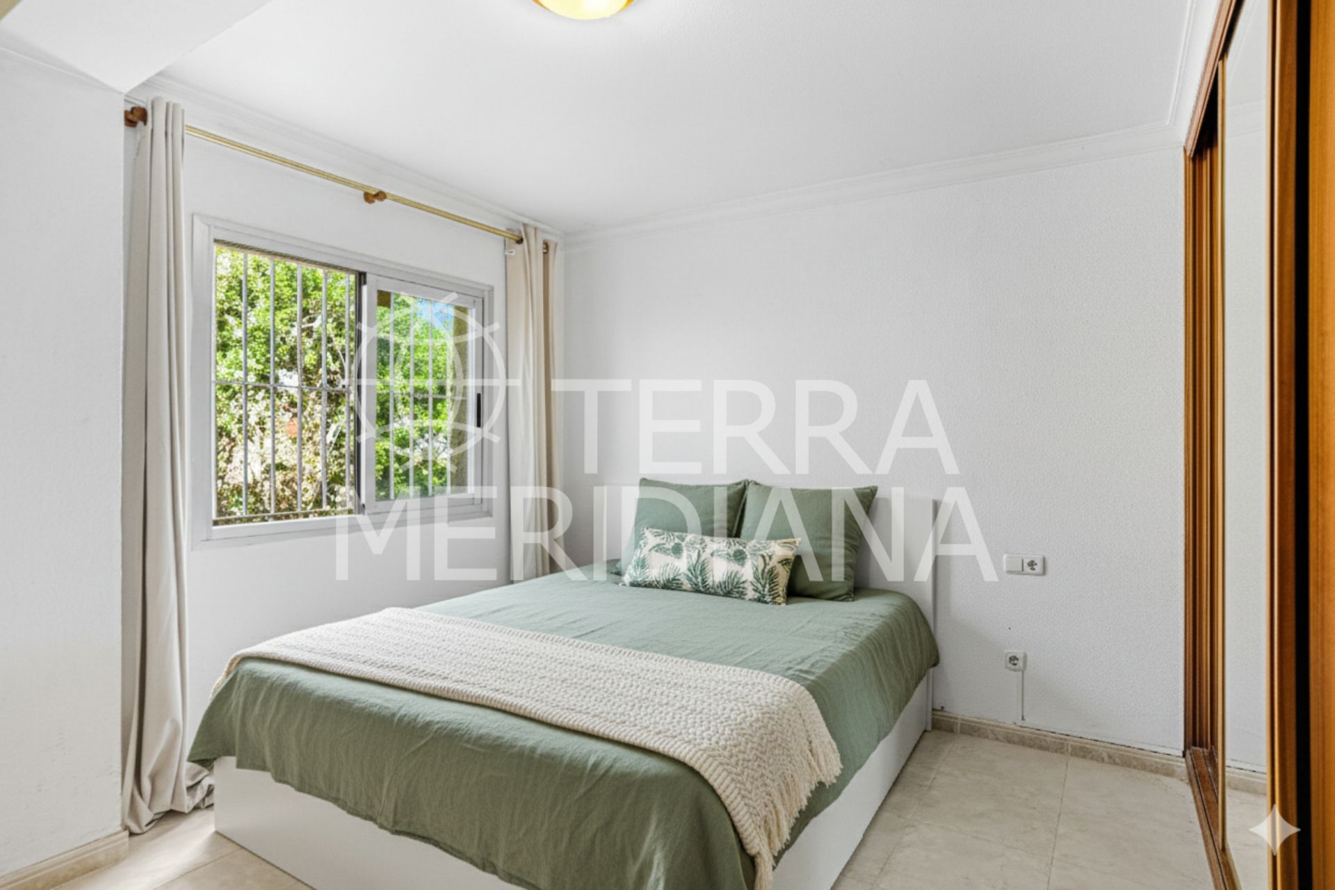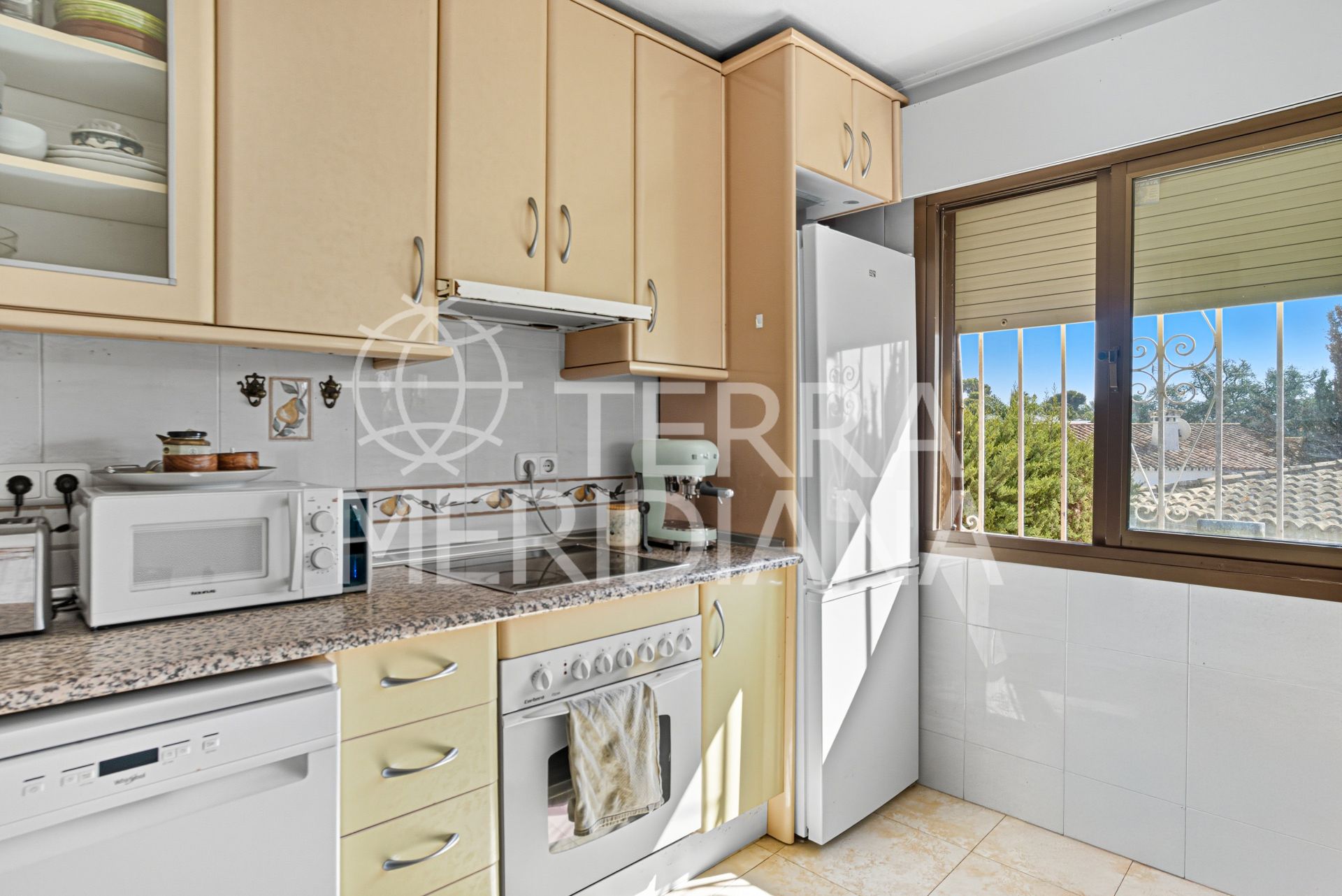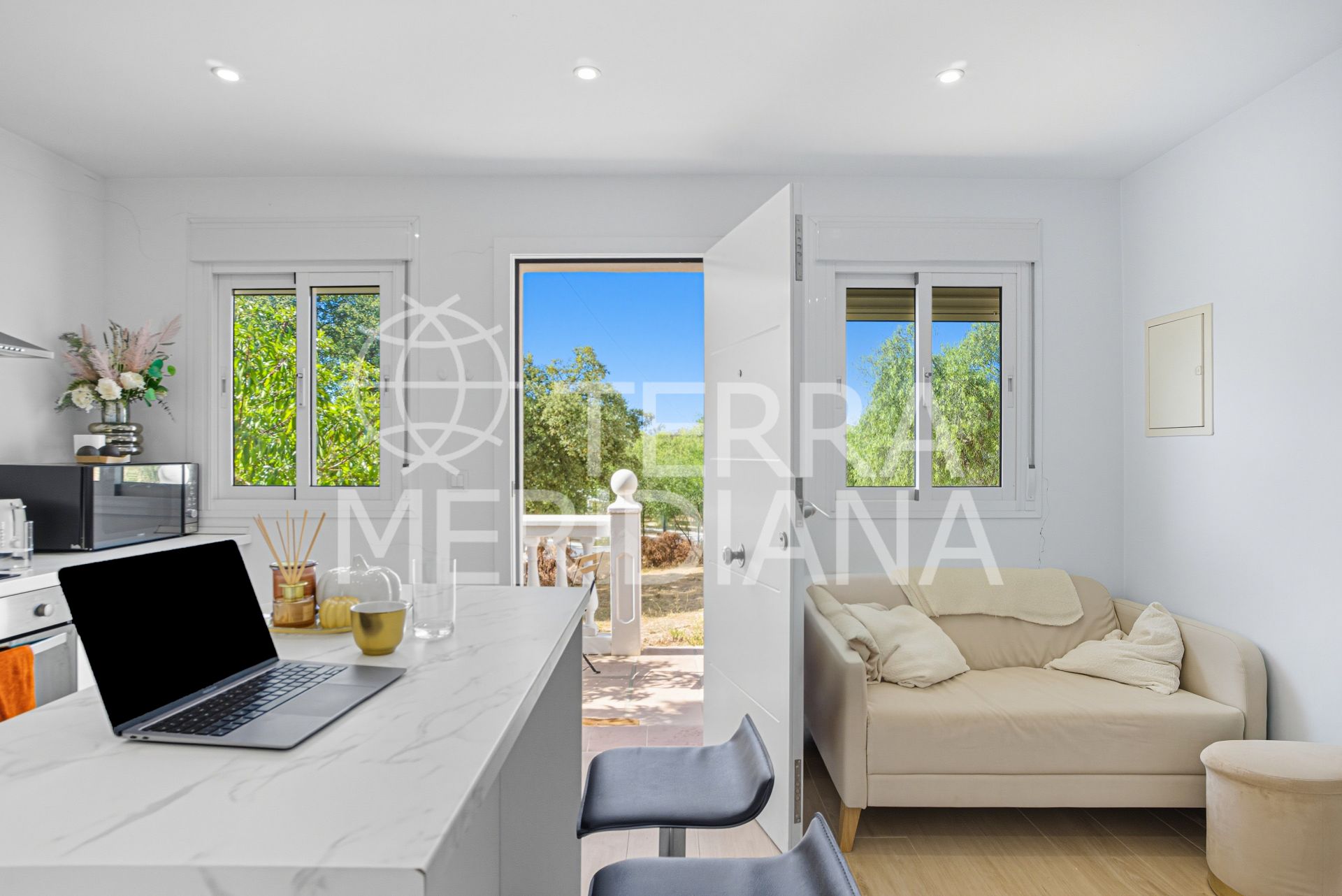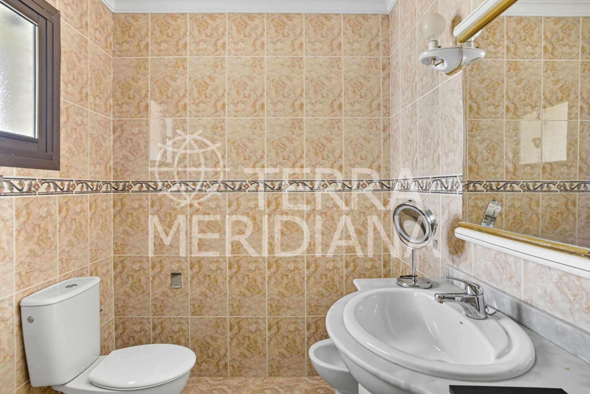 Located in the quiet and sought-after residential area of Parque Elviria, this charming southwest-facing villa sits on a generous 1,084m² plot and offers an excellent renovation opportunity. Ideal for those looking to create their dream family home or investors seeking a property with great potential. The single-level home features a fully renovated detached guest apartment, providing privacy and additional comfort. The current layout includes several well-proportioned bedrooms, a spacious living room, separate dining area, kitchen, and family bathrooms. Large windows throughout fill the interior with natural light and create a seamless connection to the surrounding gardens. Set in a safe and peaceful neighborhood, it is just a short drive from the beach, golf courses, international schools, and all local amenities. This is a unique chance to acquire a property with solid foundations, generous land, and the potential to become an exceptional home in a prime Costa del Sol location.