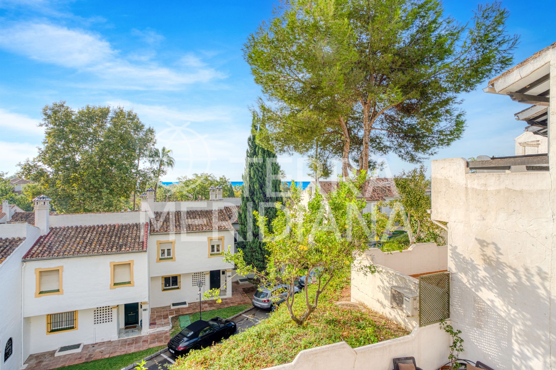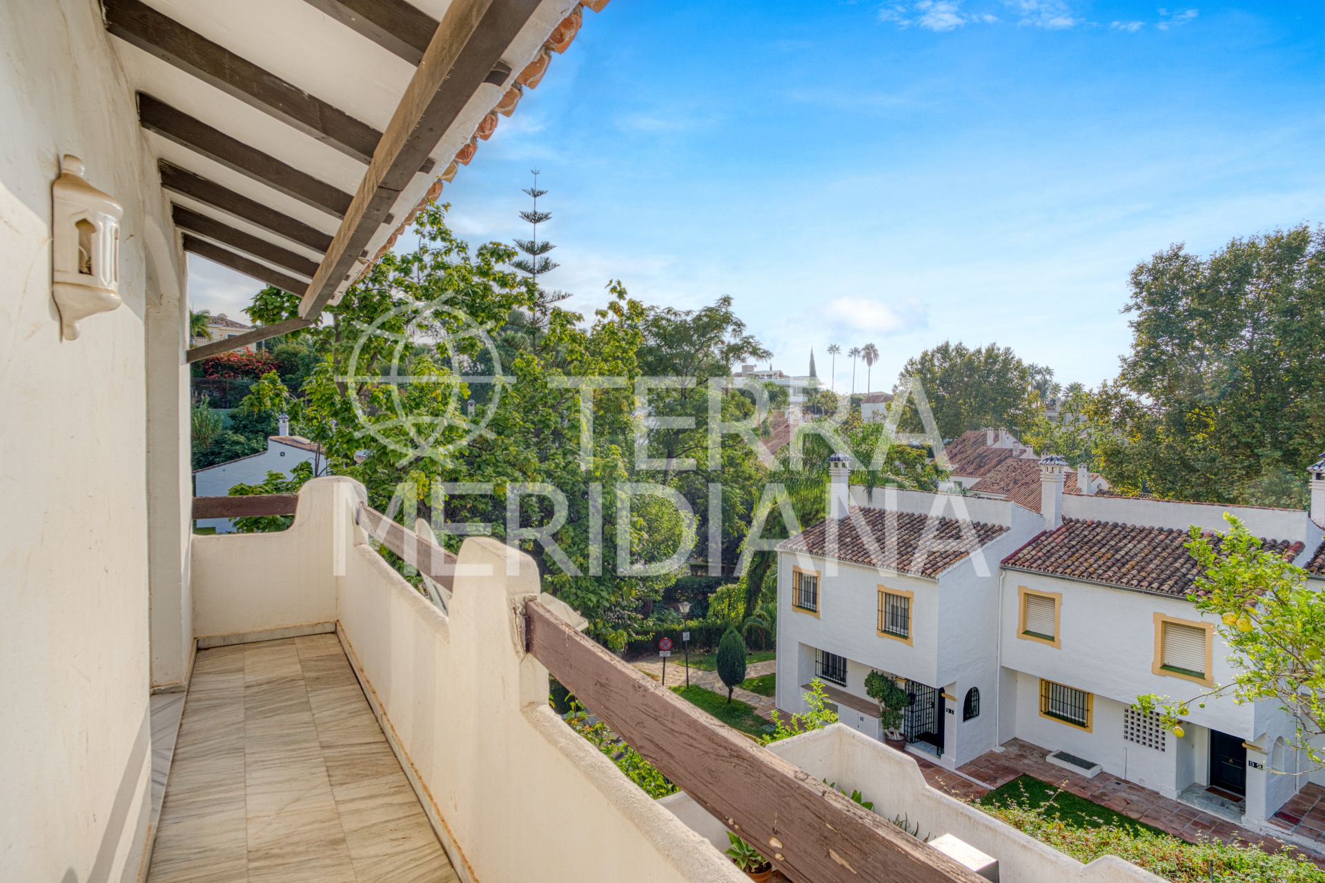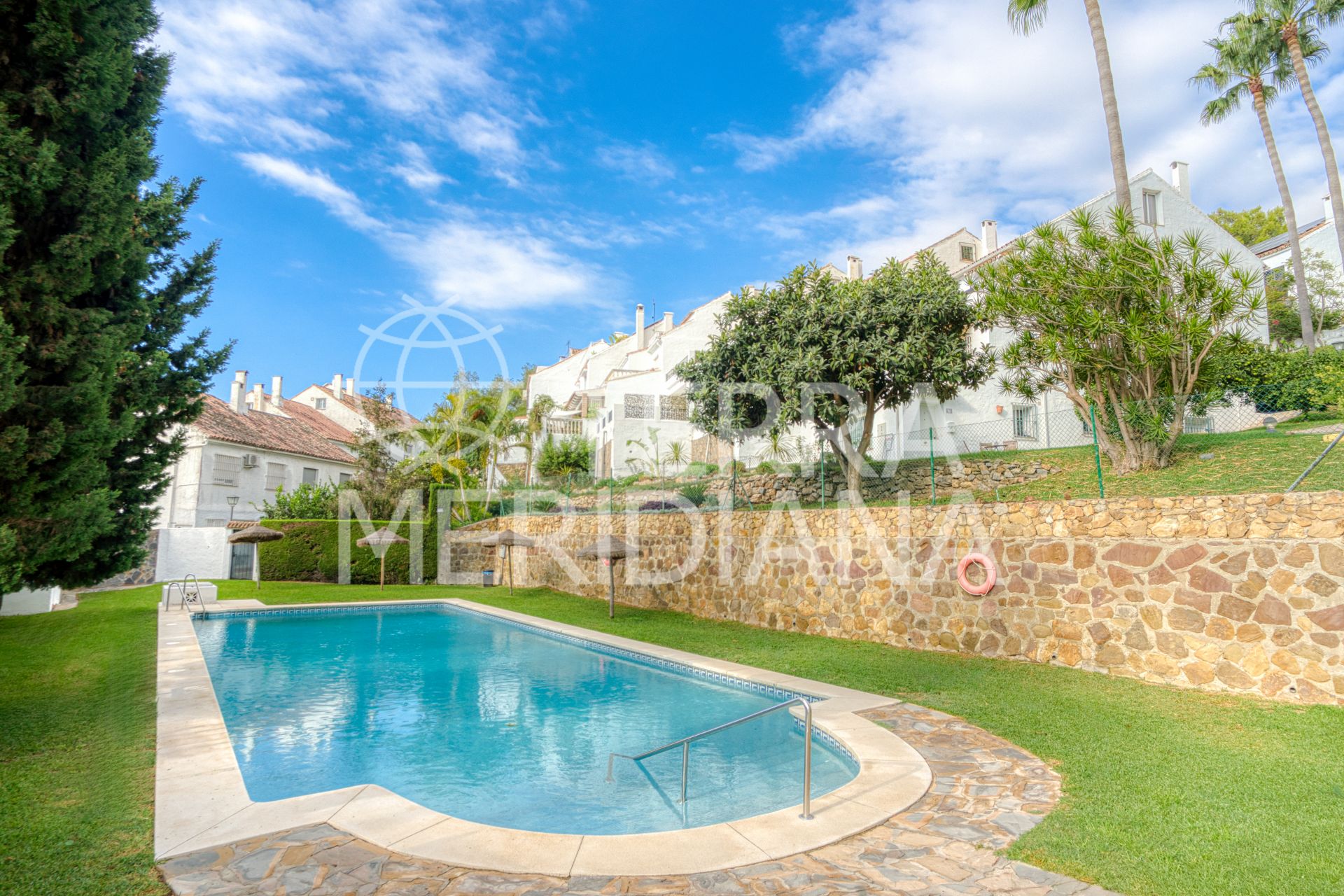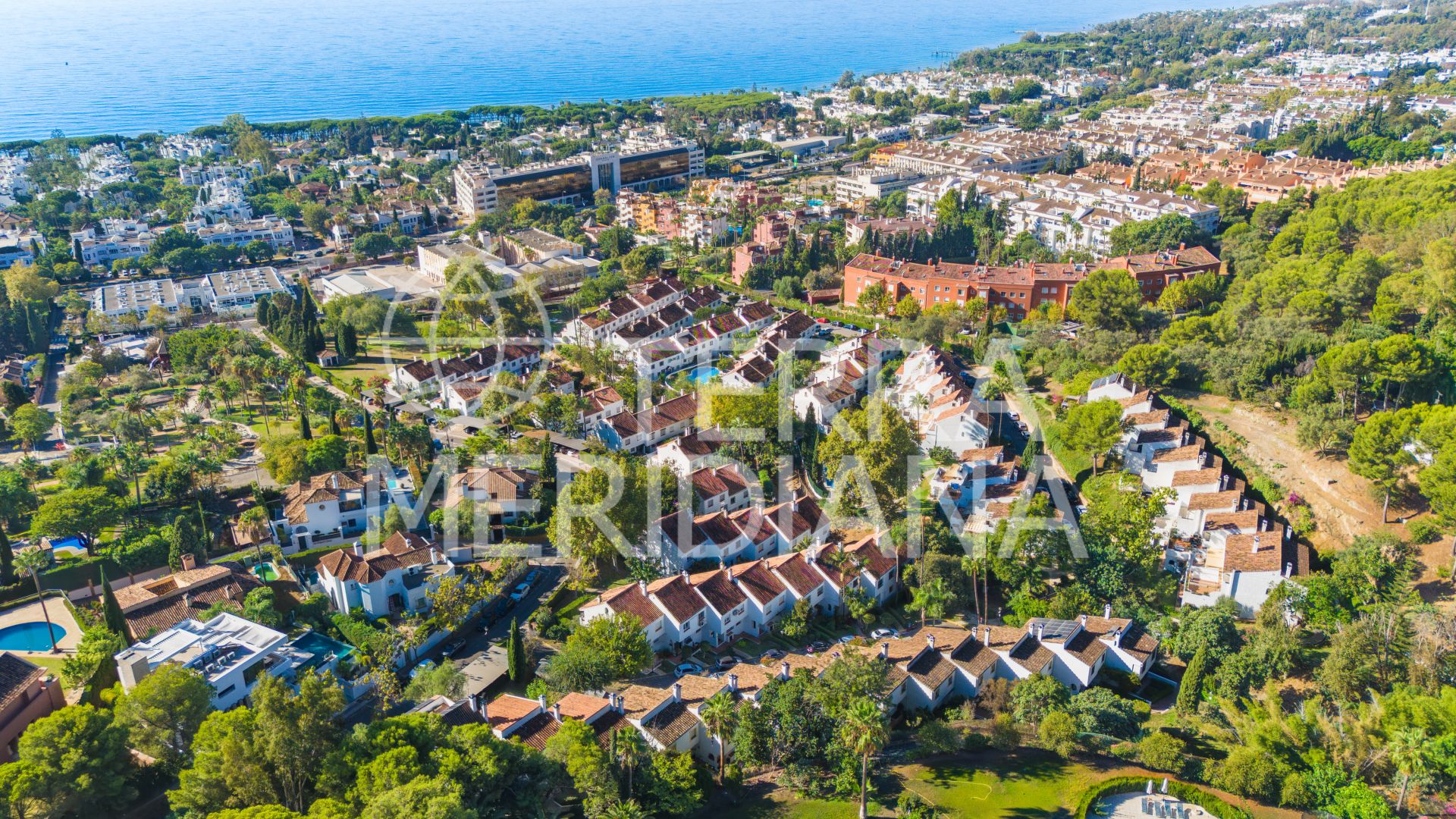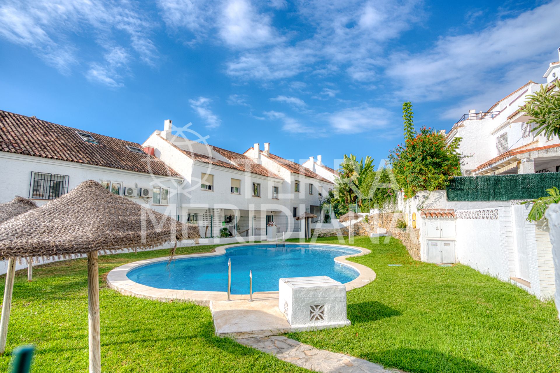 Charming south facing, three bedroom townhouse located in the sought-after gated community of El Capricho on Marbella’s Golden Mile