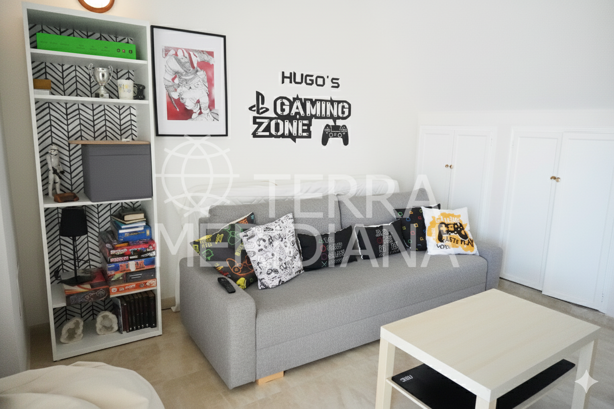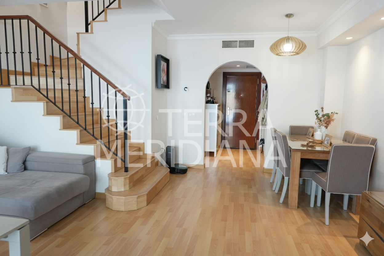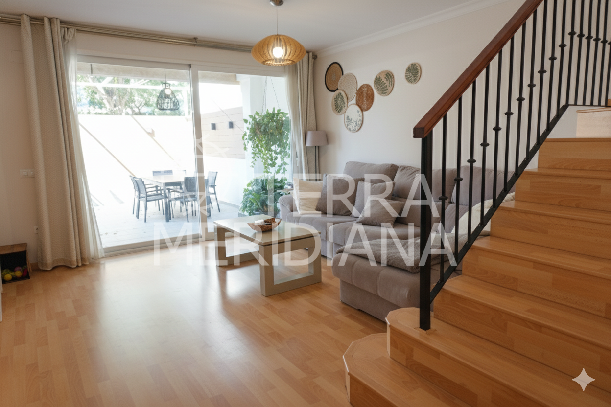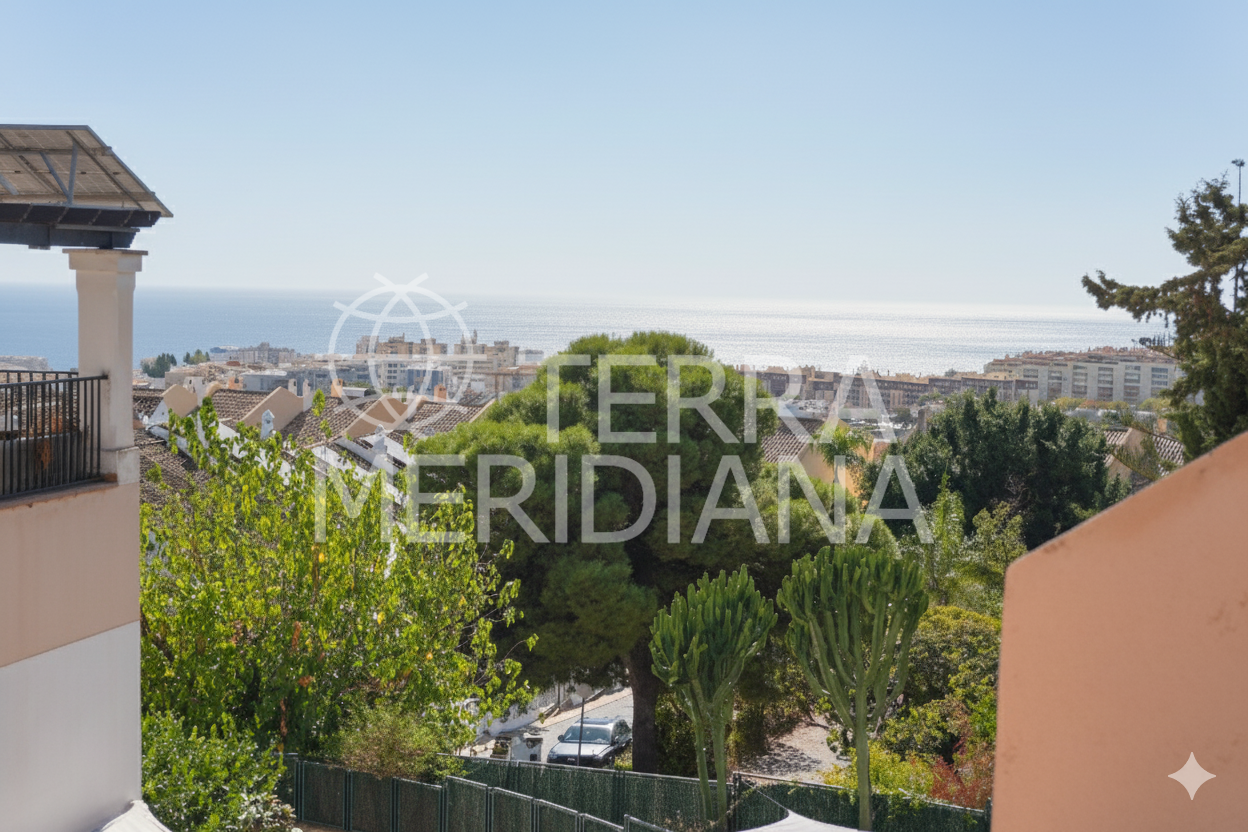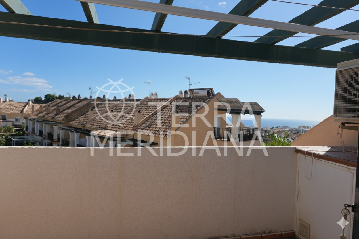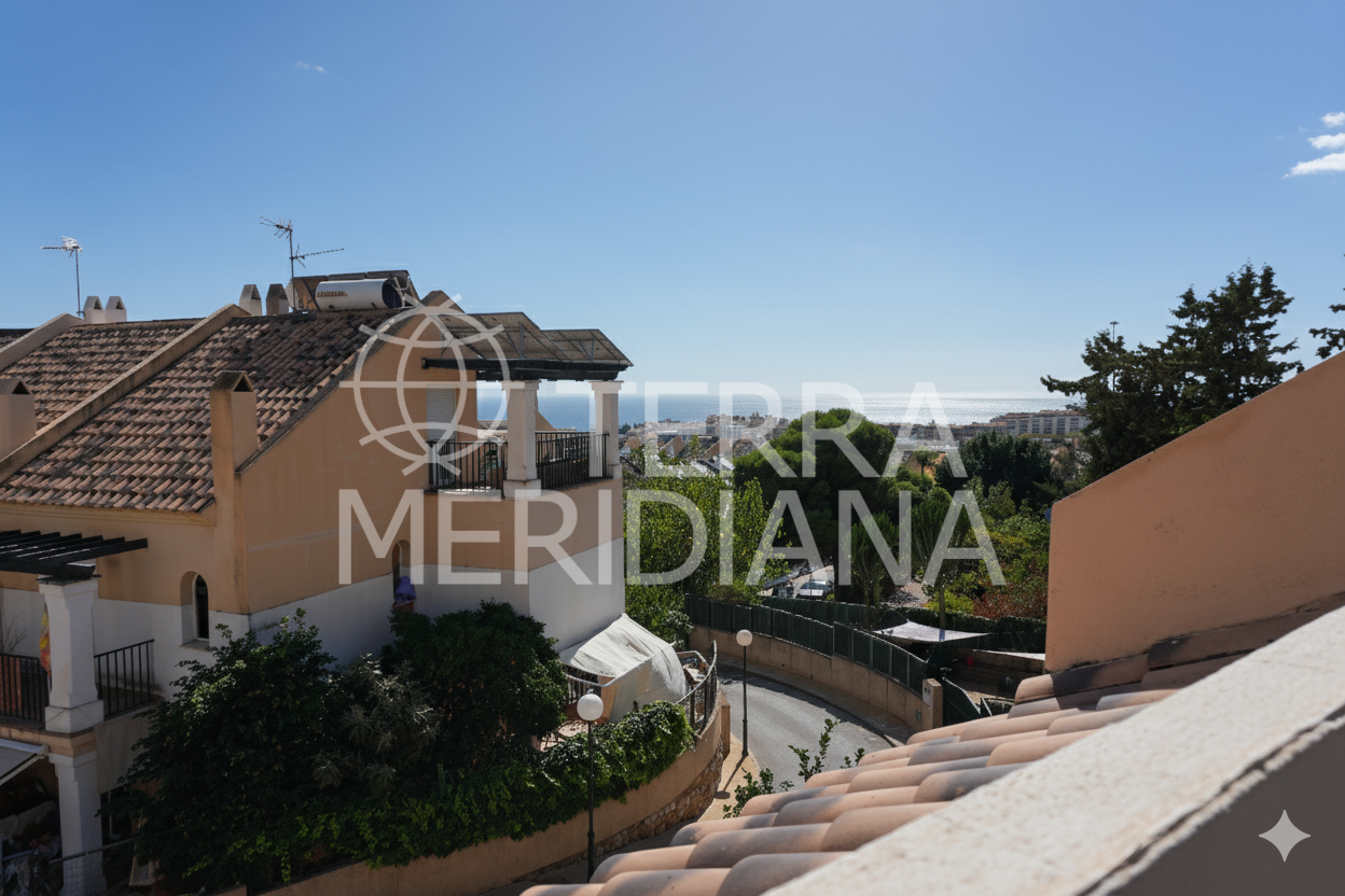 Spacious and charming four-bedroom Andalusian townhouse located in the gated community of Sierramar, within walking distance to Marbella centre and the main bus station. Spread across three levels, this lovely home features a master bedroom with ensuite and private terrace, plus additional guest bedrooms and well-appointed bathrooms. The main level offers a bright fully equipped kitchen, guest toilet, and a large open-plan living and dining area with direct access to a private terrace and BBQ area, perfect for outdoor dining. On the second level are two guest bedrooms and the master suite, while the top floor hosts a fourth bedroom currently used as an office and lounge with a terrace boasting sea views. Additional highlights include fitted wardrobes, air conditioning, and private parking. The Sierramar community offers residents a large communal swimming pool, a separate children’s pool, and beautifully maintained gardens.