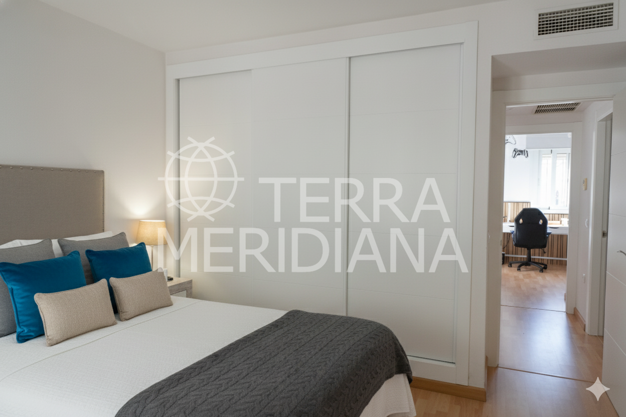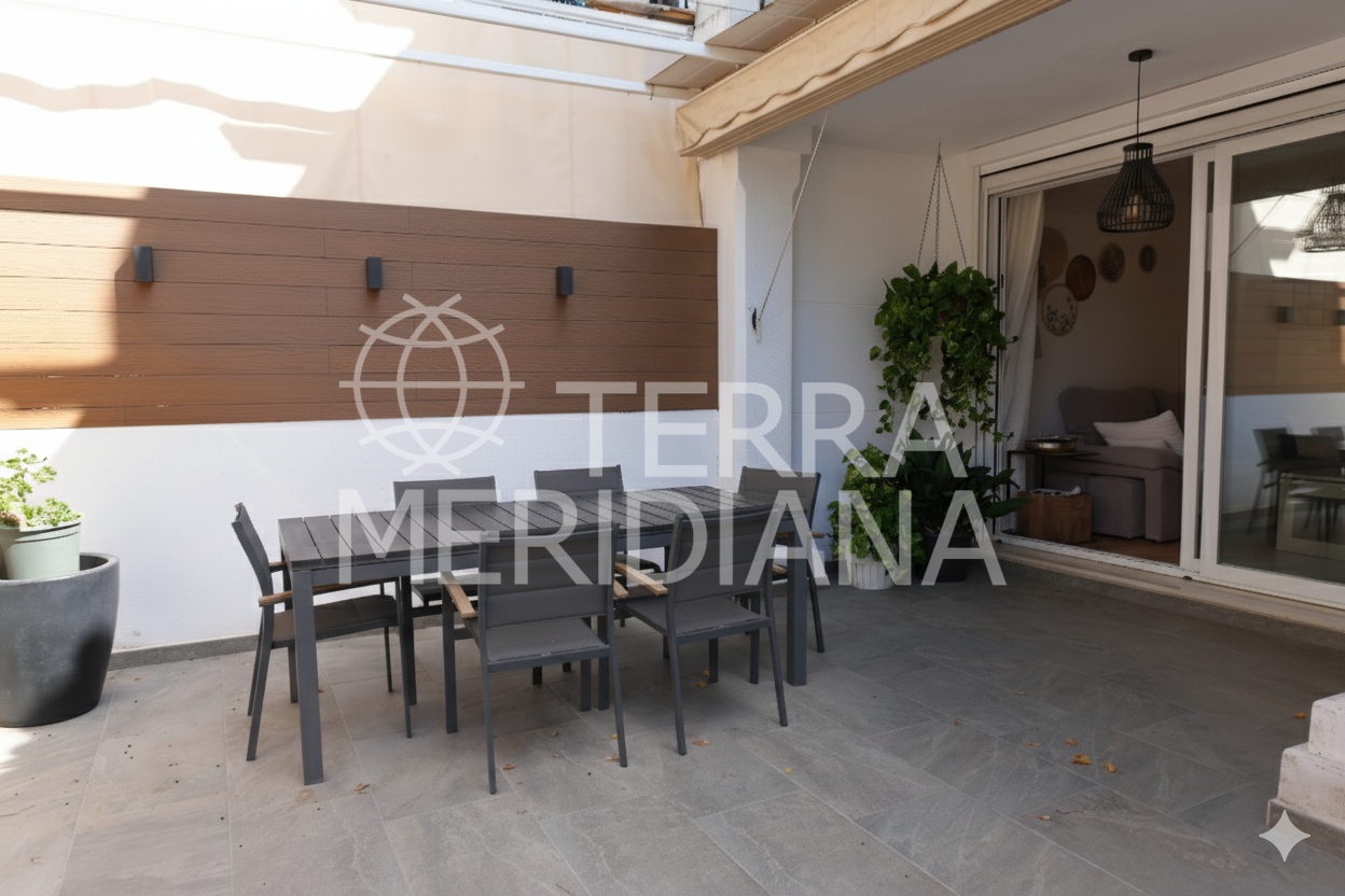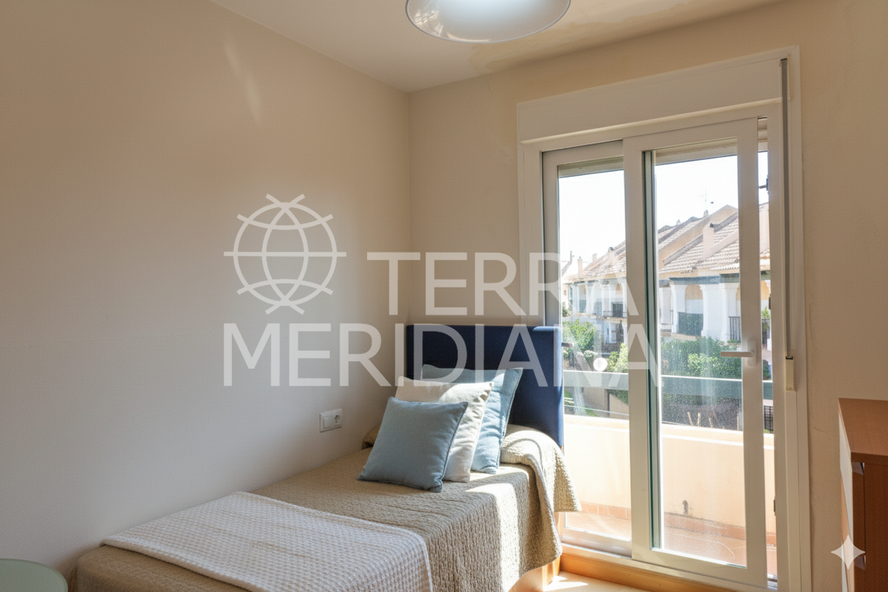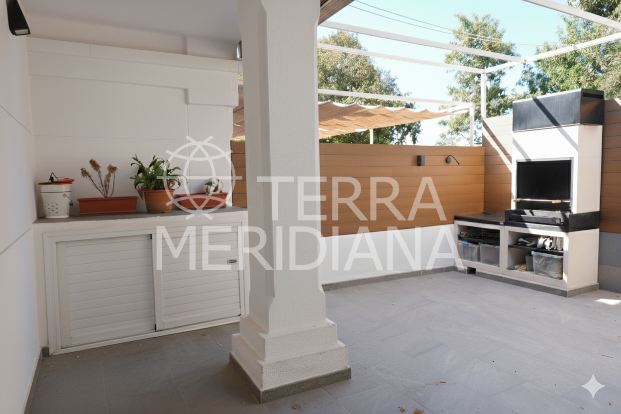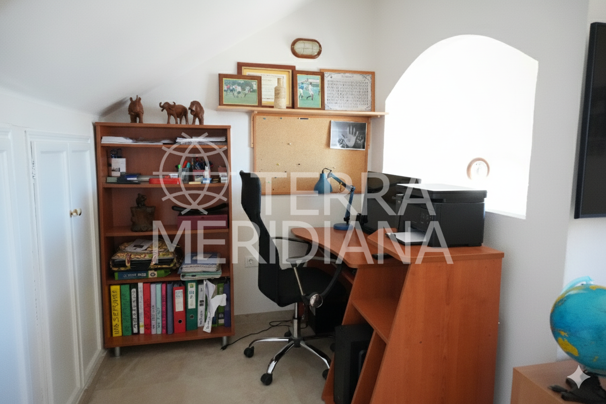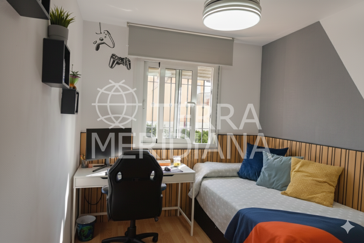 Spacious and charming four-bedroom Andalusian townhouse located in the gated community of Sierramar, within walking distance to Marbella centre and the main bus station. Spread across three levels, this lovely home features a master bedroom with ensuite and private terrace, plus additional guest bedrooms and well-appointed bathrooms. The main level offers a bright fully equipped kitchen, guest toilet, and a large open-plan living and dining area with direct access to a private terrace and BBQ area, perfect for outdoor dining. On the second level are two guest bedrooms and the master suite, while the top floor hosts a fourth bedroom currently used as an office and lounge with a terrace boasting sea views. Additional highlights include fitted wardrobes, air conditioning, and private parking. The Sierramar community offers residents a large communal swimming pool, a separate children’s pool, and beautifully maintained gardens.