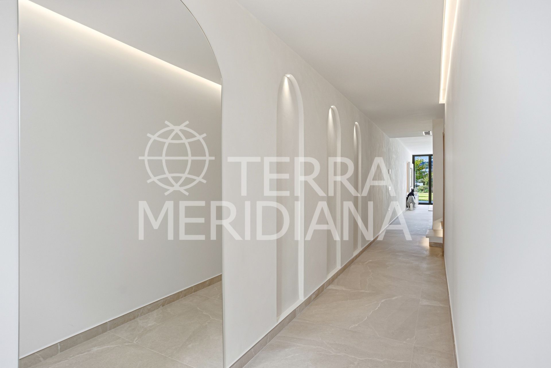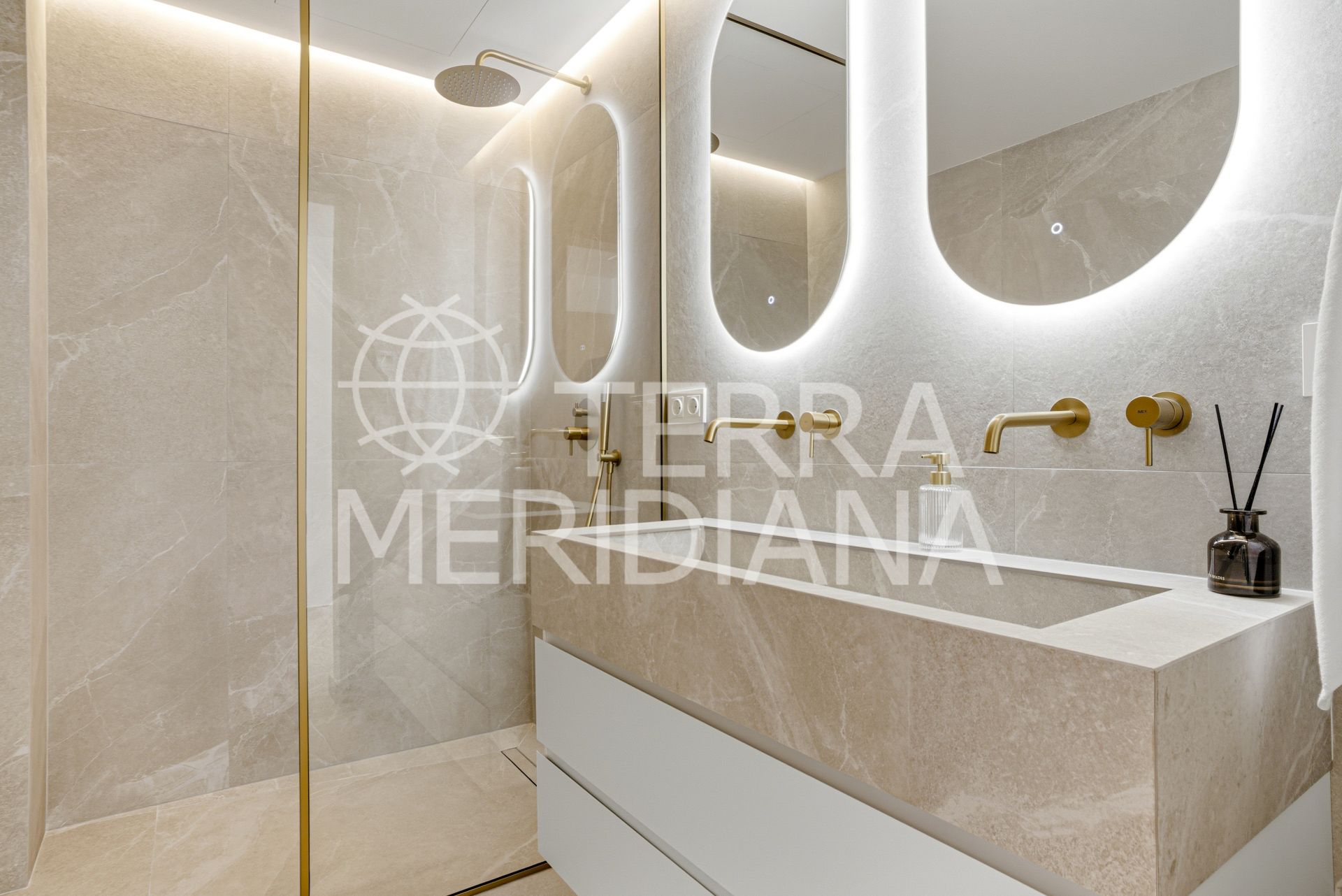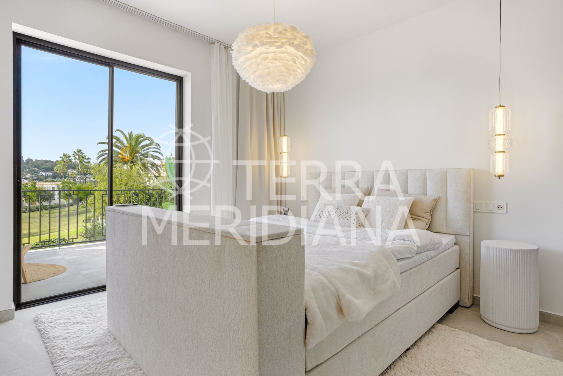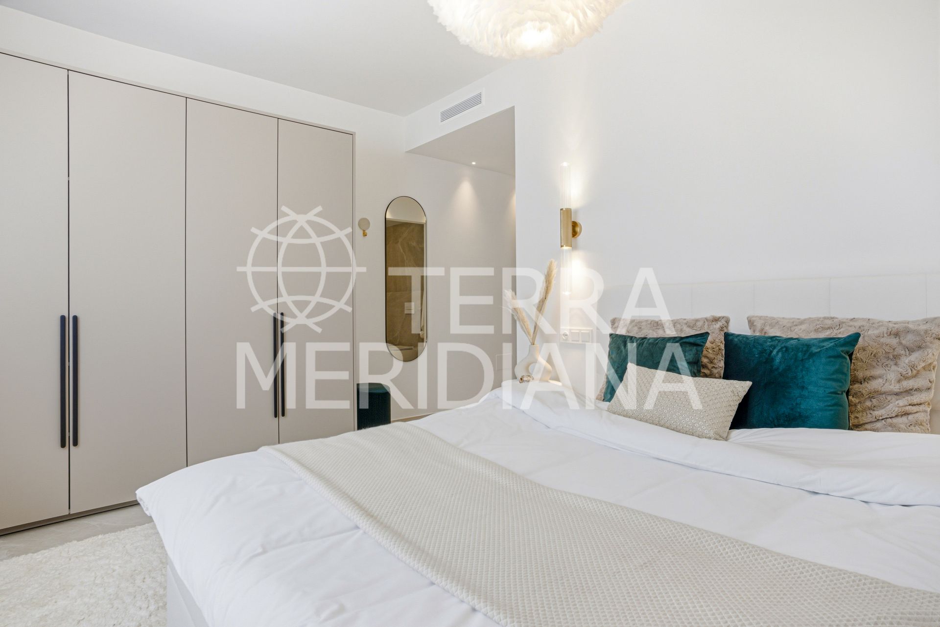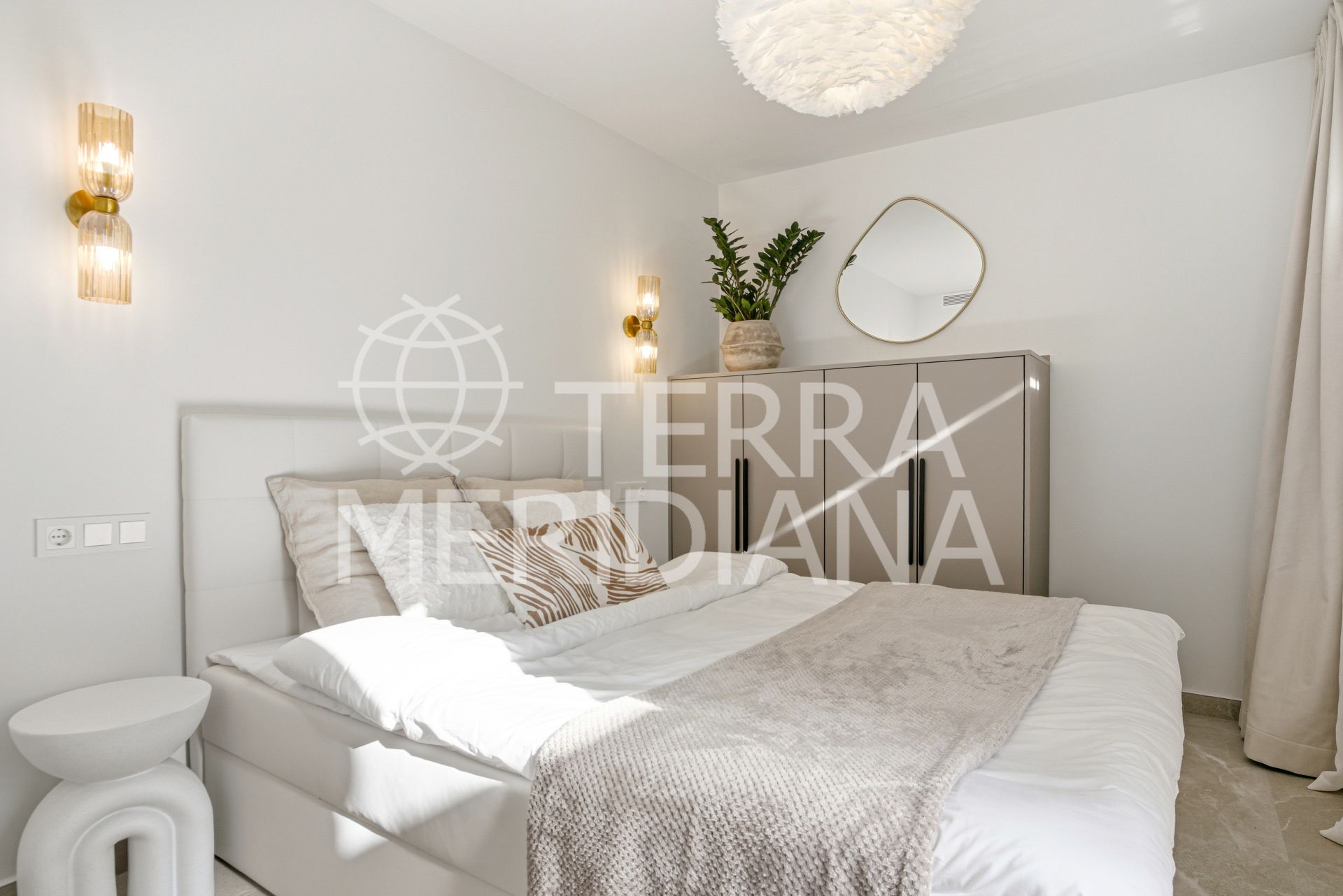 Exuding contemporary elegance and timeless charm, this fully renovated four-bedroom townhouse is a rare find in the heart of Marbella’s prestigious Golden Valley, within the exclusive gated community of La Rinconada. Bathed in natural light from its desirable southwest orientation, the home offers a seamless blend of modern design and sophisticated living. The open-plan living, dining, and kitchen area is designed for effortless entertaining, with sleek bifolding doors that open onto a private terrace, which flows gracefully into the beautifully landscaped communal gardens and communal swimming pool. The master suite is a sanctuary of tranquility, complete with a private terrace overlooking the serene gardens and pool, creating the perfect private retreat. Every detail of this turnkey home has been carefully curated, reflecting contemporary luxury at its finest. Ideally situated, it is just minutes from world-class golf courses, fine dining, boutique shopping, and Marbella’s pristine beaches. A truly exceptional residence, offering the perfect harmony of elegance, comfort, and the coveted Marbella lifestyle.