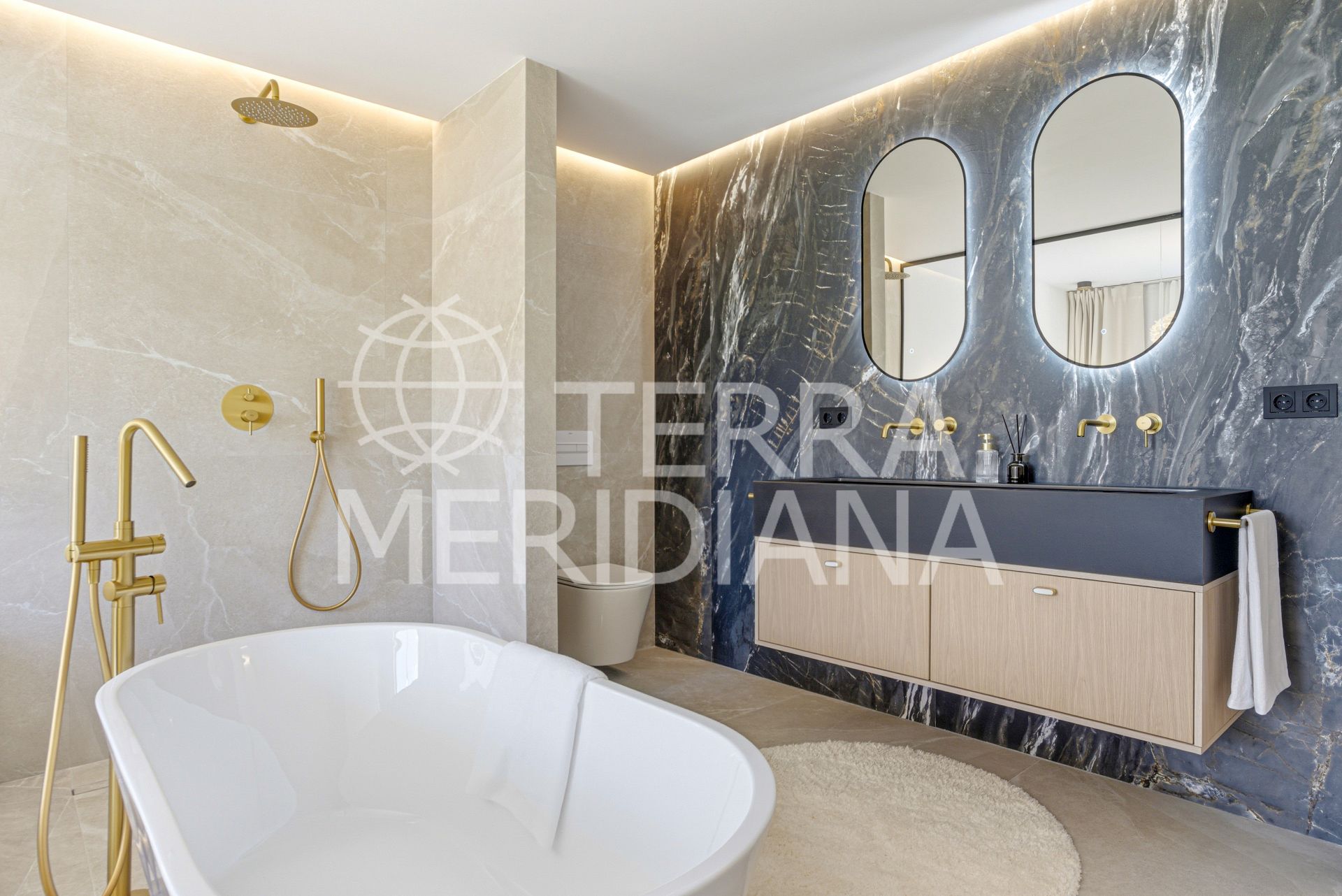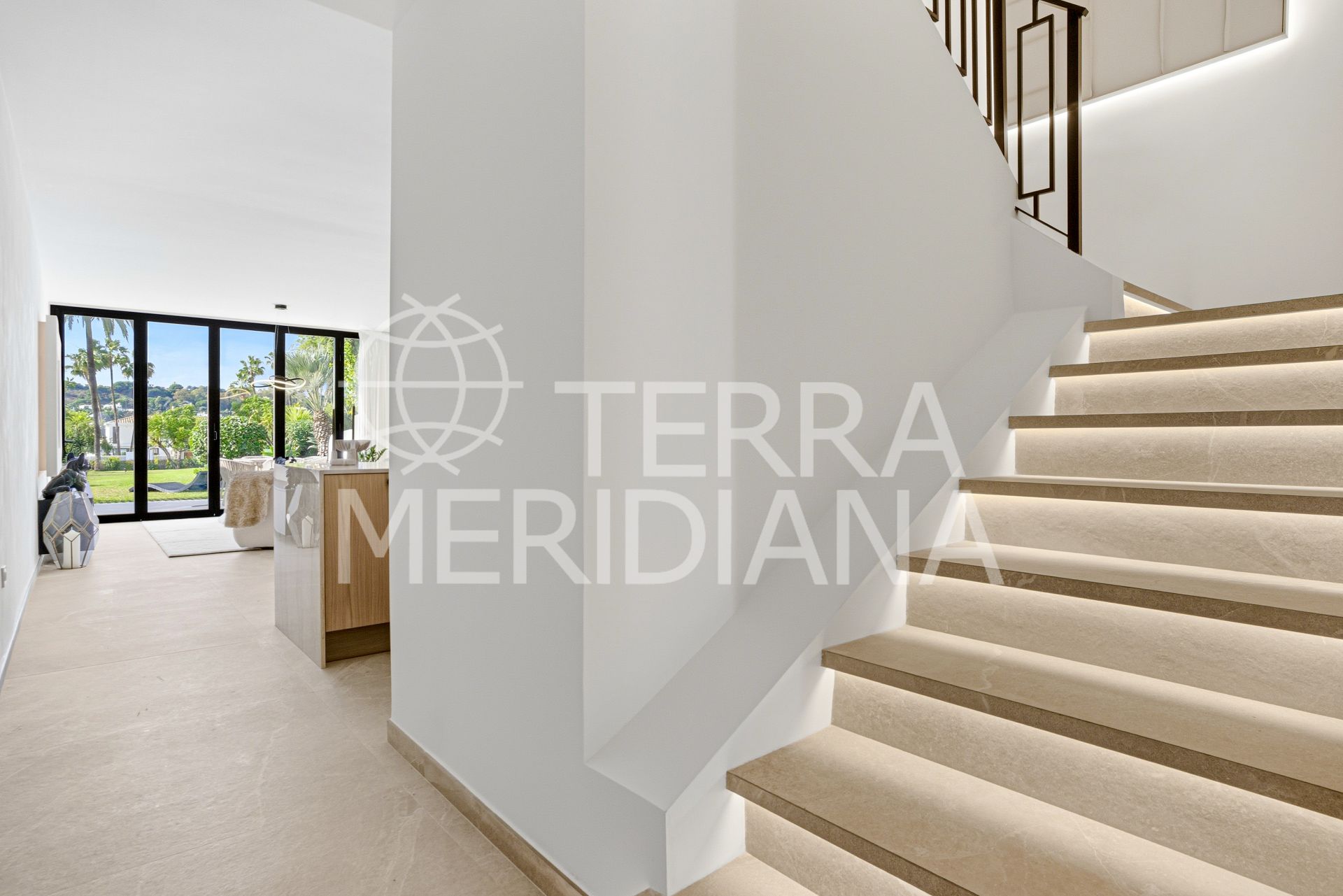 An ultra-modern corner townhouse for sale with excellent sea, la concha mountain and golf views situated in the small gated development...