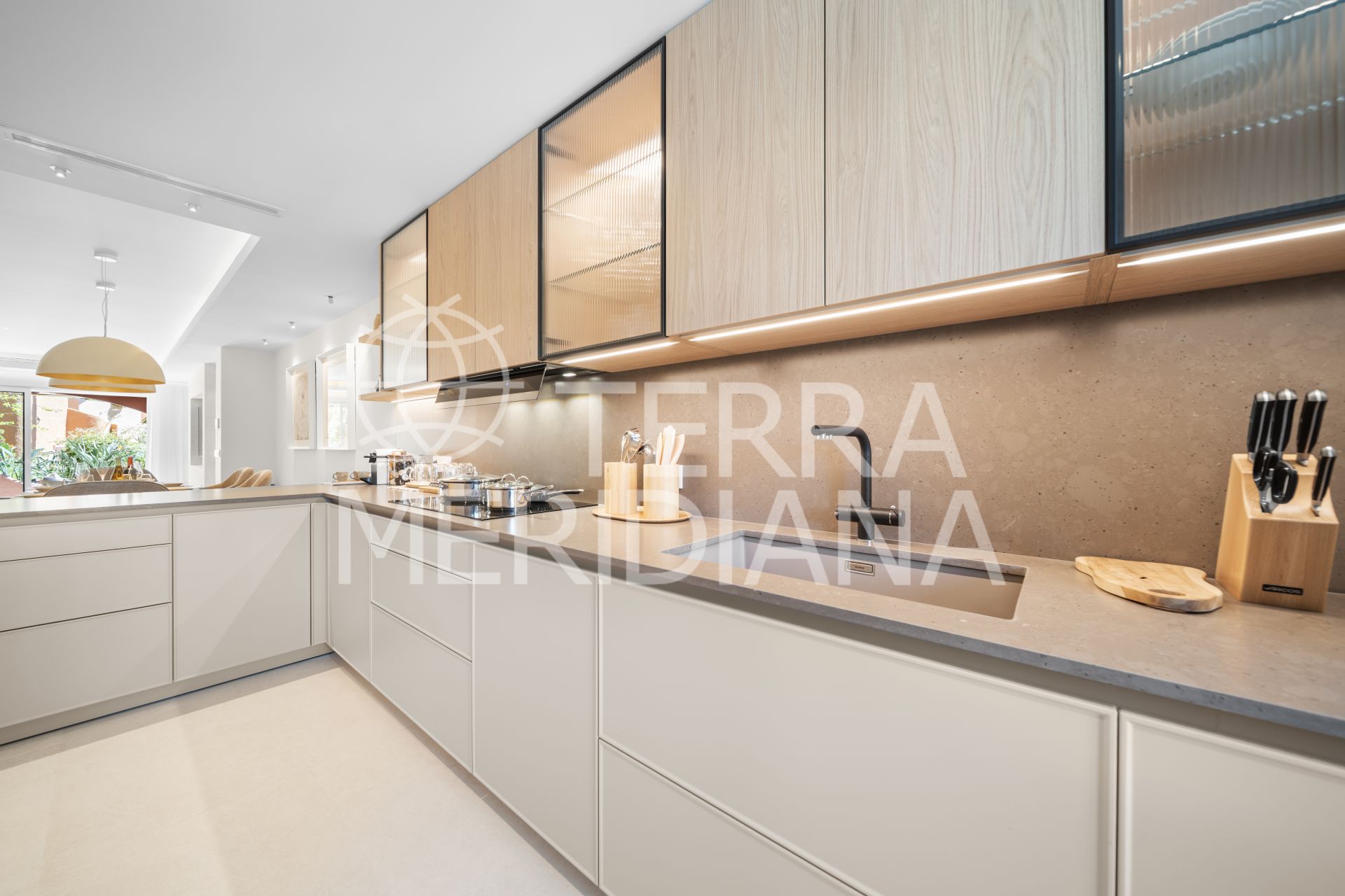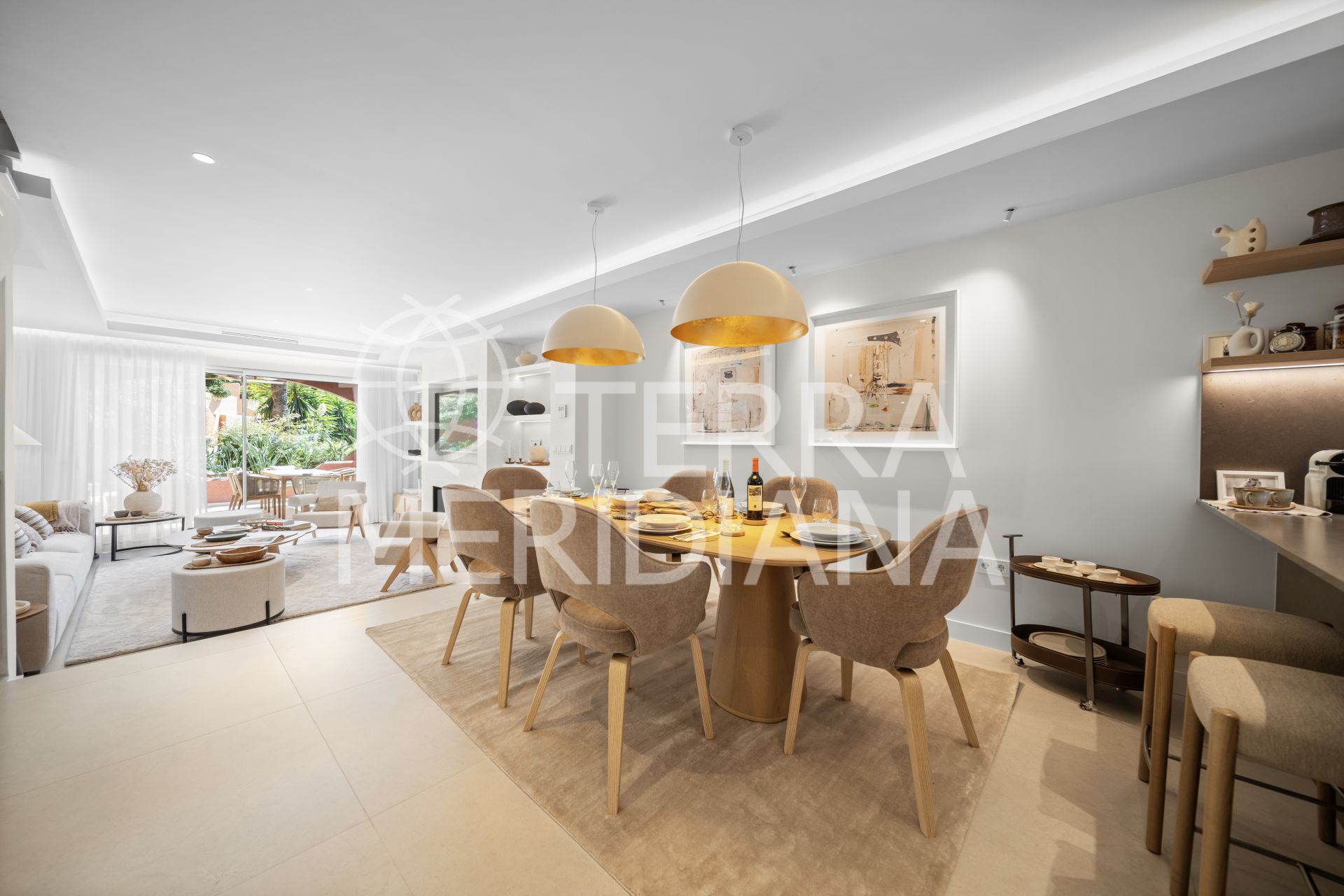 This luxurious turnkey residence is located within the highly reputable development of El Palmeral in Nueva Andalucía. Fully renovated to exceptional standards, the townhouse showcases premium finishes and refined décor throughout, featuring thoughtfully designed interiors, designer furnishings, and elegant contemporary touches.