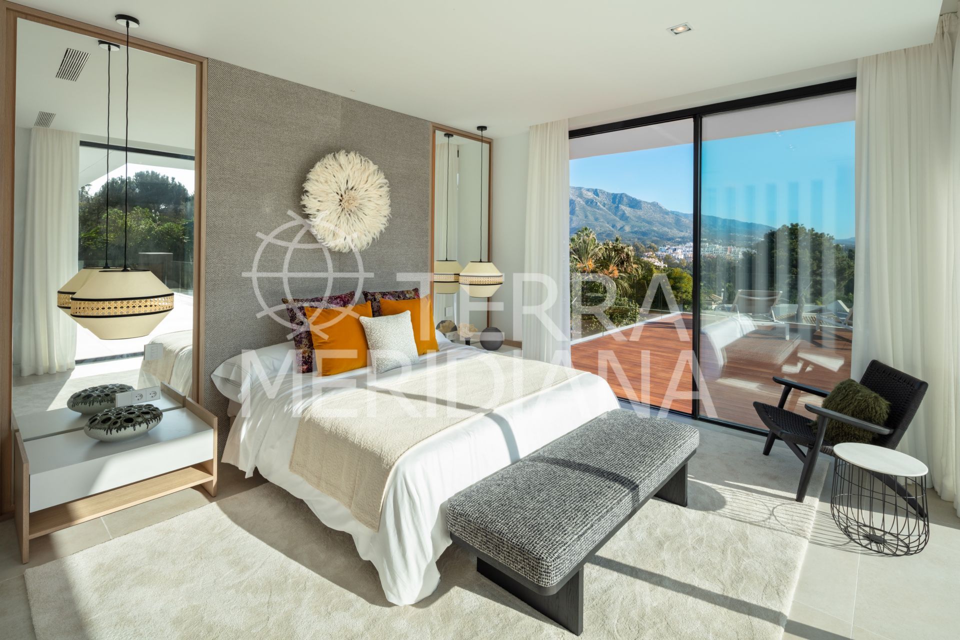 Oriented to the east, the property enjoys magnificent views of the iconic La Concha Mountain. Its architecture combines clean modern lines with elegant, high-quality materials and tasteful decoration. Floor-to-ceiling windows flood the interiors with natural light, creating bright, stylish living spaces furnished to the highest standards. Each bedroom is designed for maximum comfort, offering an inviting retreat for both residents and guests.