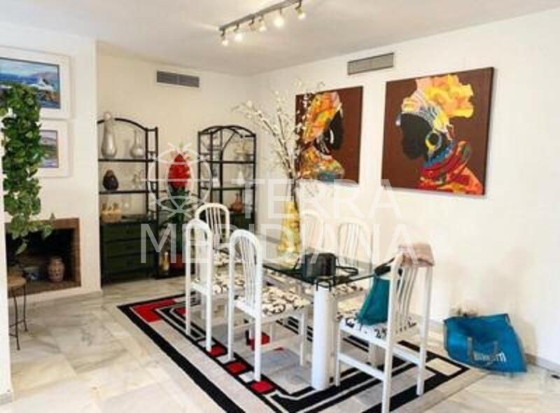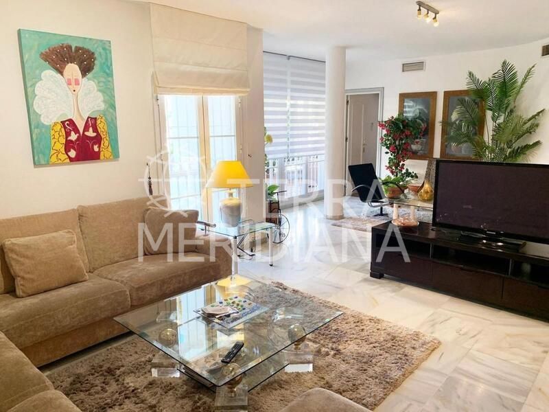 Spacious 5-bedroom apartment in the gated community Rocamar in Nagueles, Golden Mile between Puerto Banús and Marbella, above the AP7. One-storey apartment with 170 m2 built, it has 5 bedrooms, 3 bathrooms, a spacious living room with a fireplace, an equipped kitchen, a magnificent 24m2 terrace with views of the community pool and garden. The urbanization has beautiful garden areas, security 24 hours a day. The apartment includes air conditioning, garage space and a large storage room.
