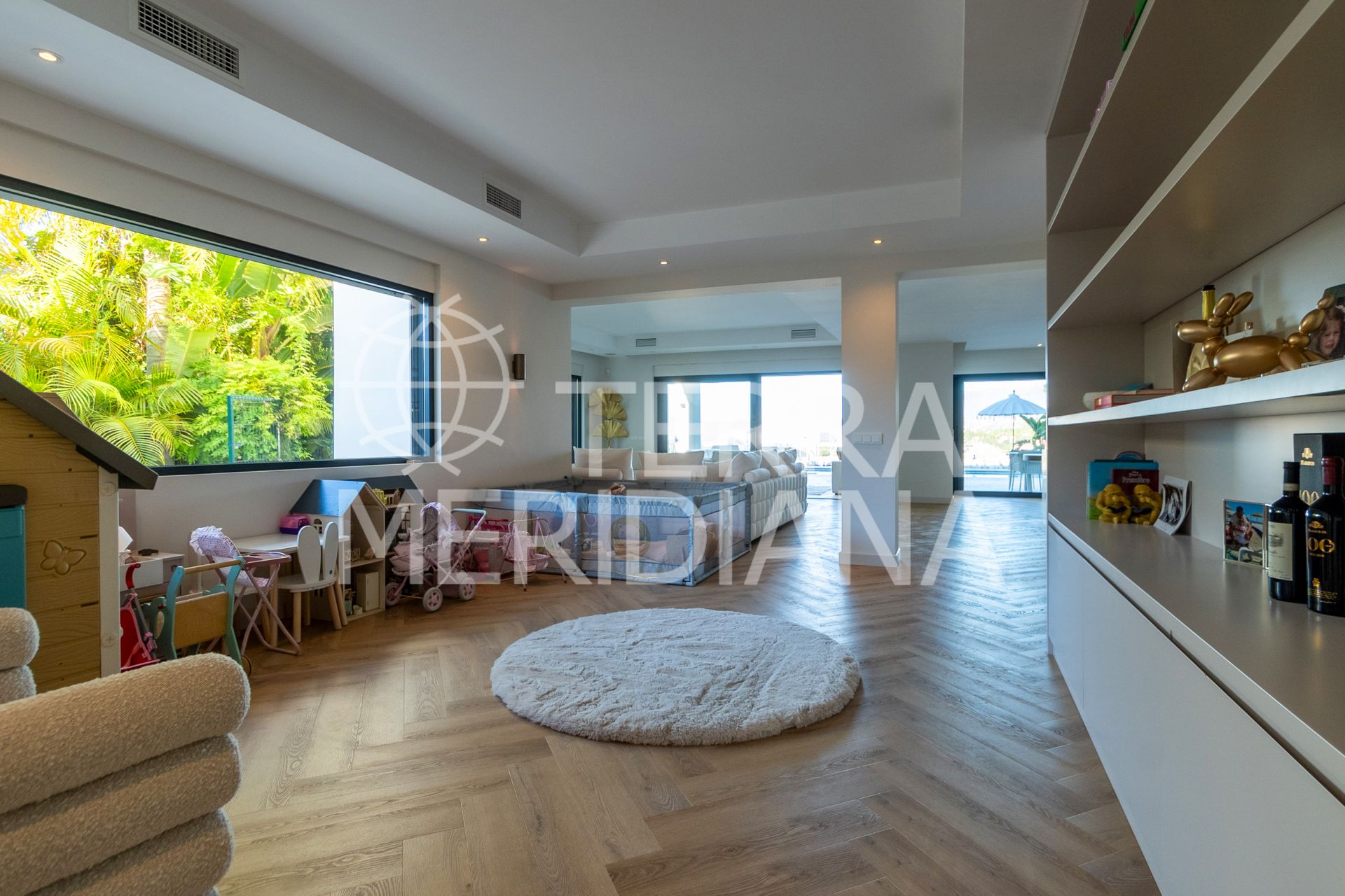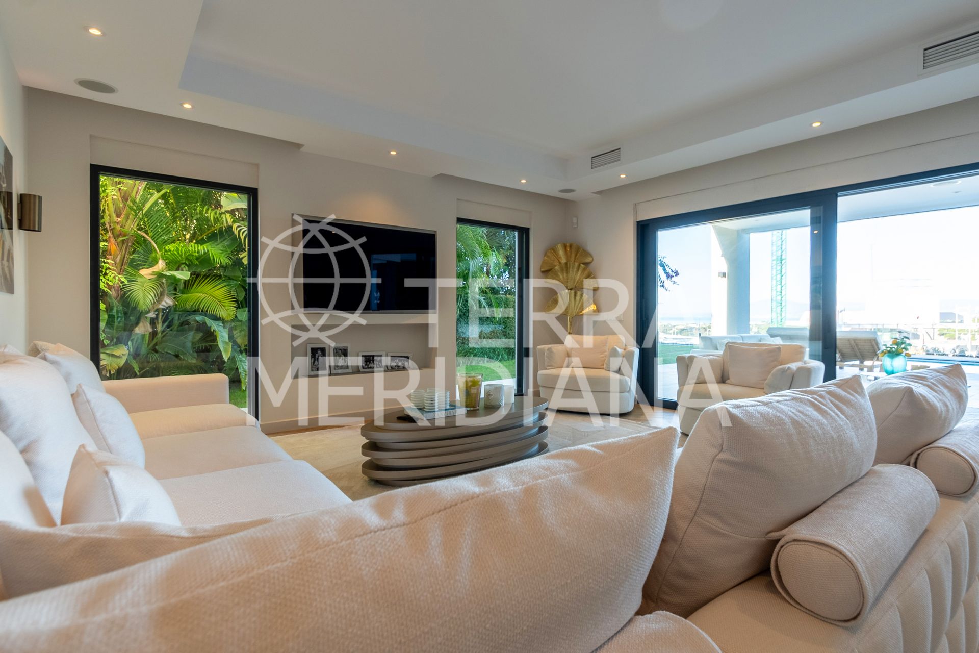 Bright lounge with direct access to the garden and pool