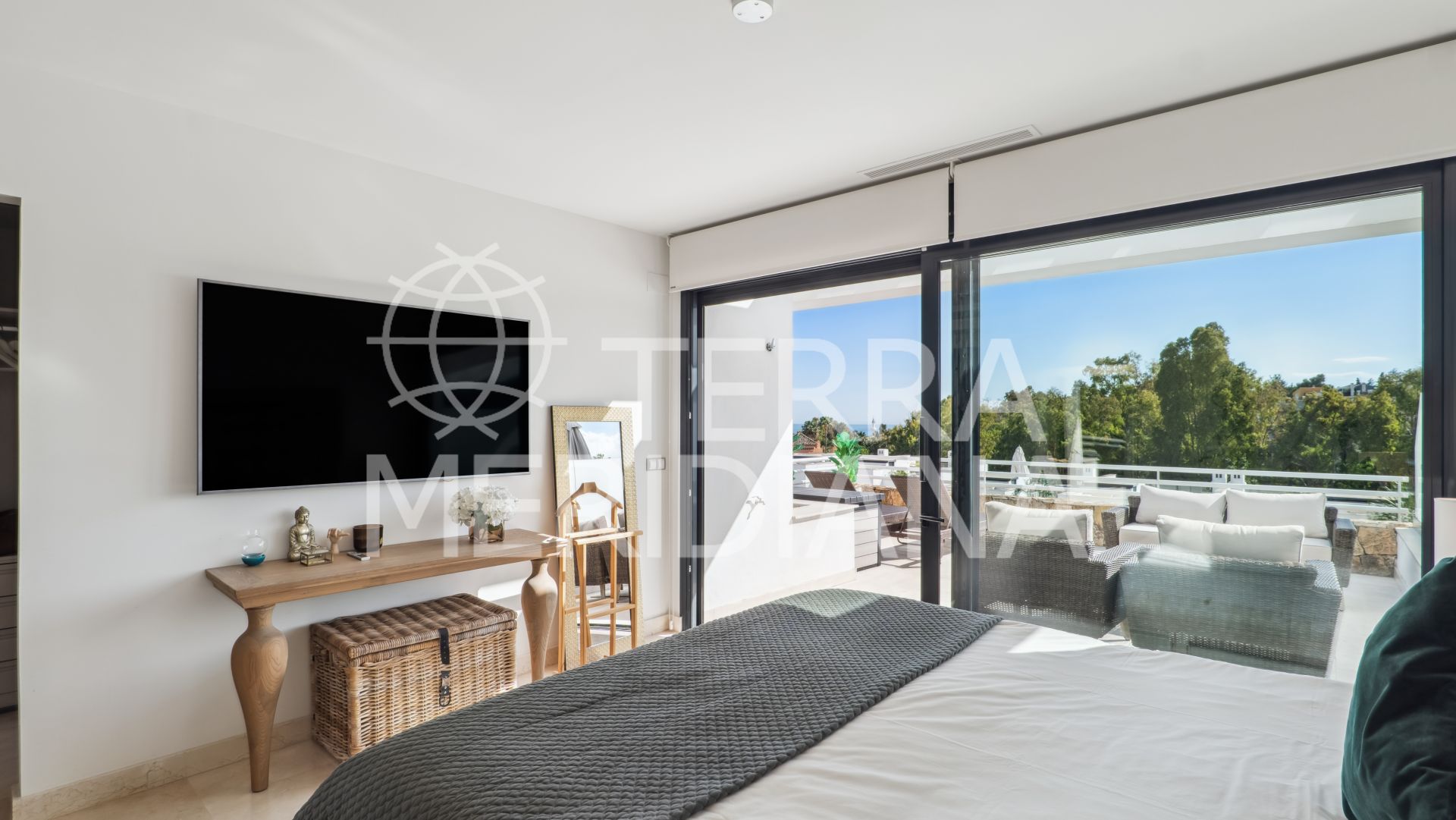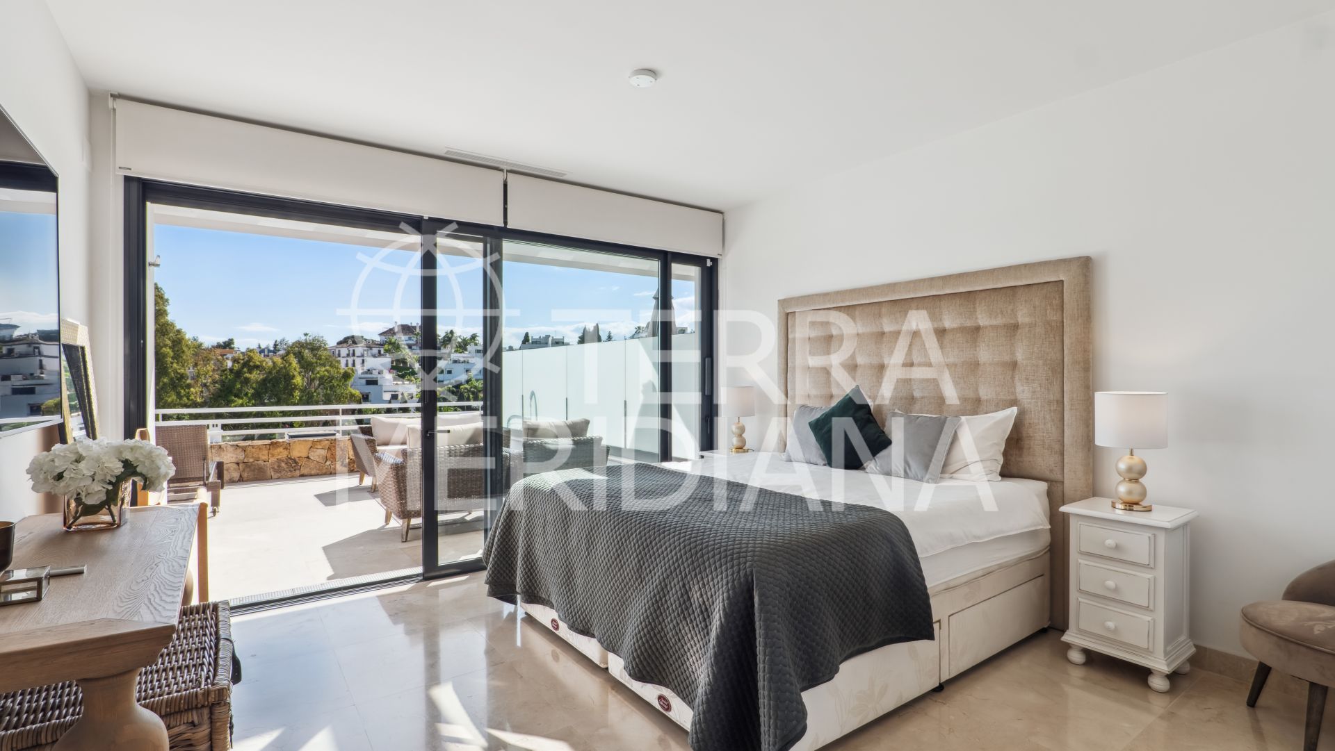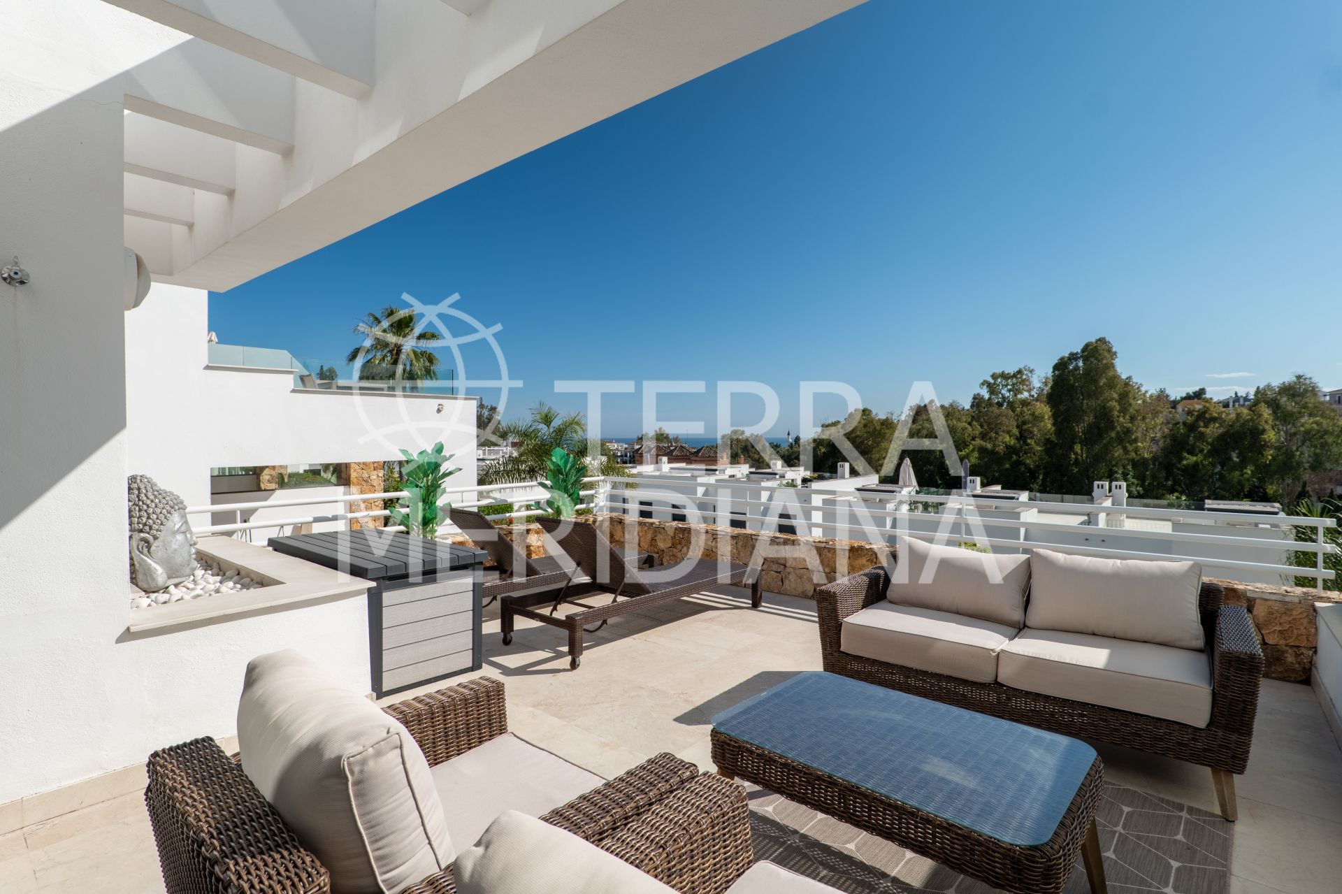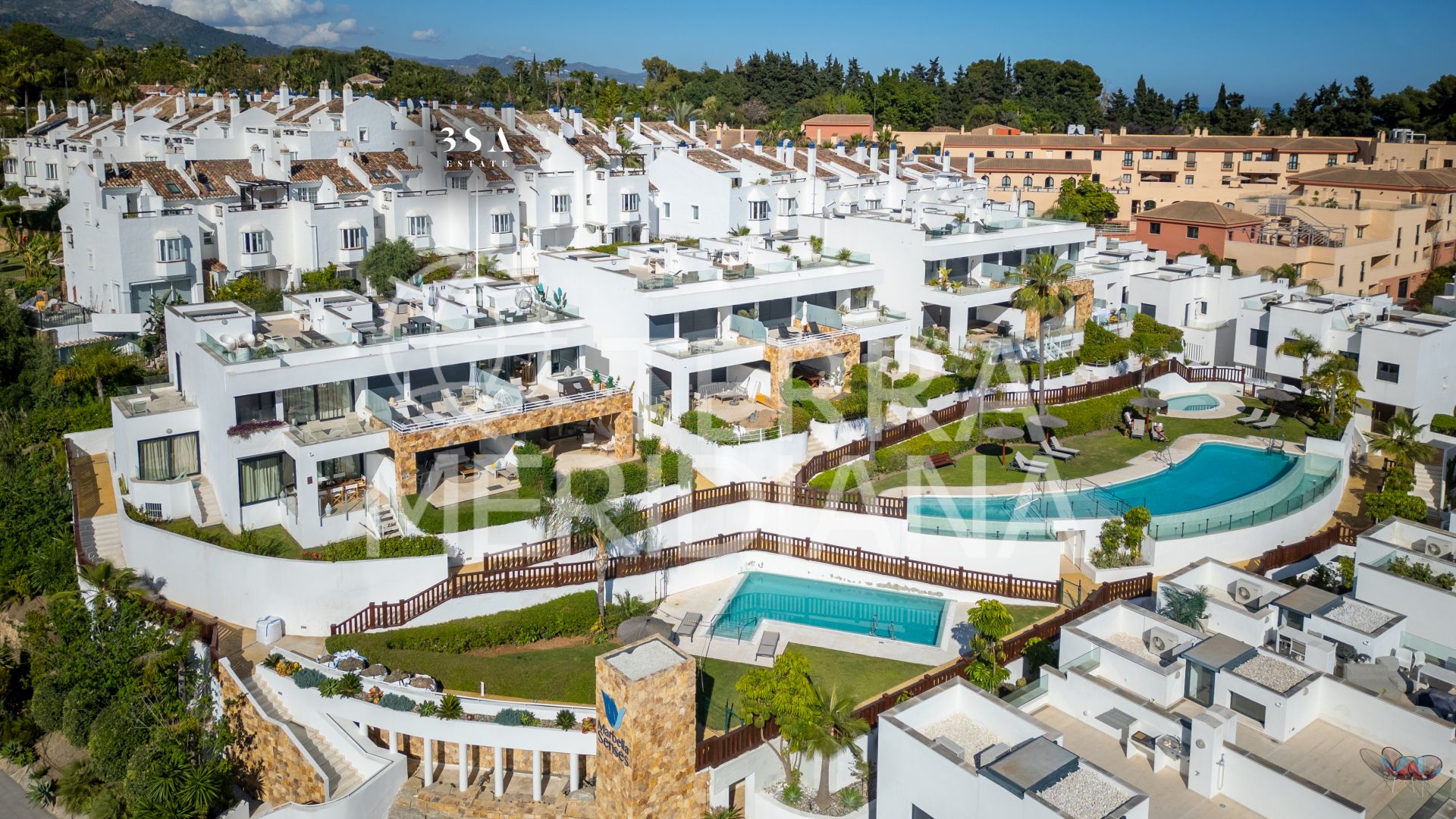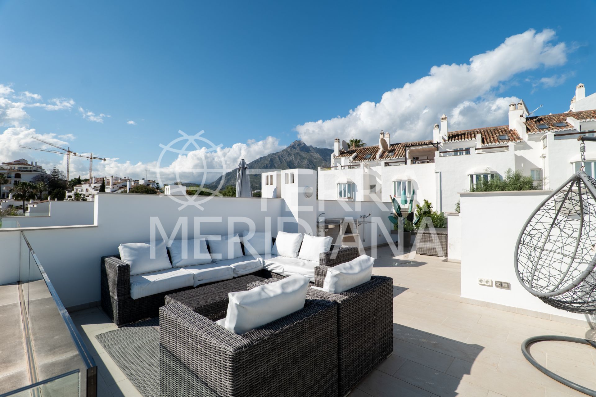 This spacious and light-filled 3-bedroom, 3-bathroom townhouse offers a rare combination of generous interior space, stunning views, and outdoor living in one of Marbella’s most sought-after areas—just minutes from Puerto Banús.