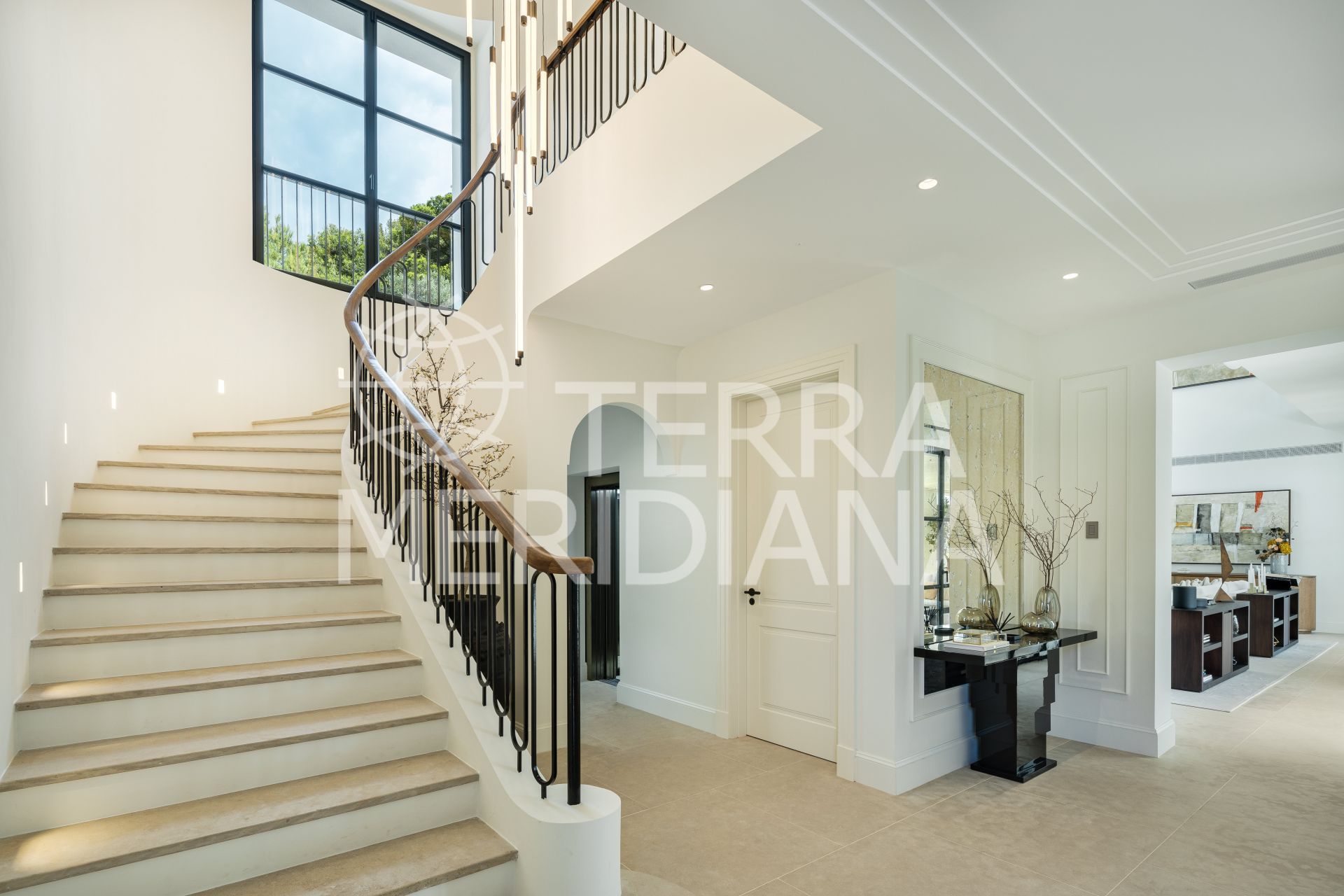 Inside, timeless elegance defines every space. Custom-made furniture and refined décor create a sophisticated ambiance, while the upper terraces provide effortless indoor-outdoor living. Expansive windows flood the interiors with natural light, enhancing the home’s sense of openness.