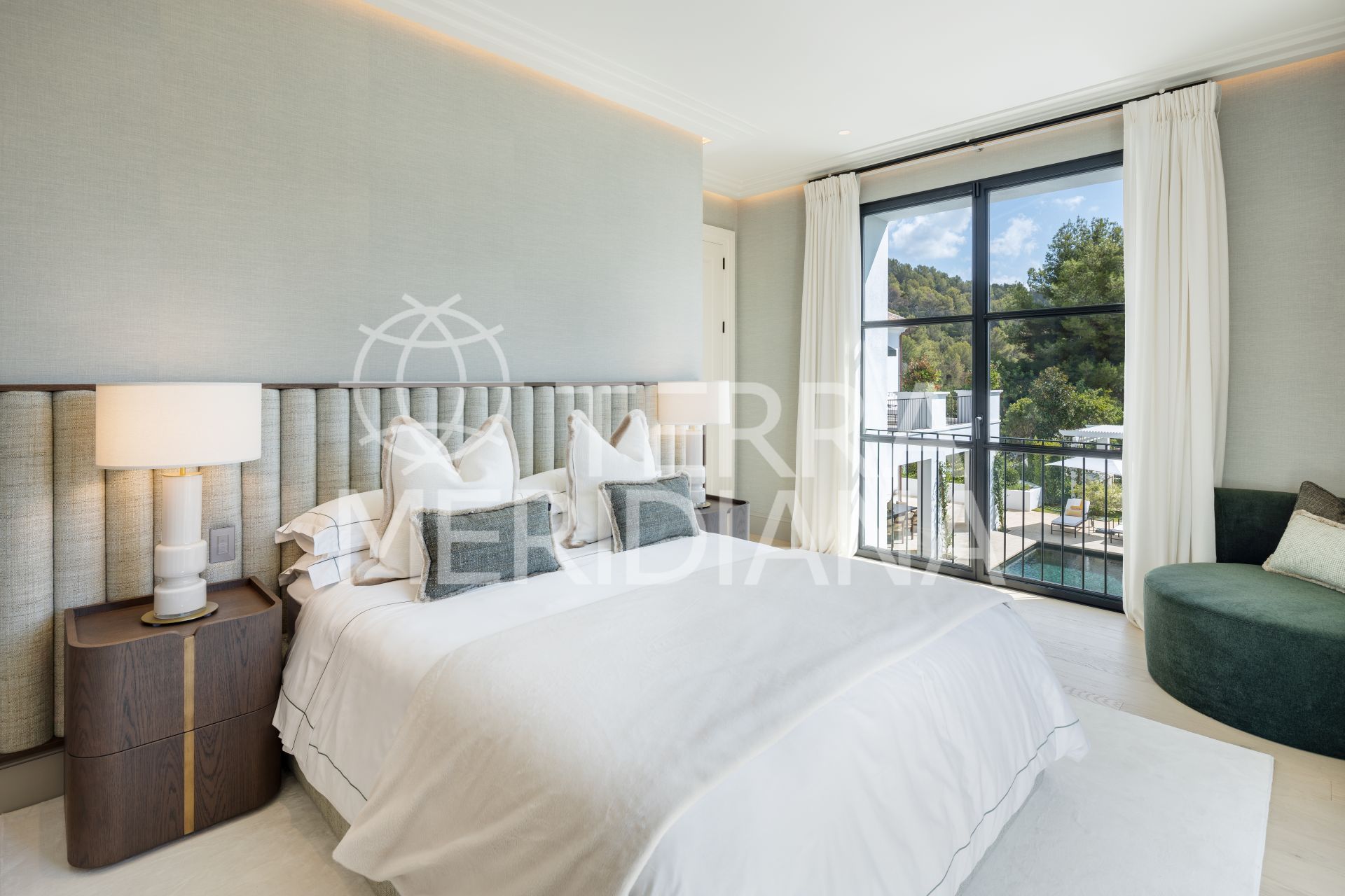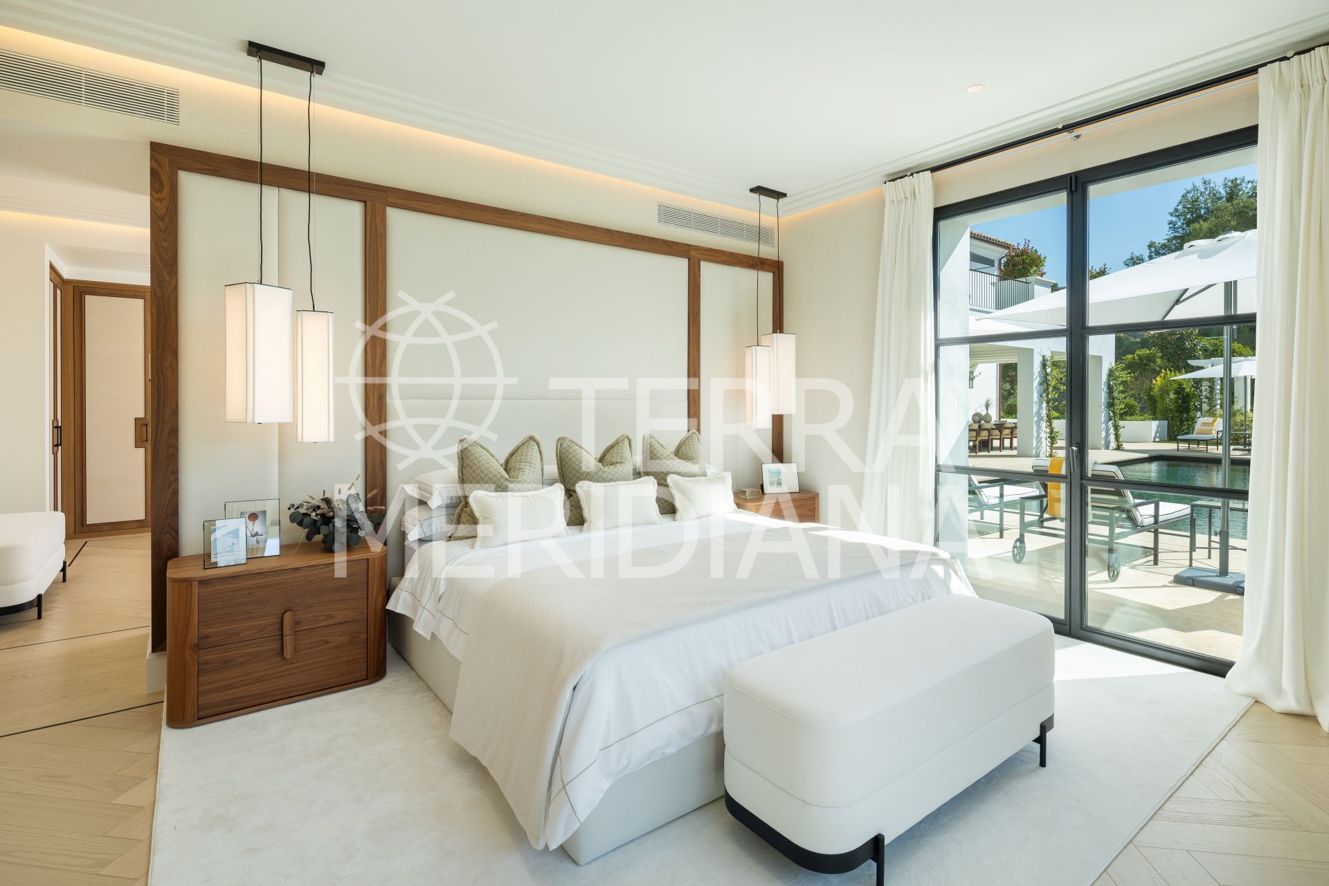 Created by the acclaimed architect behind Finca Cortesín, the villa’s nude-toned exterior radiates serenity and peace, offering a calming atmosphere for its residents. The gardens are a true oasis—perfect for hosting gatherings and making the most of Marbella’s 320 days of sunshine. Colorful floral walls frame the property, adding vibrancy and seamlessly blending the natural surroundings with the estate.