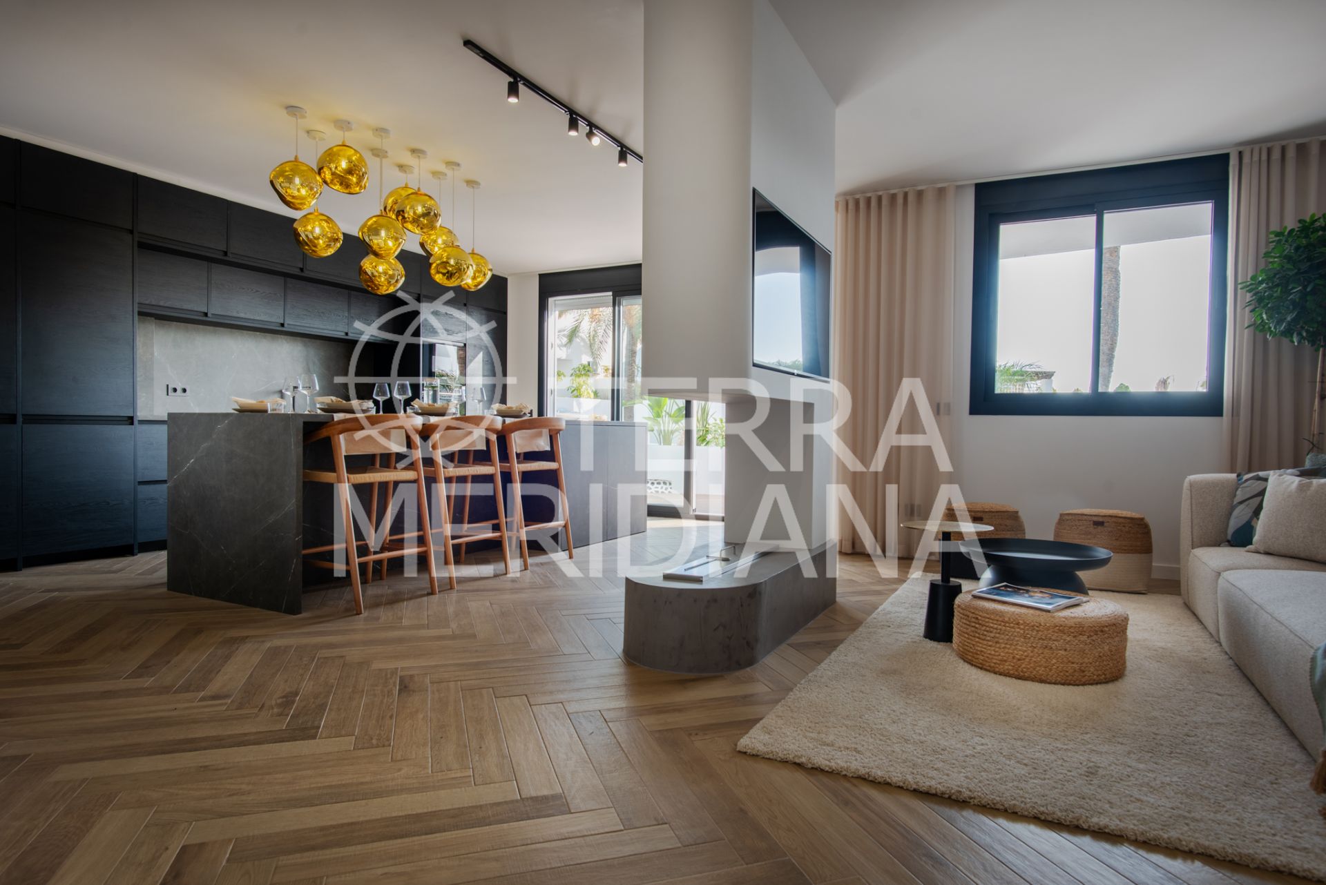 This exquisite 3-bedroom ground-floor apartment in Nueva Andalucía, Marbella, epitomizes modern luxury and comfort. Recently renovated to...