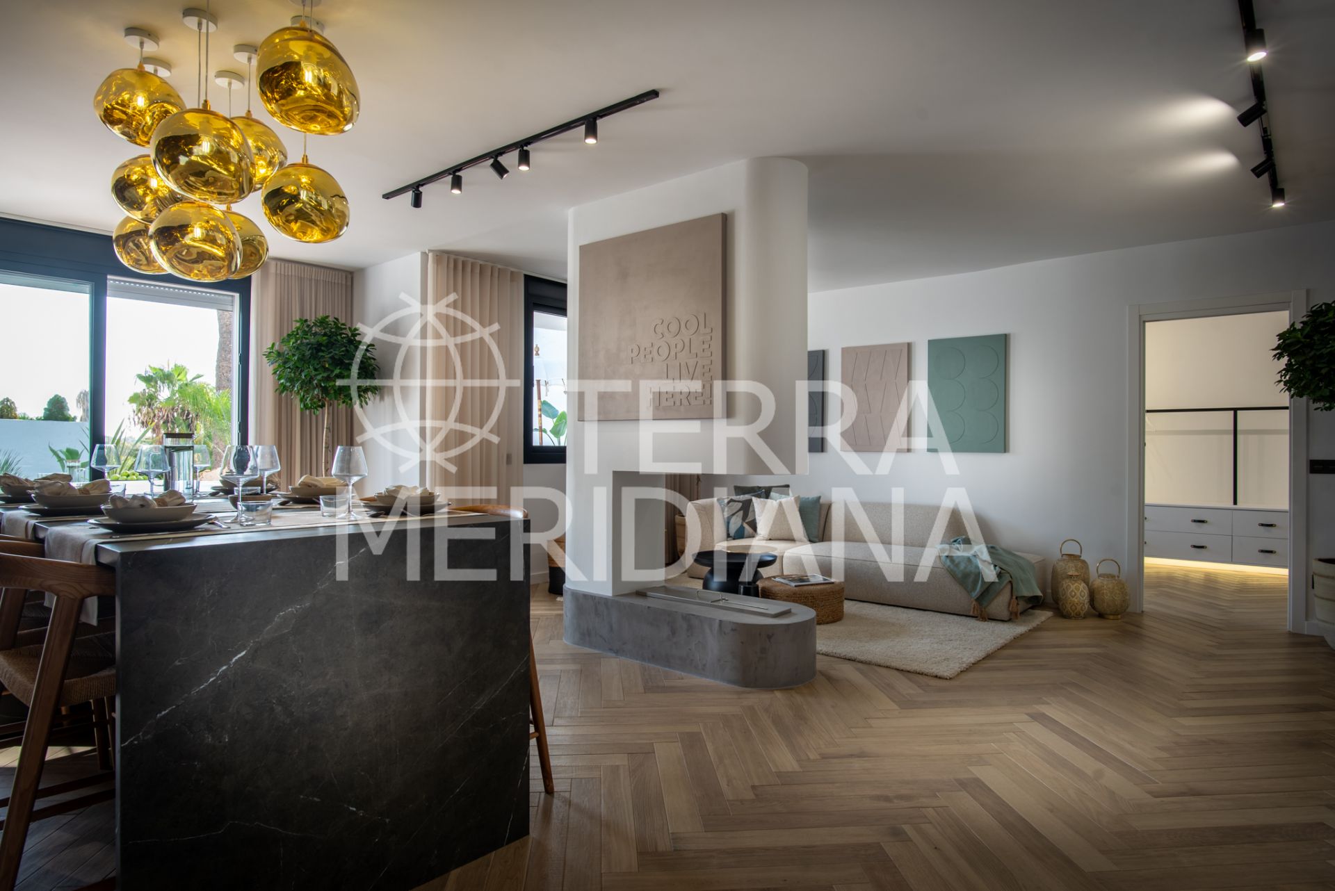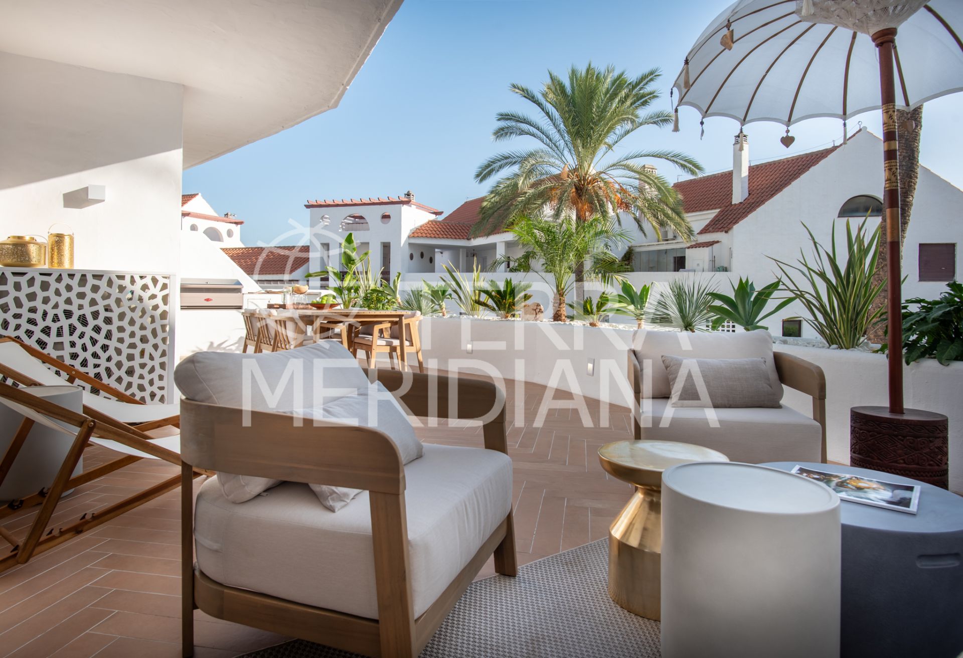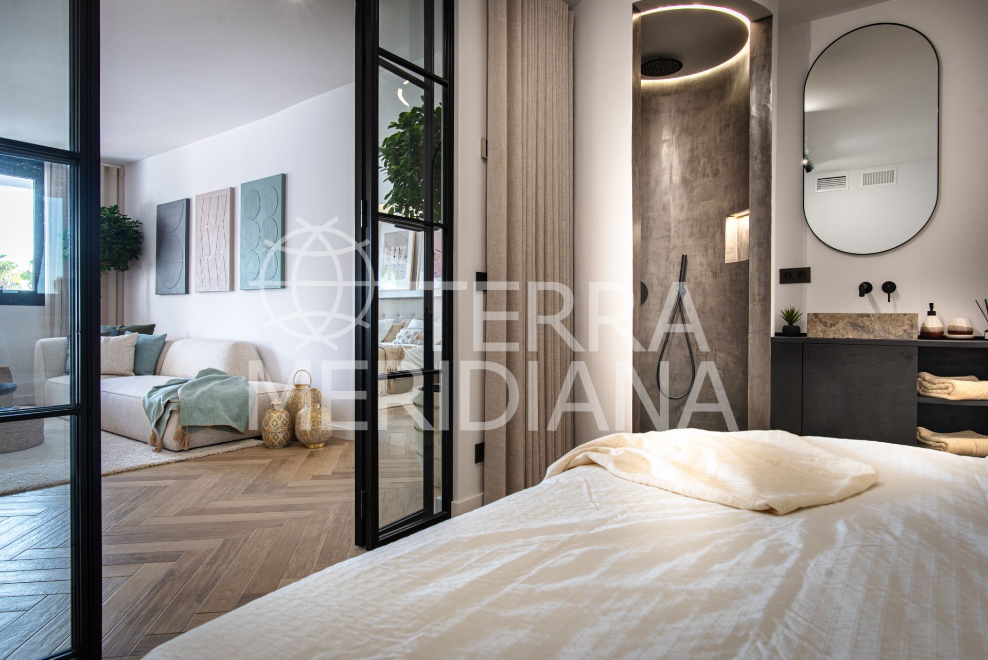 Discover contemporary comfort and Mediterranean style in this beautifully renovated 3-bedroom, 3-bathroom apartment, perfectly located in the sought-after area of Nueva Andalucía. With 143 m² of interior space and a private parking space, this home offers both style and practicality.