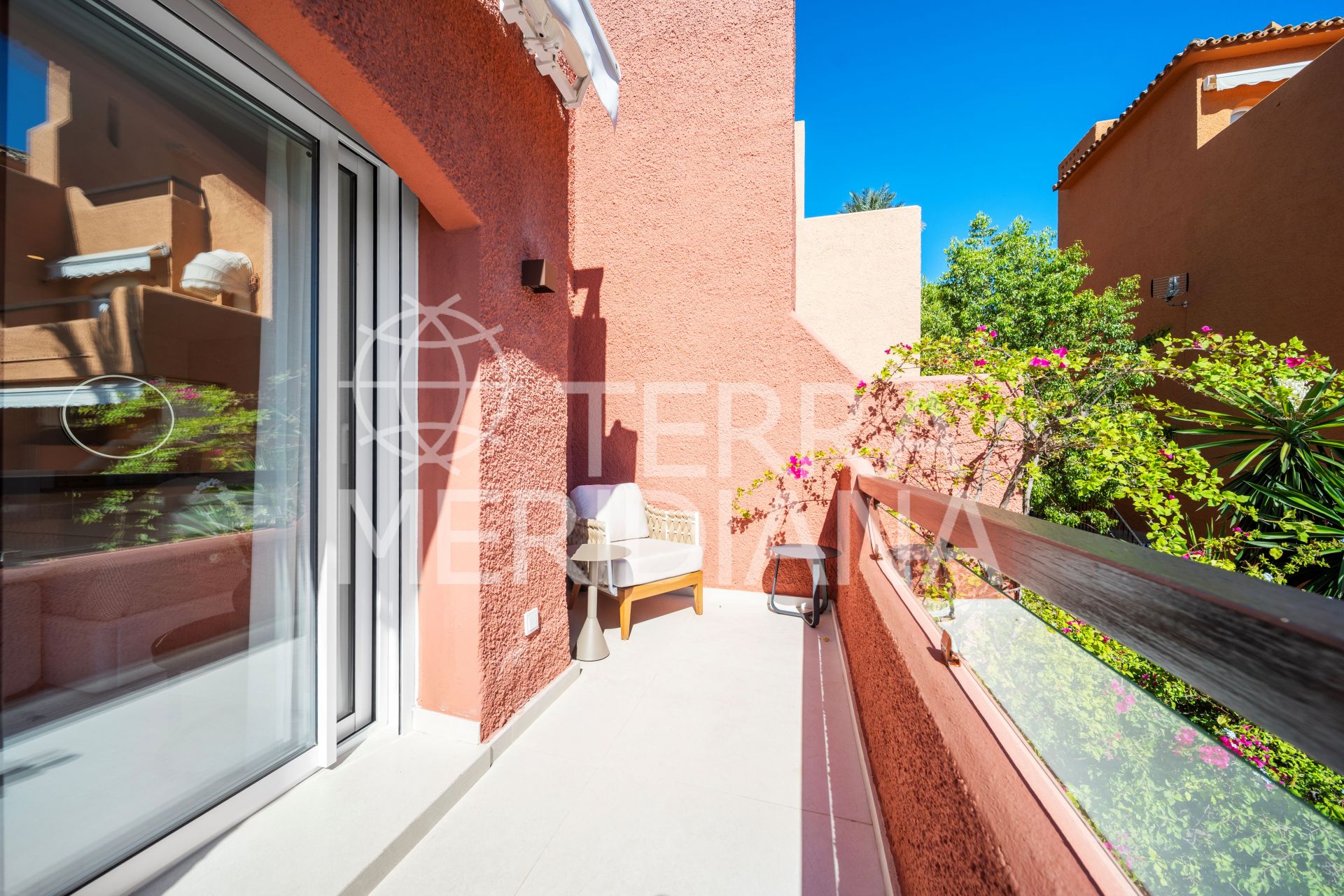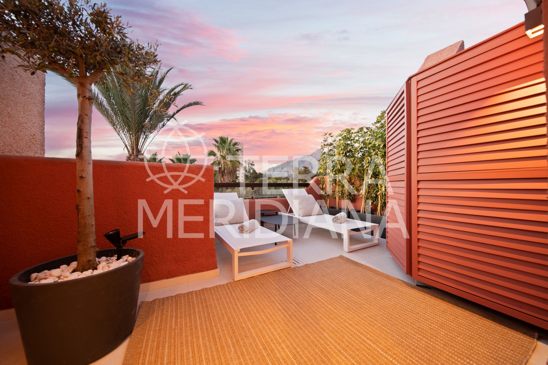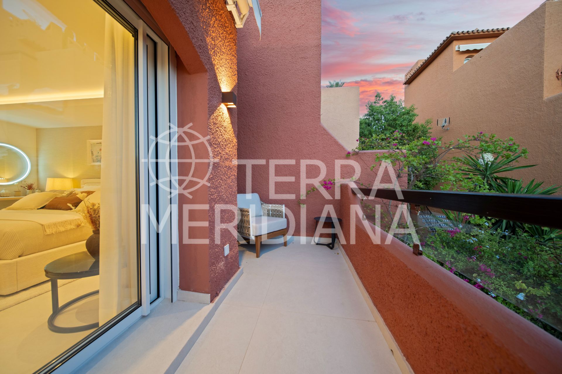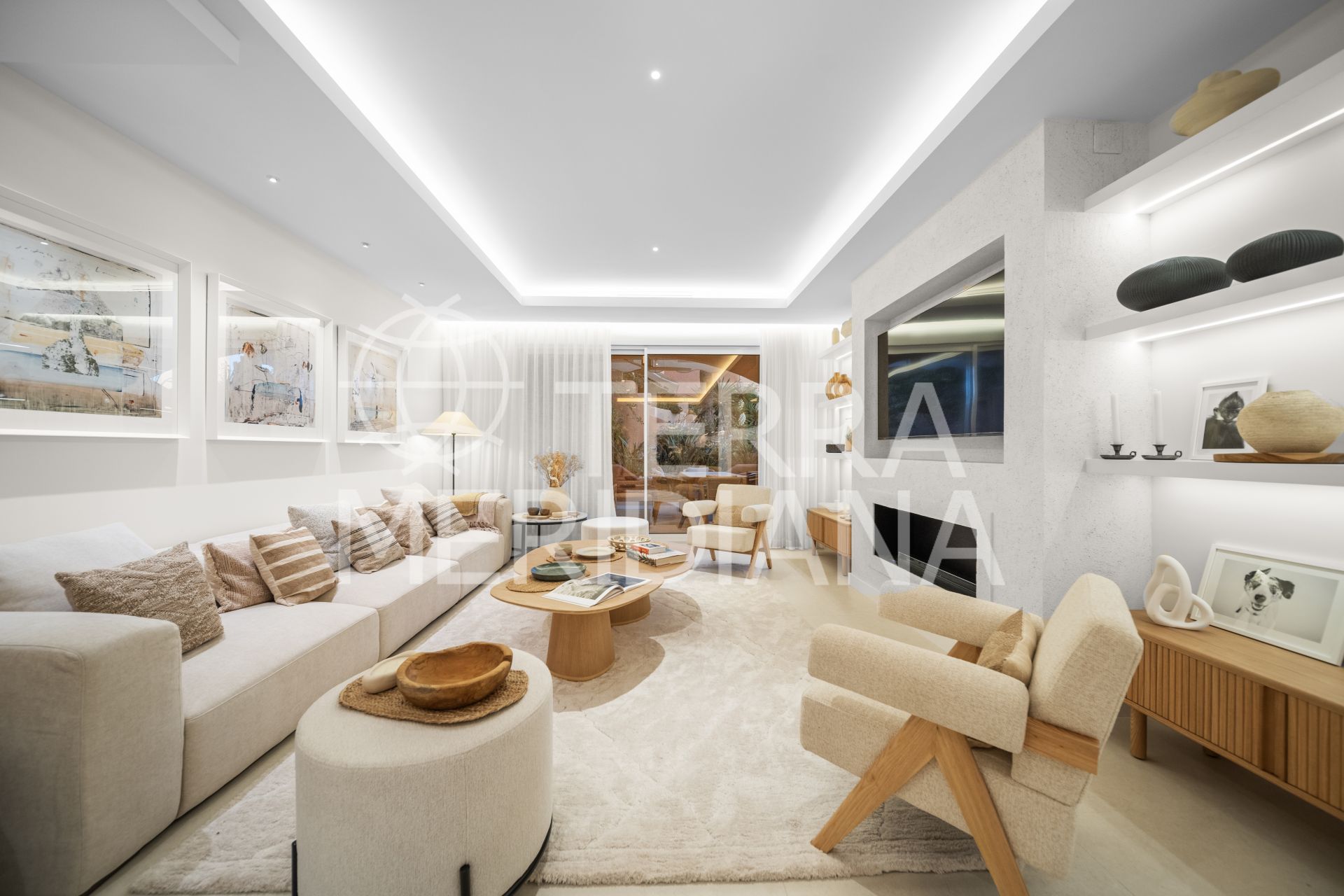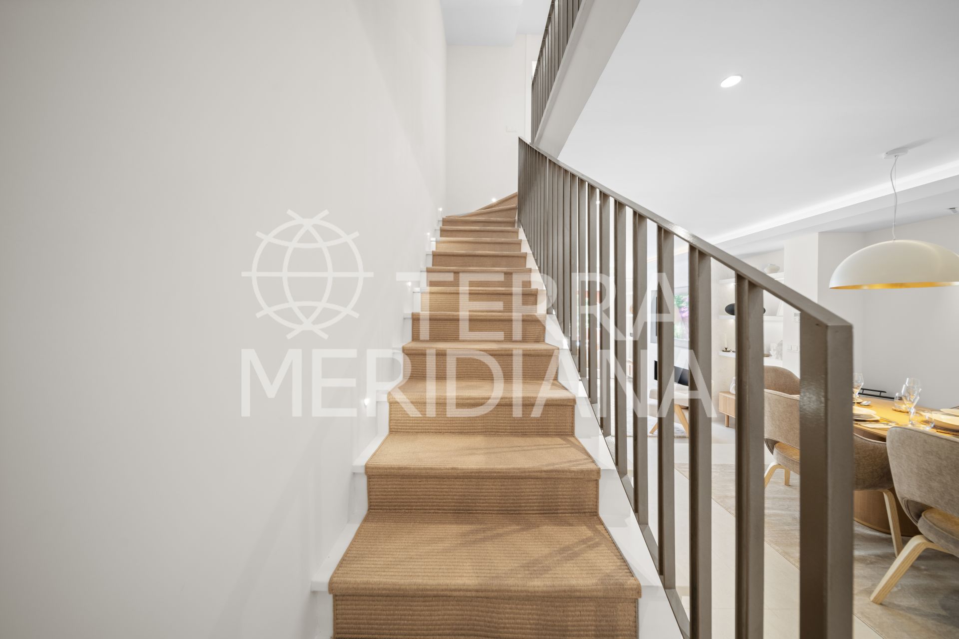 Presenting an exquisite, turnkey, fully renovated town house located in the prestigious El Palmeral development of Nueva Andalucia, Marbella. This luxurious property offers elegant interiors designed for those seeking the finest quality of life in the Costa Del Sol, the home seamlessly combines exceptional attention to detail, contemporary amenities, and a superior standard of finish throughout.