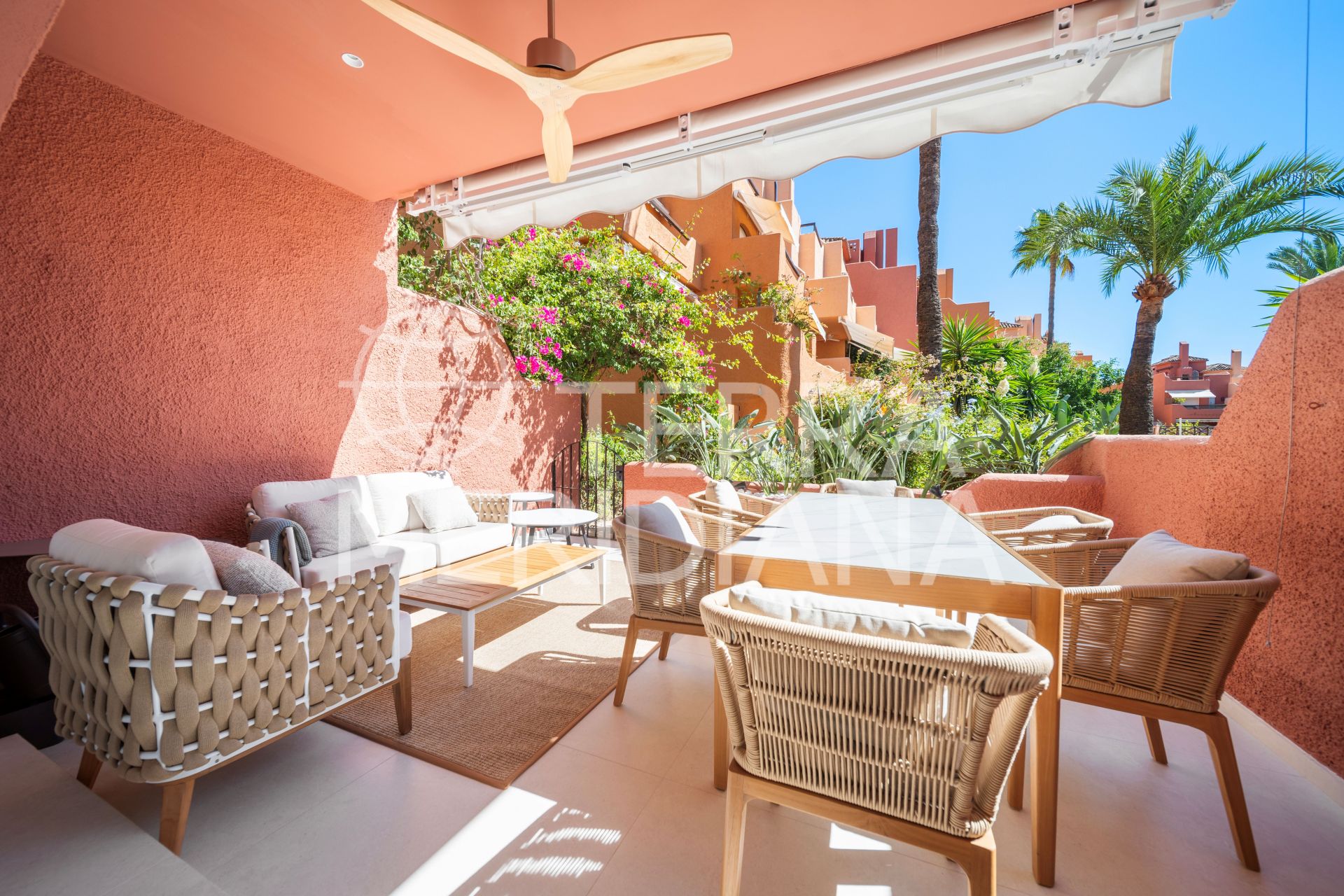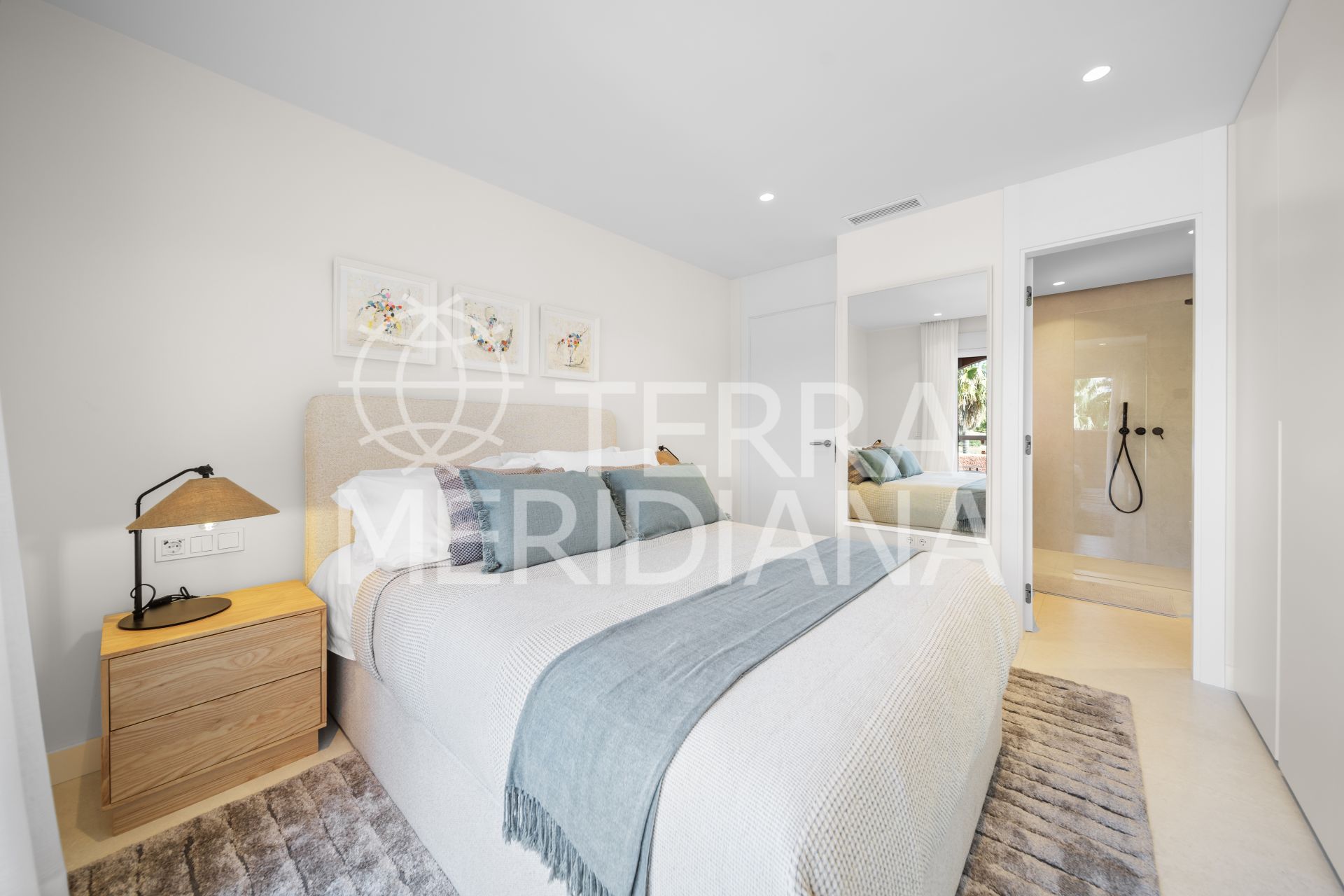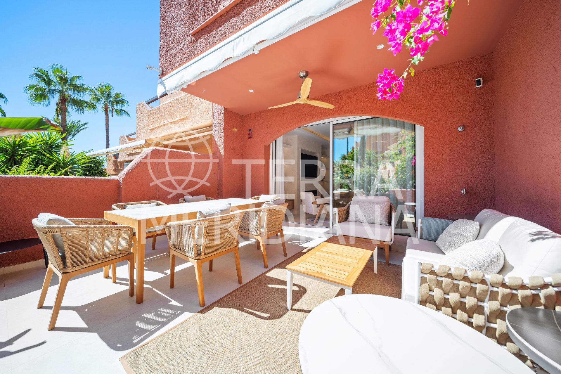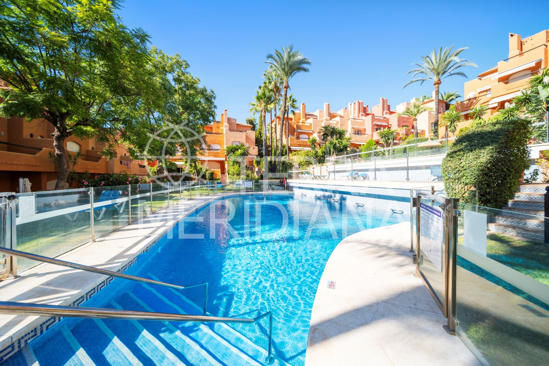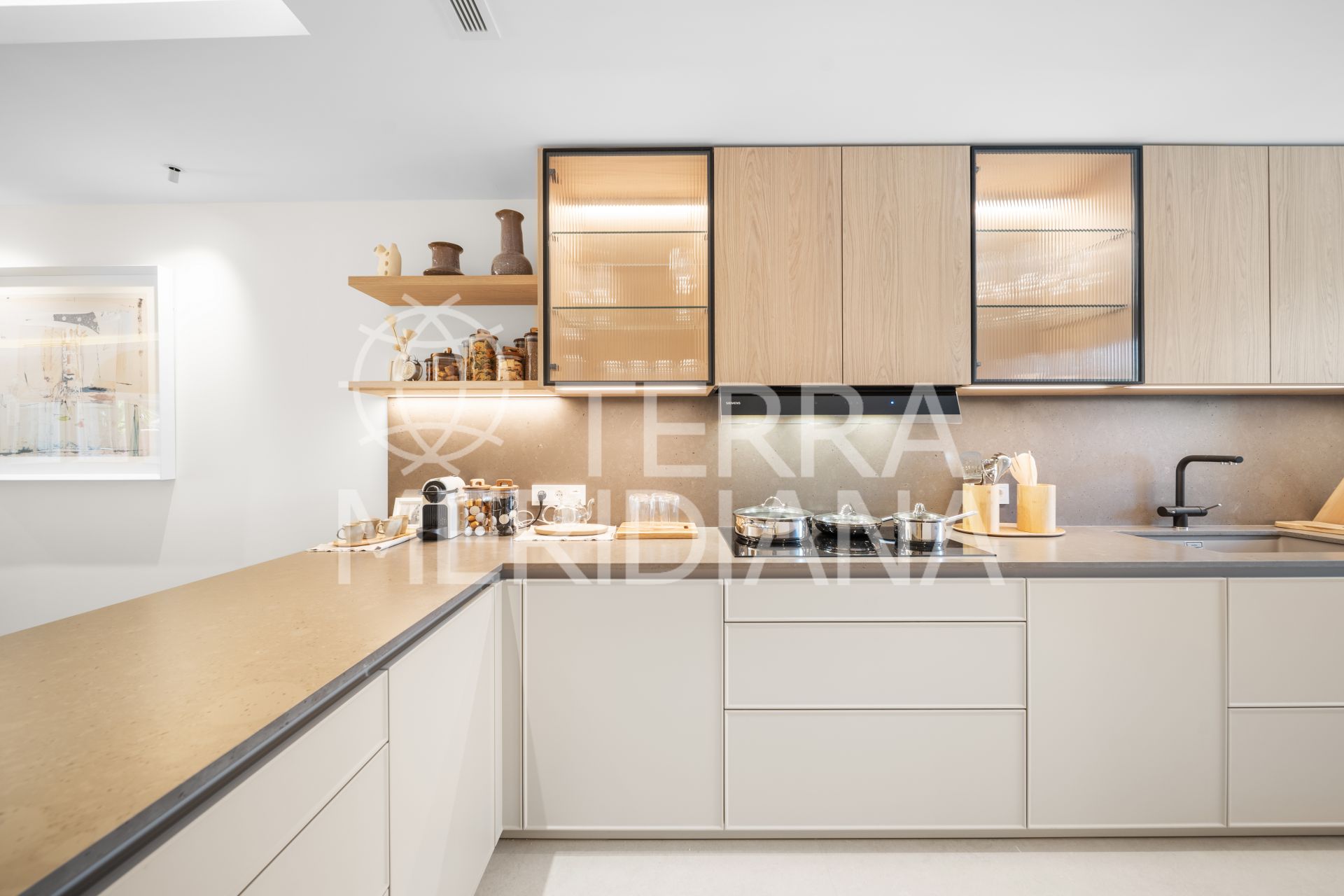 Presenting an exquisite, turnkey, fully renovated town house located in the prestigious El Palmeral development of Nueva Andalucia, Marbella. This luxurious property offers elegant interiors designed for those seeking the finest quality of life in the Costa Del Sol, the home seamlessly combines exceptional attention to detail, contemporary amenities, and a superior standard of finish throughout.