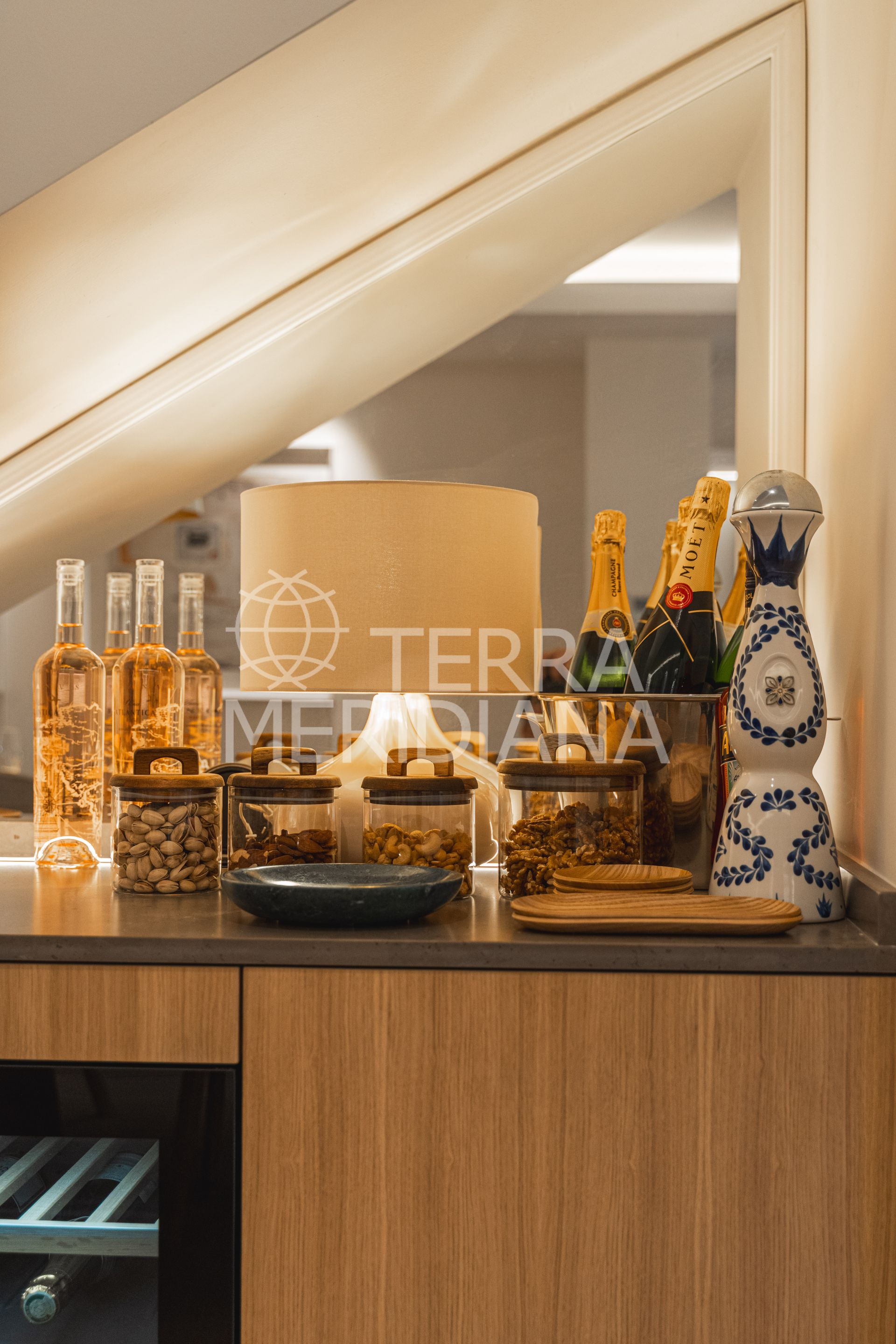 Every feature of this residence has been carefully curated to deliver a lifestyle of comfort and sophistication. Each bedroom boasts an en-suite bathroom and its own private terrace, and there is a guest toilet for convenience. The open plan kitchen by Santos is a focal point, perfect for both everyday living and entertaining, while the lounge is enhanced by a planika fireplace and direct access to a covered terrace. Double glazing, electric shutters, electric awnings and a smart home system ensure comfort and peace of mind, whilst underfloor heating in the bathrooms and aerothermics provide year-round climate control.