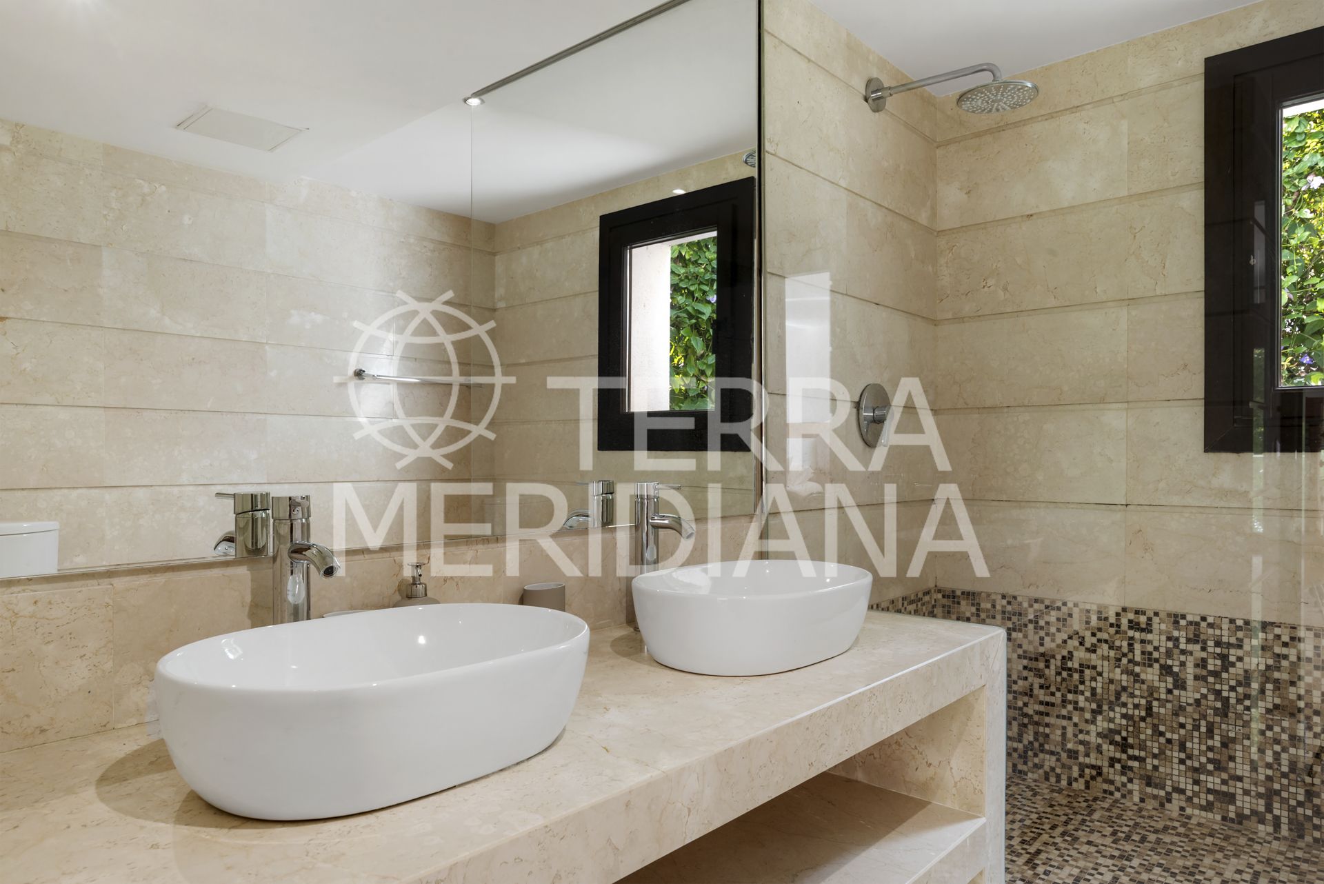 The villa itself is composed of an entrance hall, great large living room with dining area, part covered with a glass roof allowing alot of light to enter, fully fitted open plan modern kitchen including breakfast bar, four bedrooms, plus another bedroom in the basement, four bathrooms, a guest toilet, and a terrace o the master bedroom with access to a small rooftop terrace.