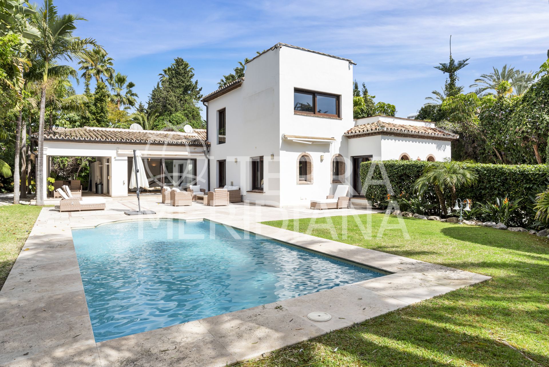 Welcome to this unique south facing villa, located second line from the golf course, within walking distance to Centro Plaza, Aloha Garden, Puerto Banus, a range of well known golf courses including Aloha and Las Brisas, bars, restaurants and supermarkets.