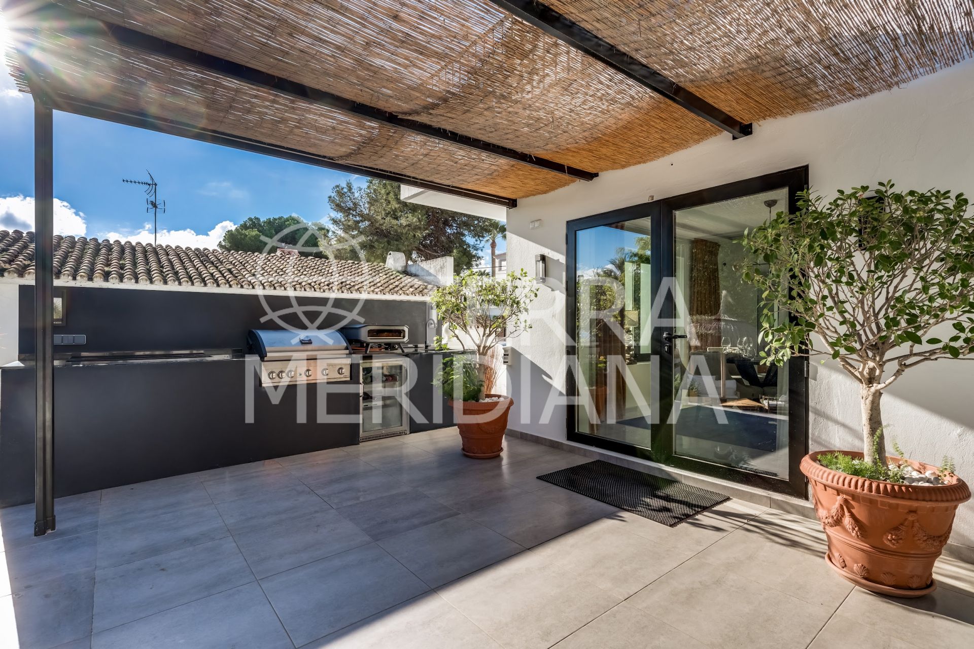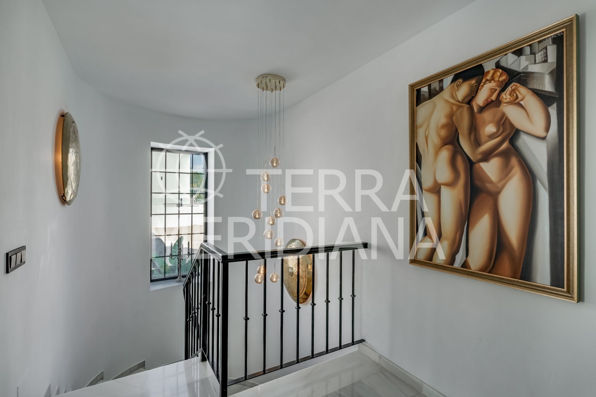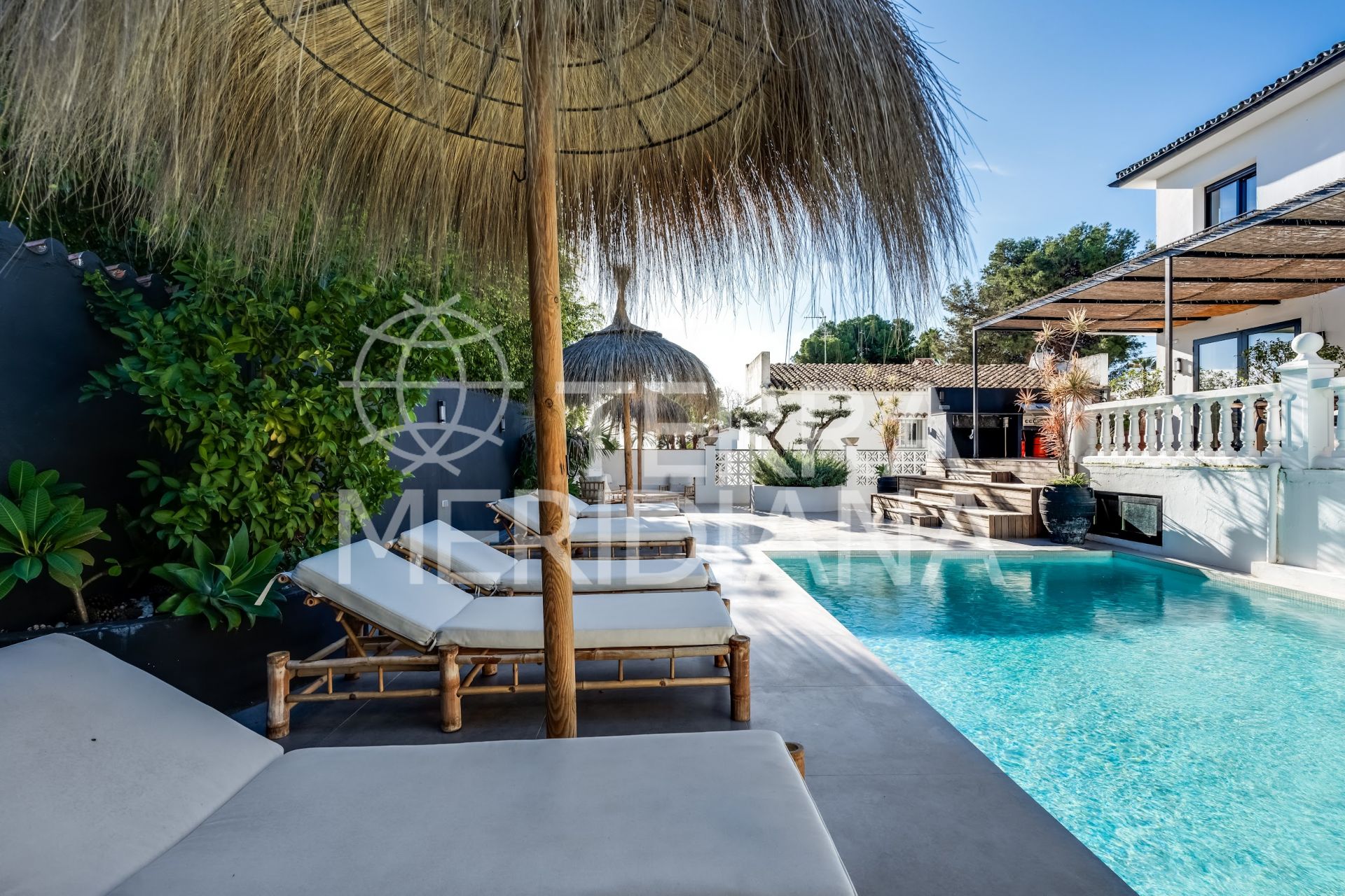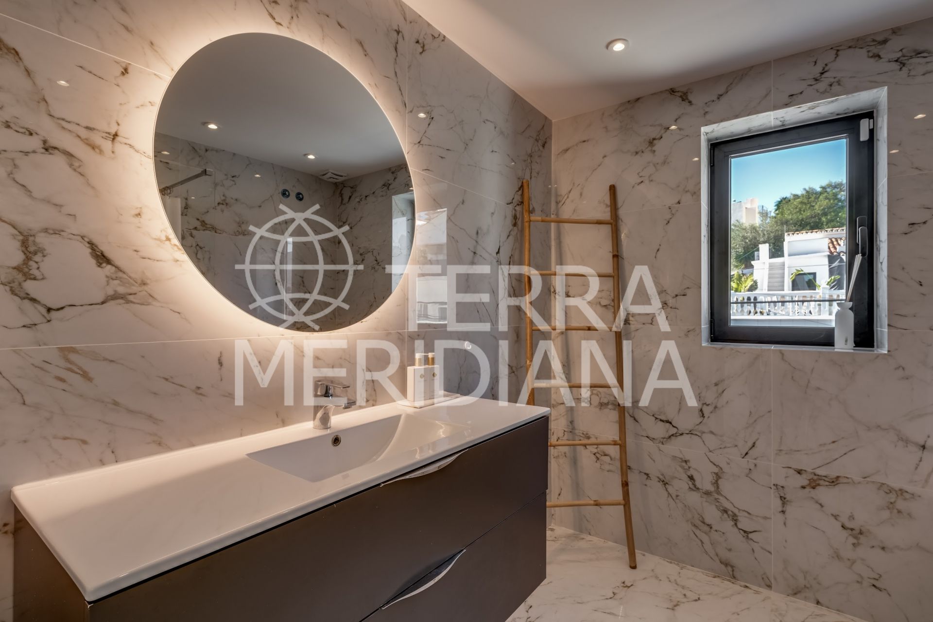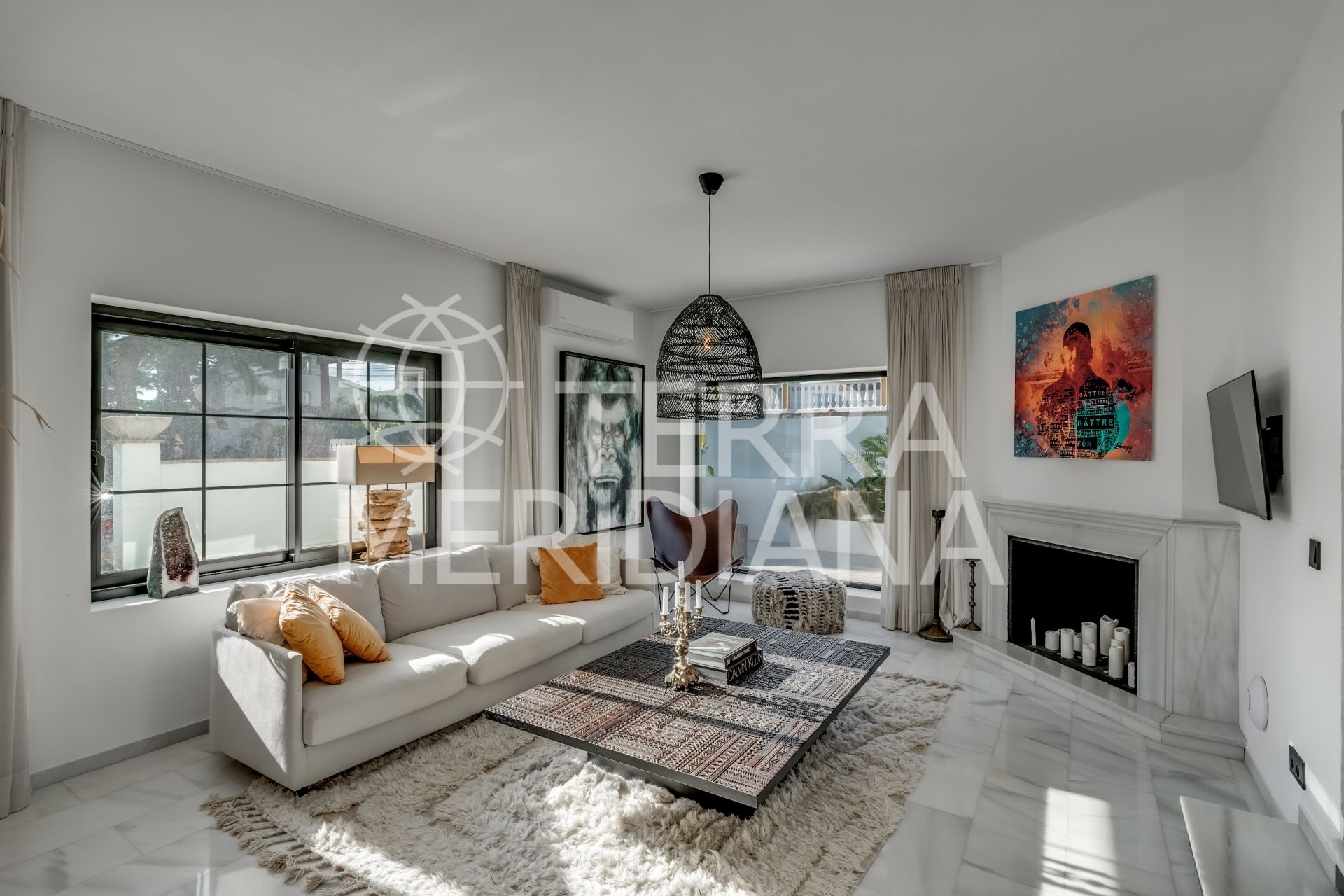 This stunning villa, recently renovated just one year ago, is perfectly located in Nueva Andalucía. Situated close to the beach and within walking distance of all amenities, this property offers an exceptional blend of convenience and luxury.