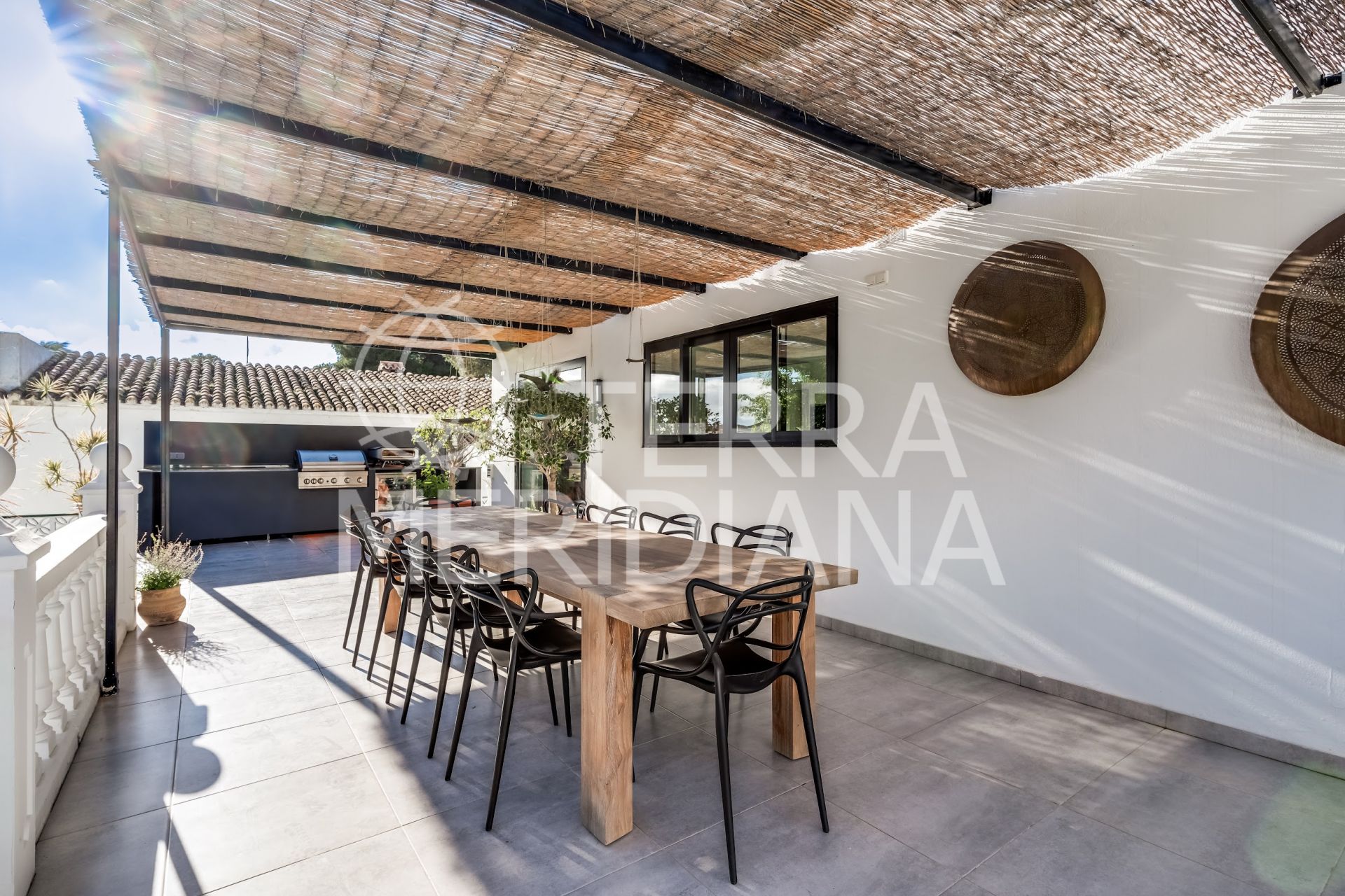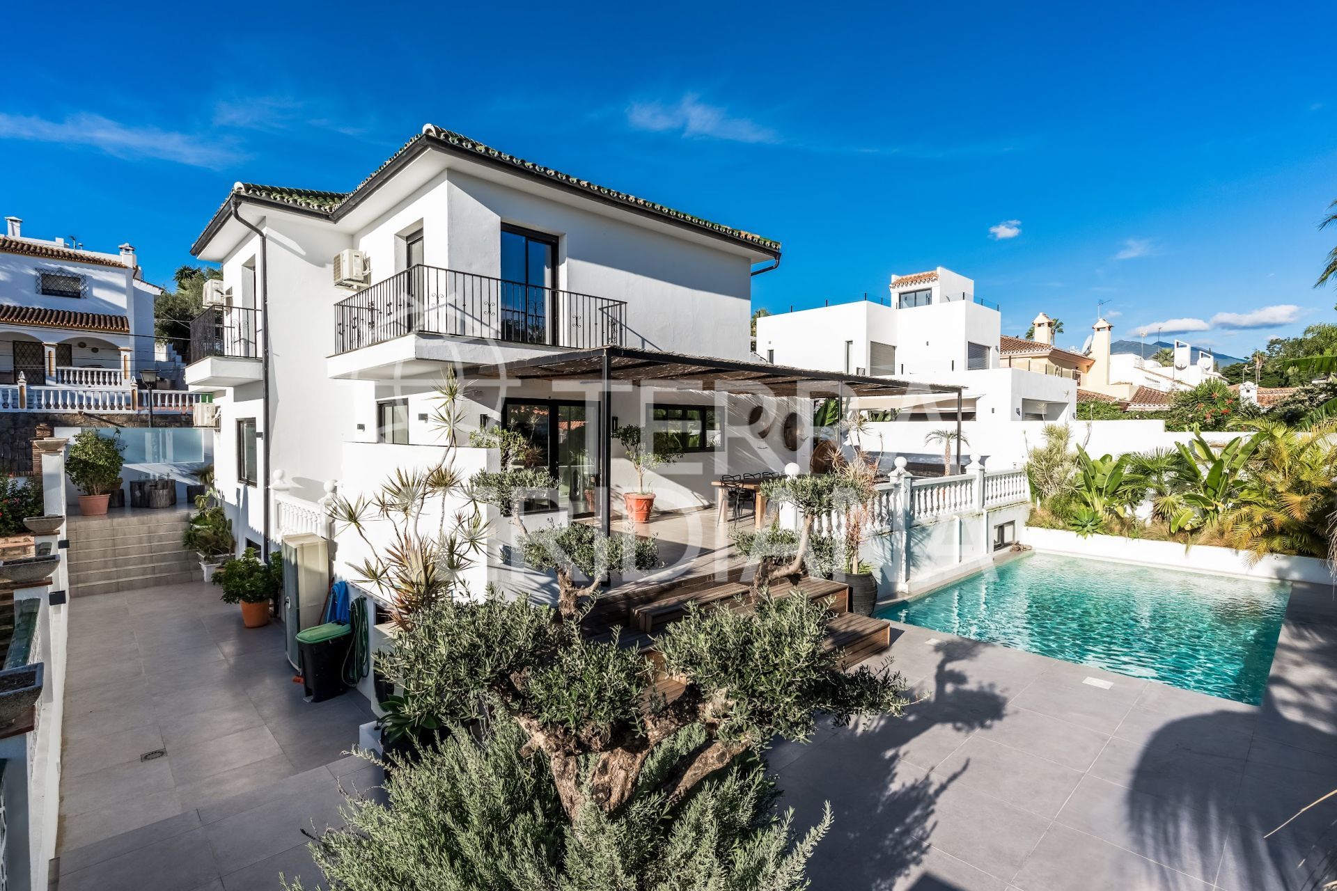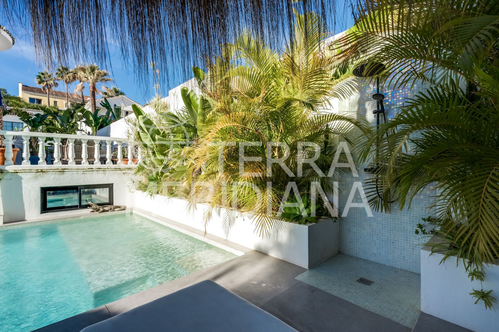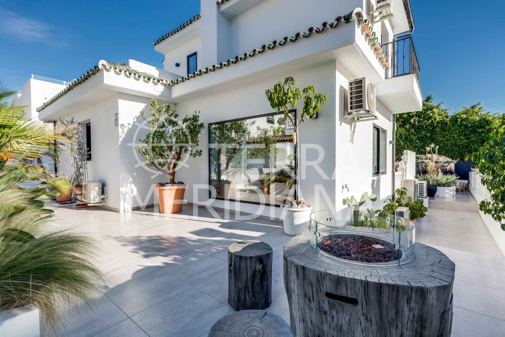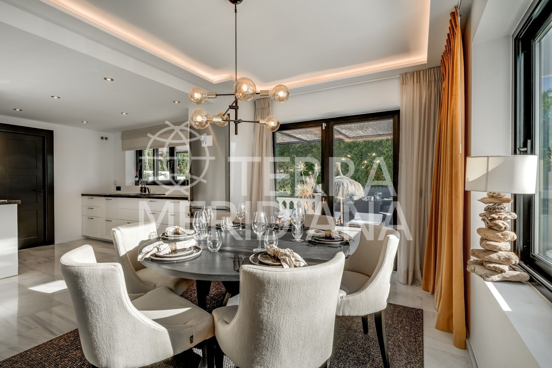 This stunning villa, recently renovated just one year ago, is perfectly located in Nueva Andalucía. Situated close to the beach and within walking distance of all amenities, this property offers an exceptional blend of convenience and luxury.