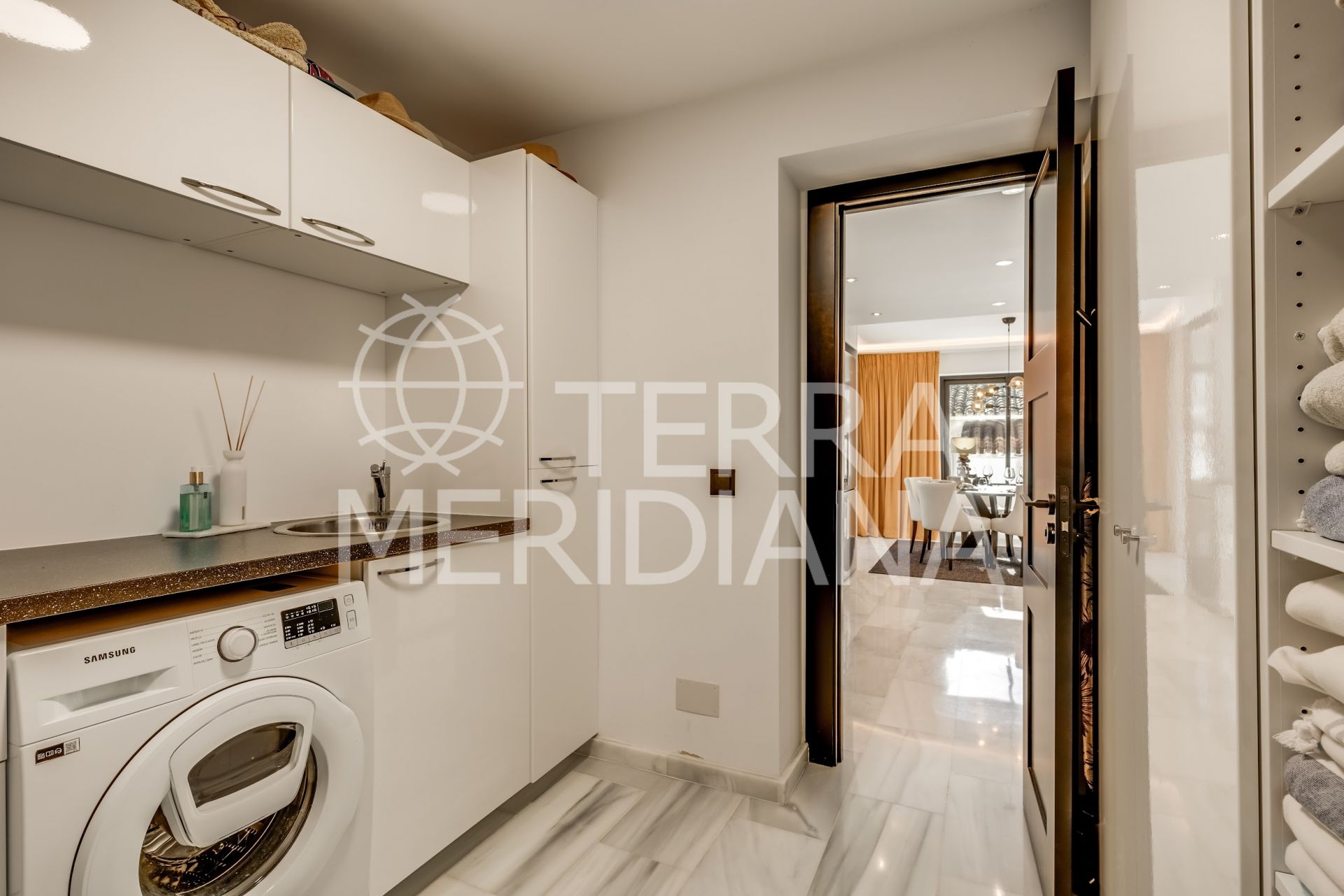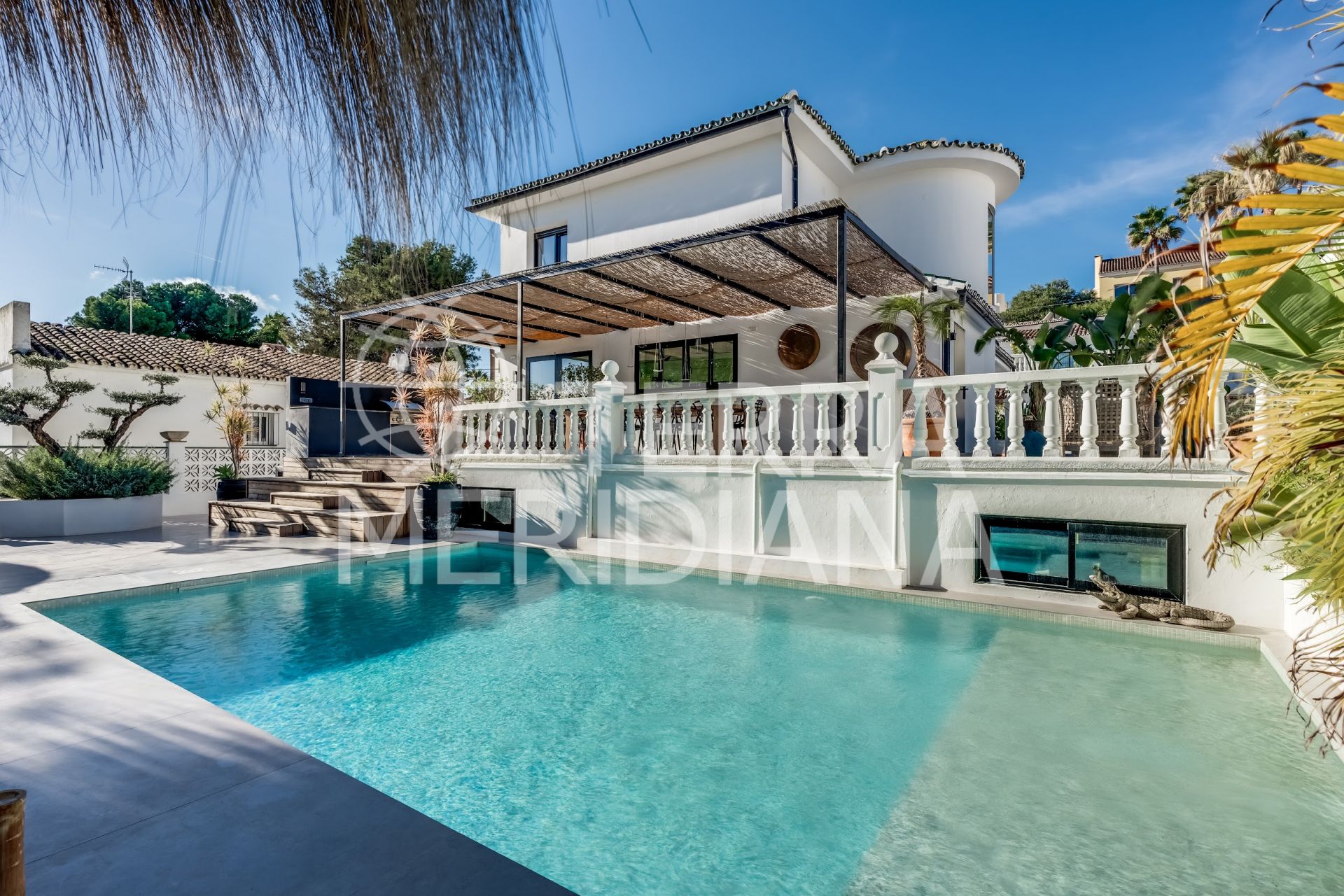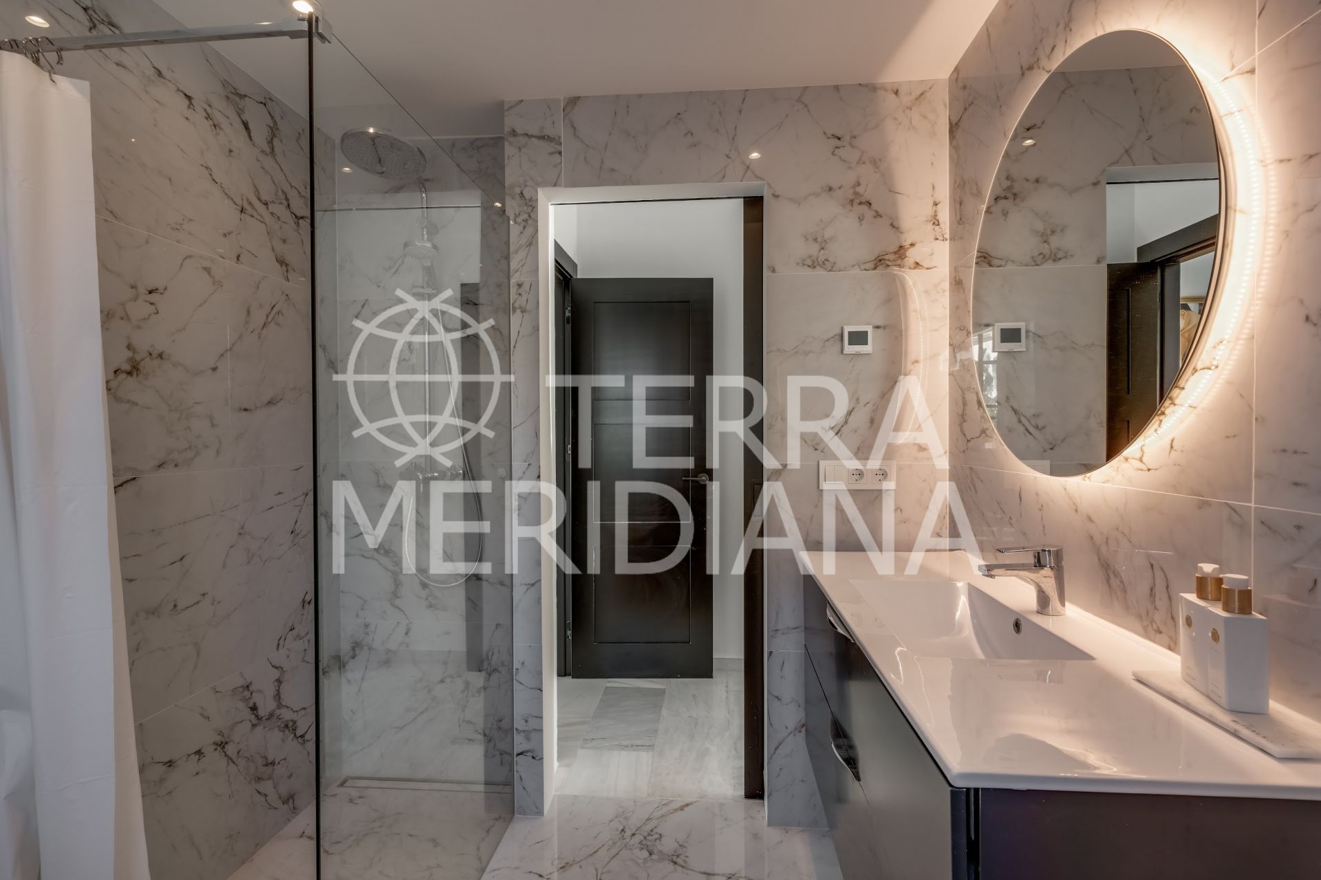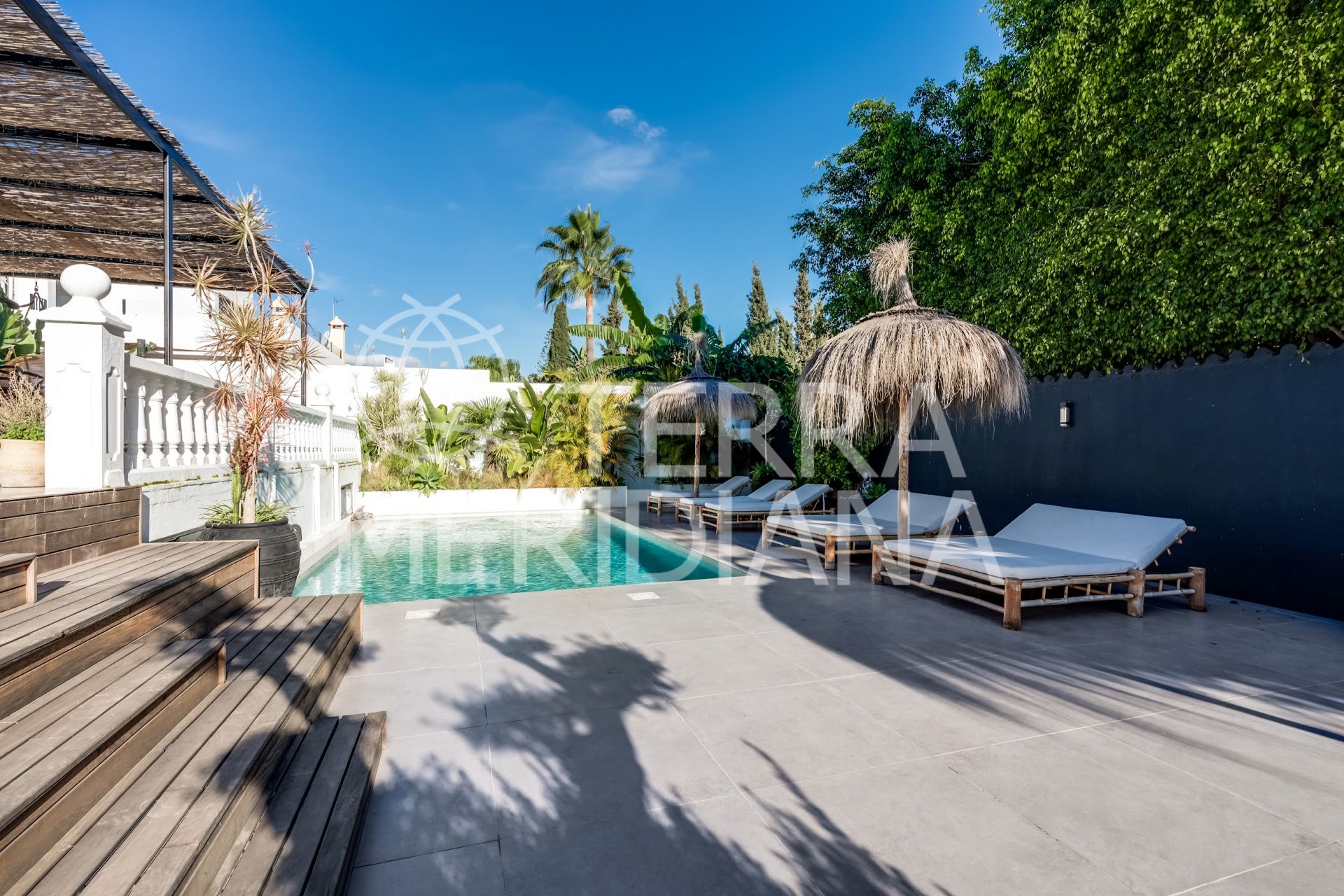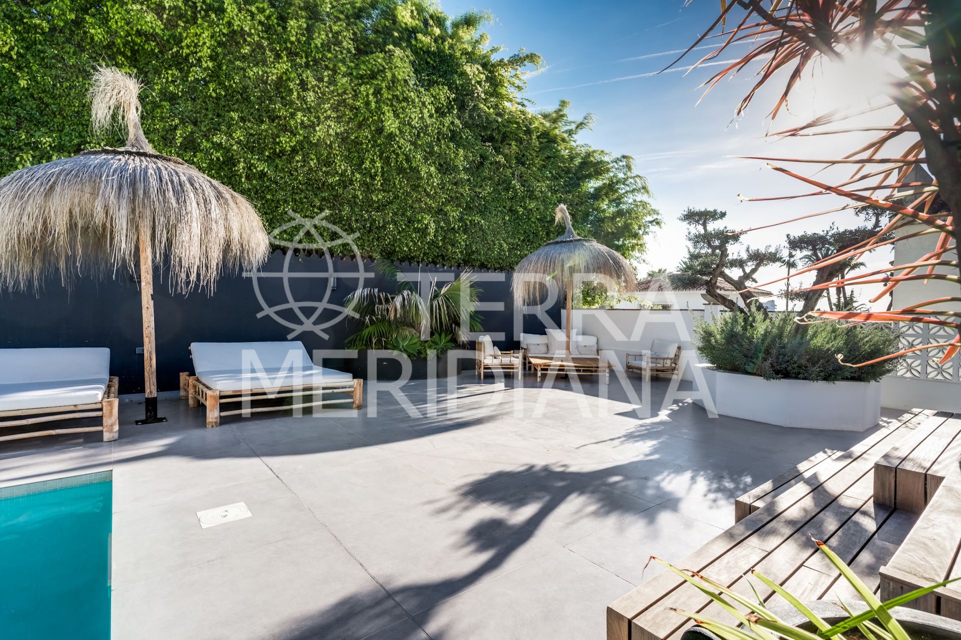 This stunning villa, recently renovated just one year ago, is perfectly located in Nueva Andalucía. Situated close to the beach and within walking distance of all amenities, this property offers an exceptional blend of convenience and luxury.