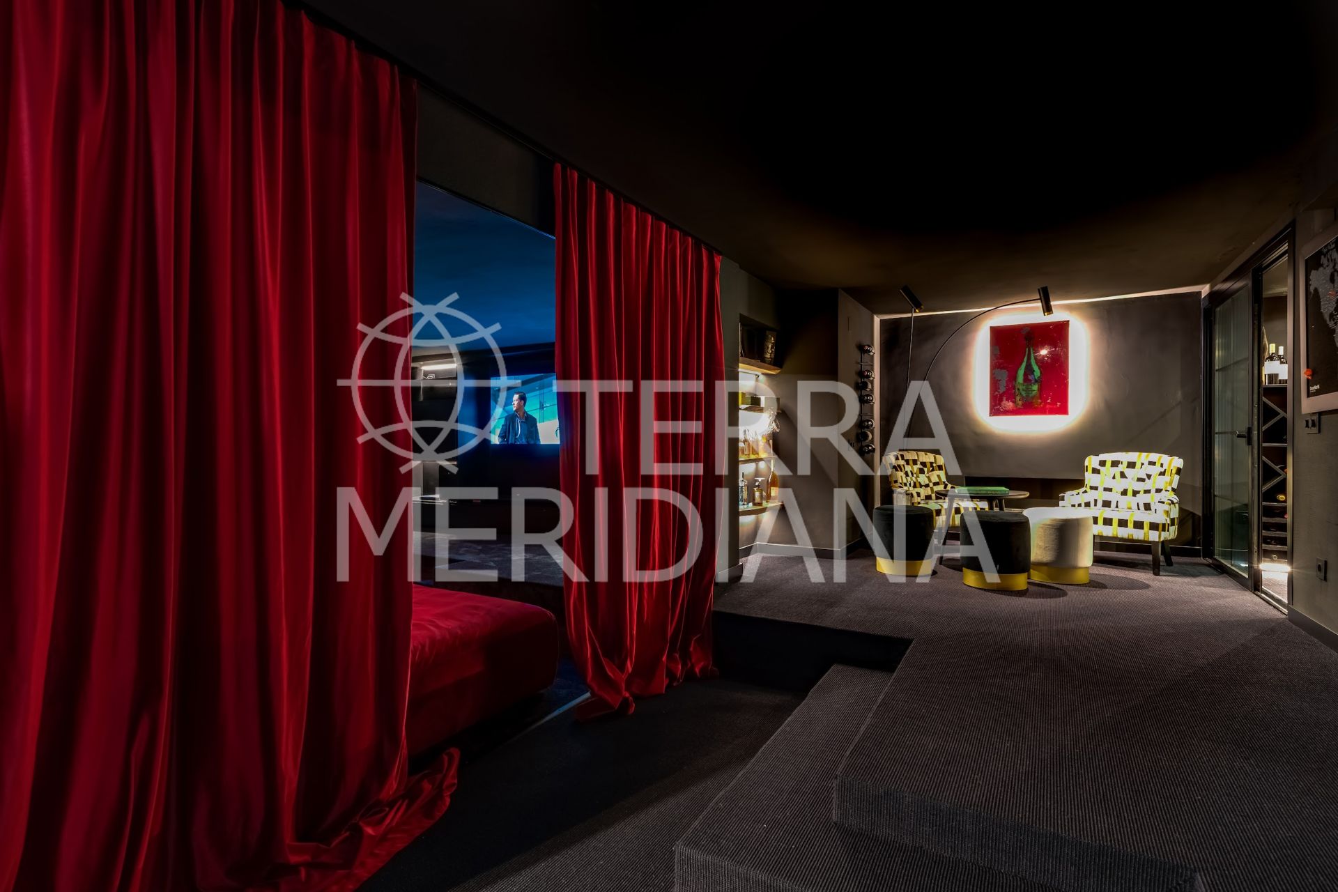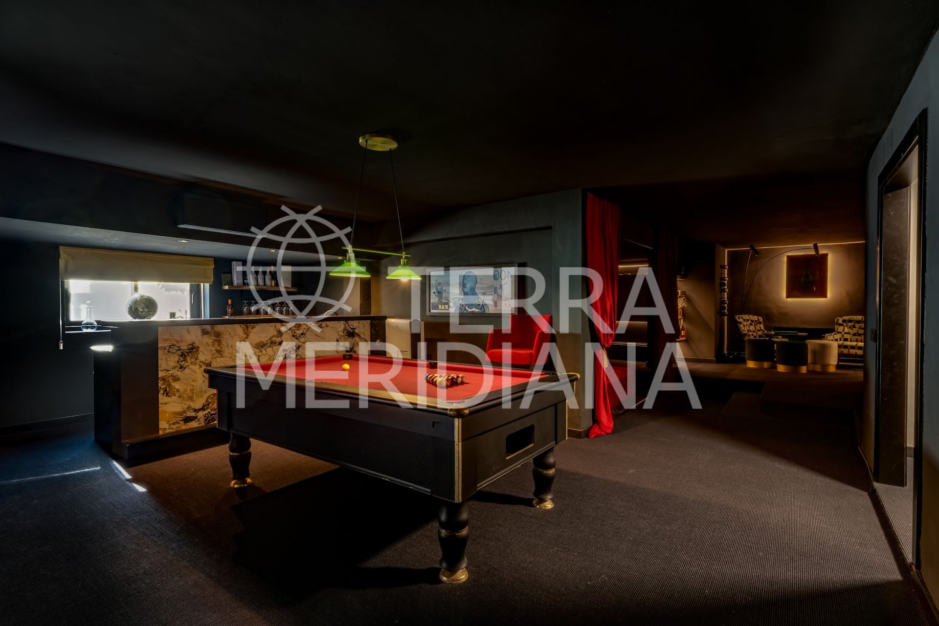 Basement: Perfectly designed for relaxation and entertainment, the basement features a games room, a stylish bar with a lounge area, a cinema room, and a wine cellar. This level also includes two guest bedrooms sharing a bathroom and generous storage space. Additionally, the basement includes a garage and a machine room.