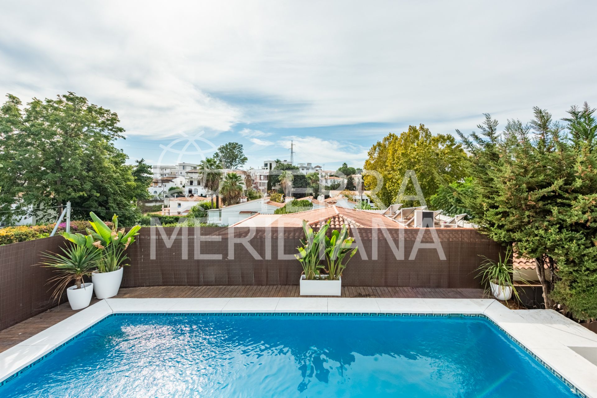Discover an exceptional investment opportunity in the heart of Nueva Andalucía: a charming detached villa located at Avenida de los Girasoles, located in one of Marbella’s most desirable areas: walking distance to amenities, restaurants, shops and top golf courses. Offering enormous rental potential for both holiday and mid-term guests.