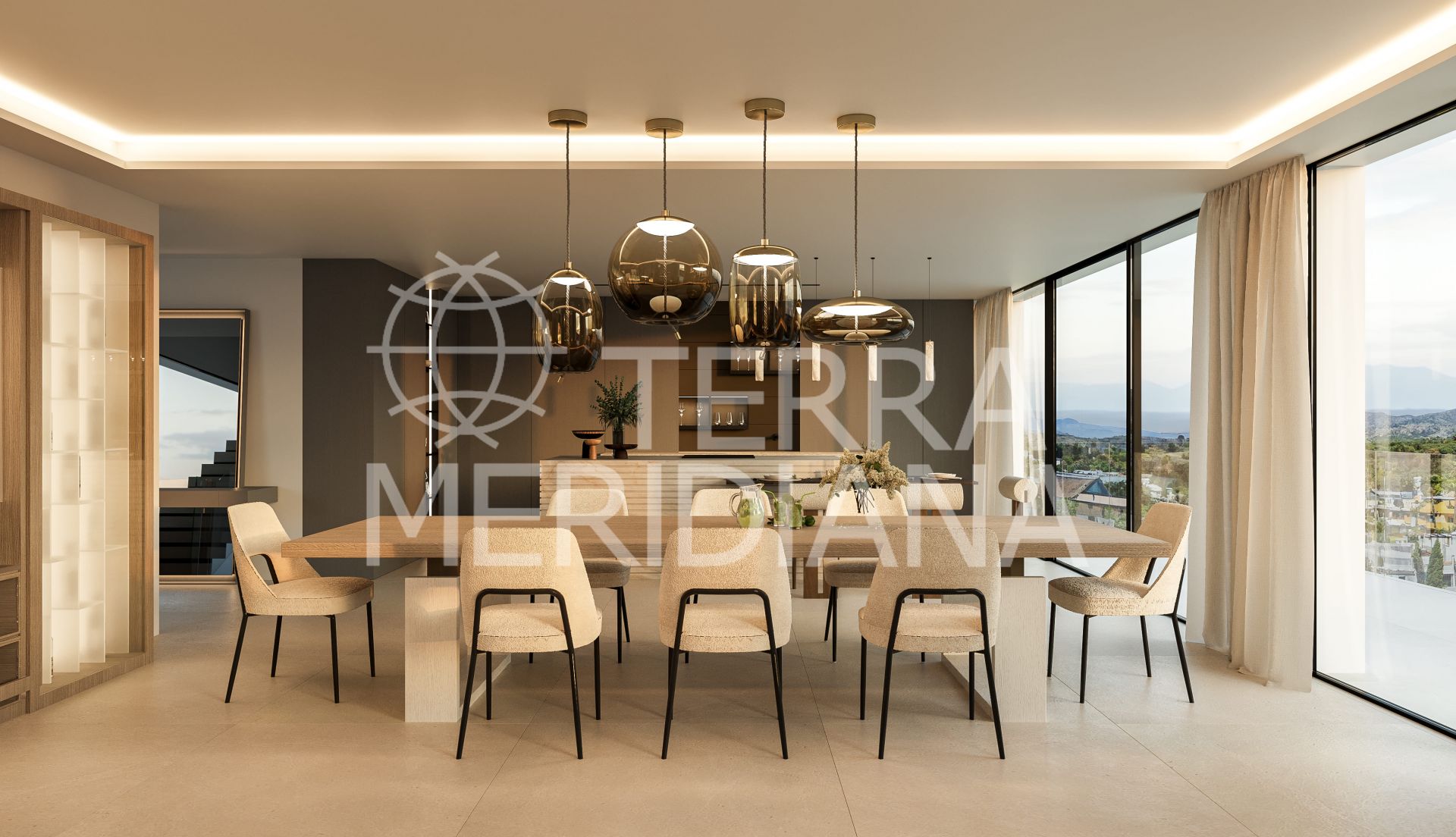 Designed by renowned architects Jesús Estepa Rubio and Antonio Estepa Rubio of ER Arquitectos, and styled by AALTO Exclusive Design, the villa showcases a harmonious fusion of natural stone, sleek glass elements, and clean architectural lines. The open-plan living and dining areas are bathed in natural light, thanks to floor-to-ceiling windows that frame breathtaking views of the surrounding landscapes.