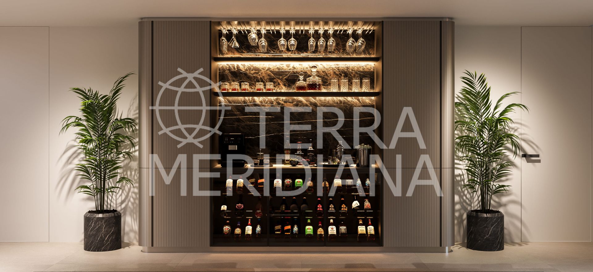 Outdoor living is equally impressive, with expansive terraces, a pergola with adjustable openings, and a private swimming pool surrounded by lush Mediterranean gardens. The villa also includes a fully equipped gym, a stylish bar and lounge area, and a basement designed for versatile use.
