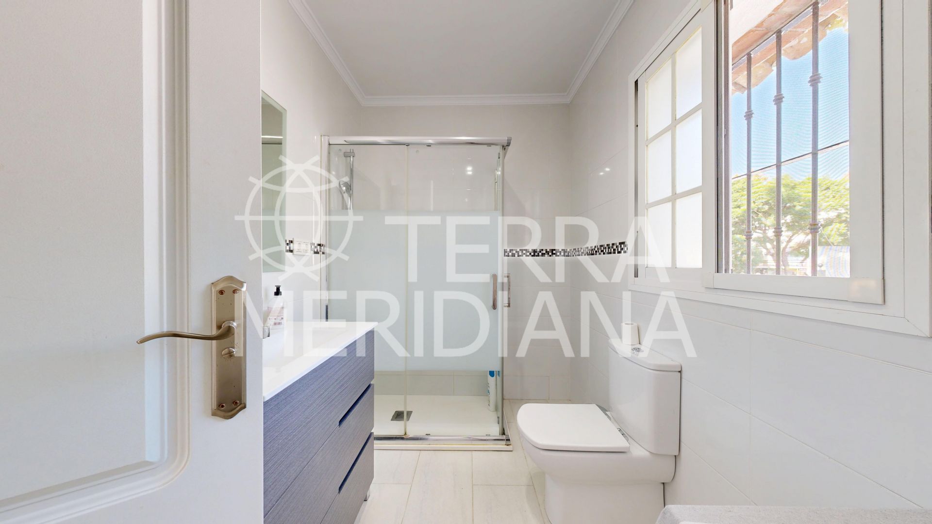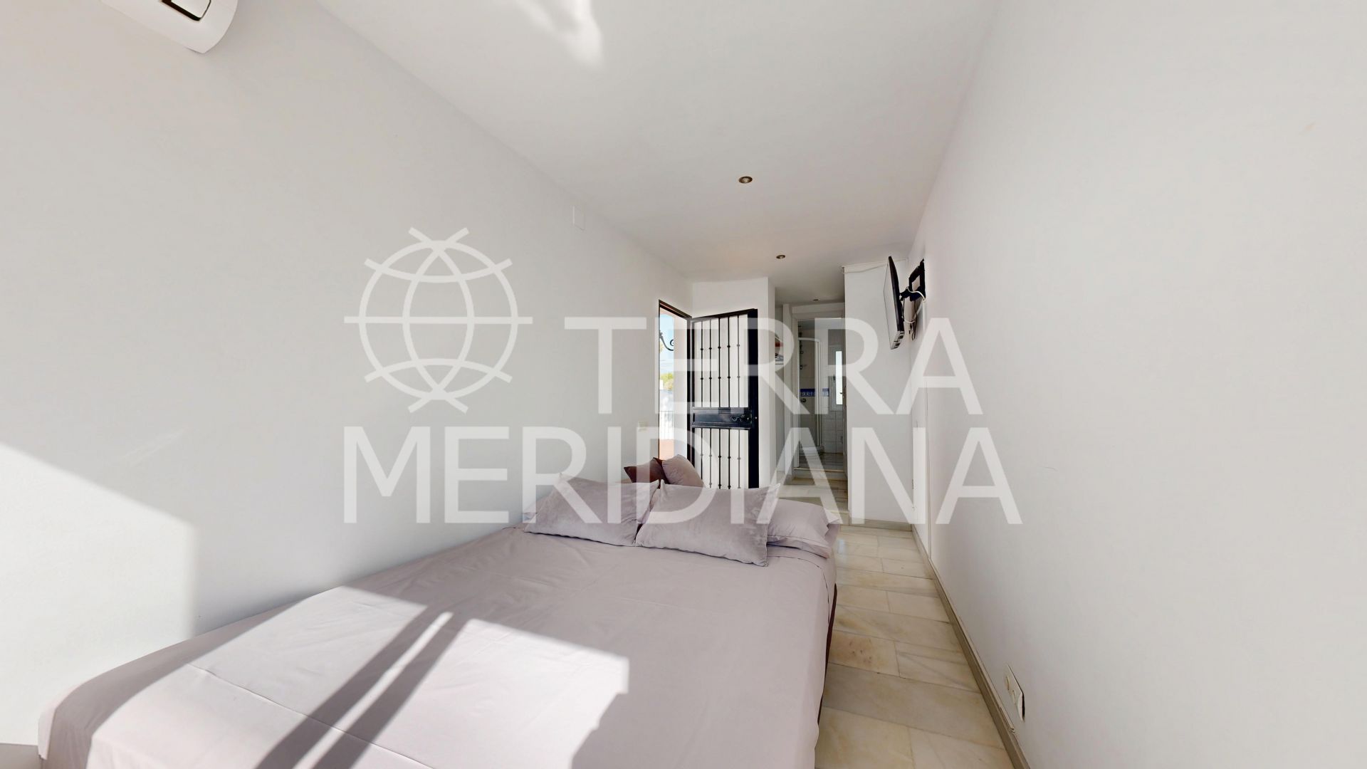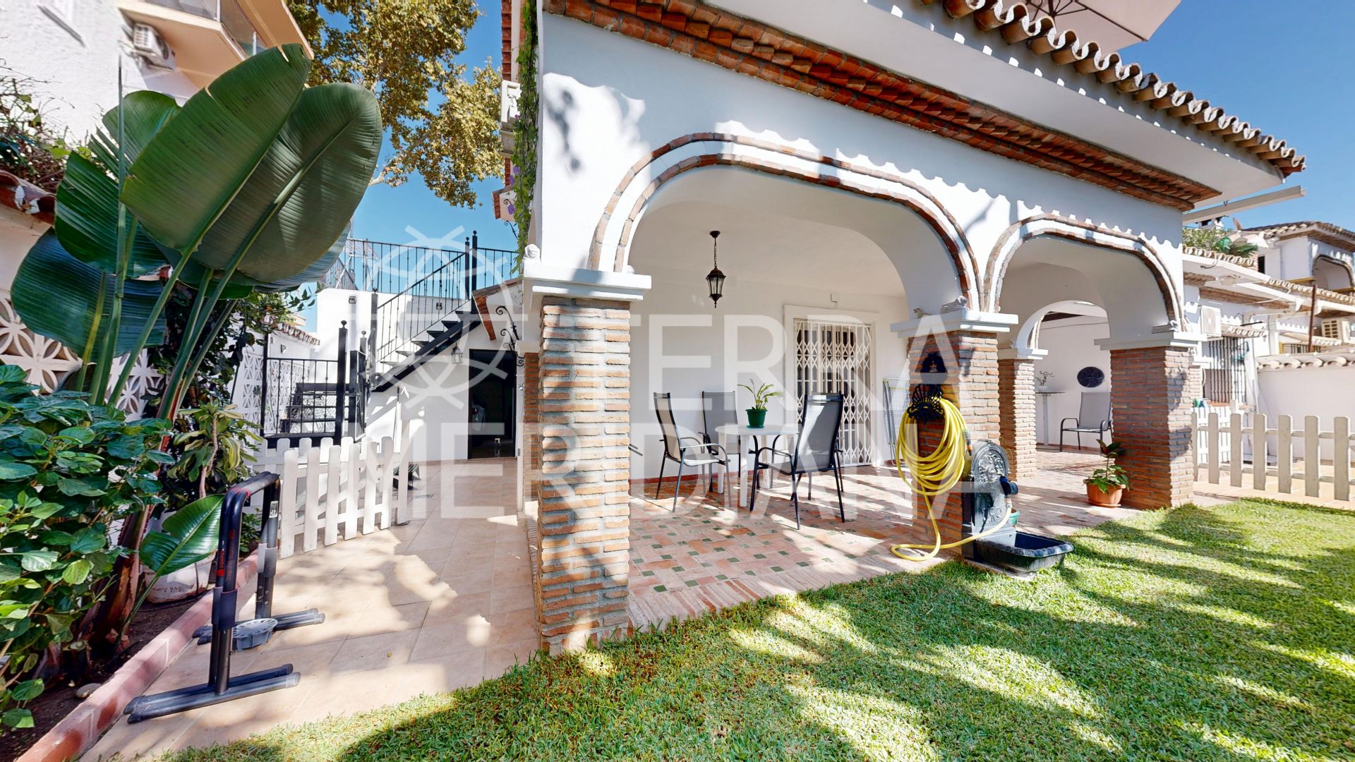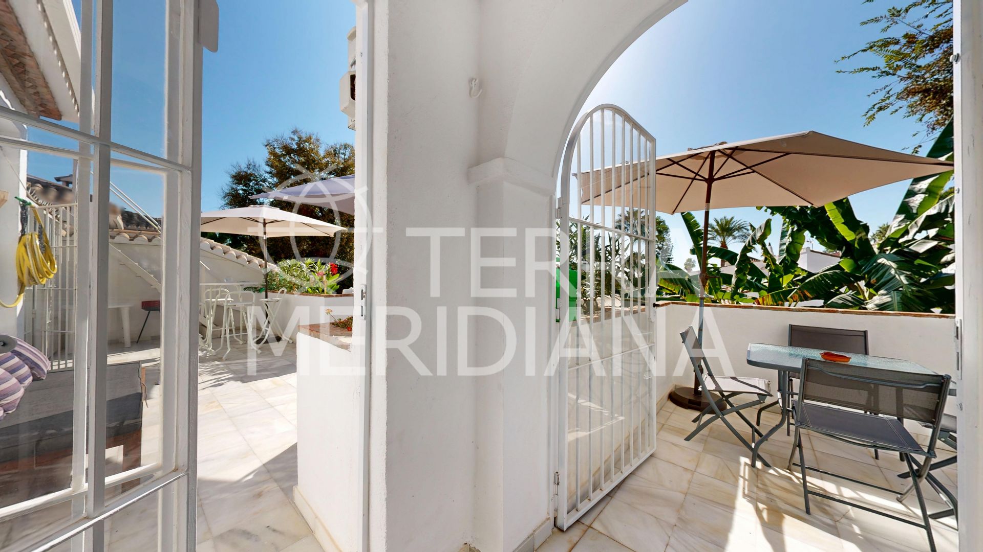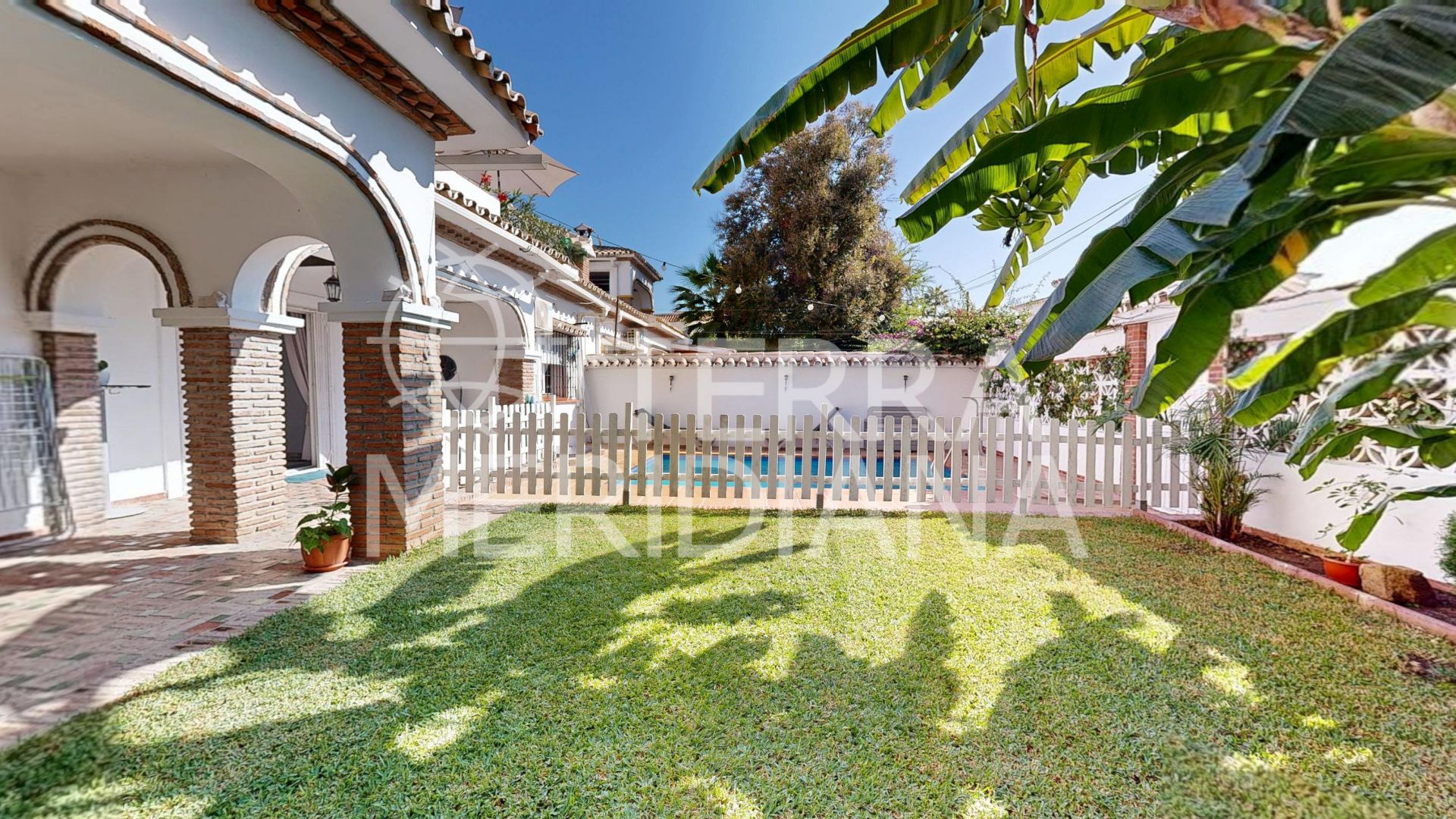 Interiors with Character: A charming Andalusian entrance patio welcomes you. The two-story layout offers generous spaces. The main floor houses the living-dining room with direct access to the garden, an equipped kitchen, and two bedrooms. The upper floor is reserved for the main bedrooms, featuring fitted wardrobes and large private terraces with South/West orientation. Marble flooring enhances the timeless character.
