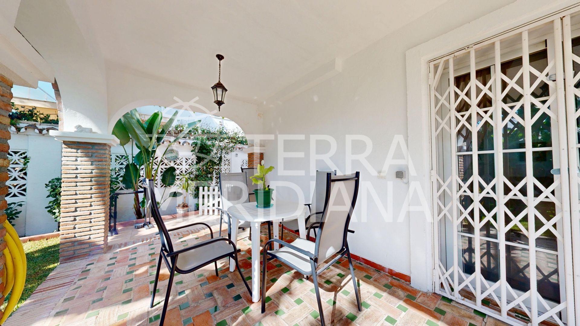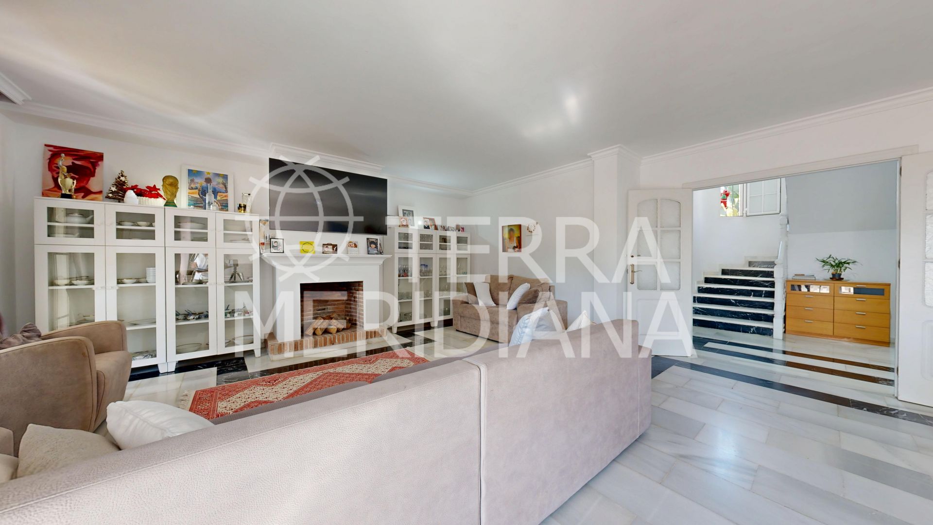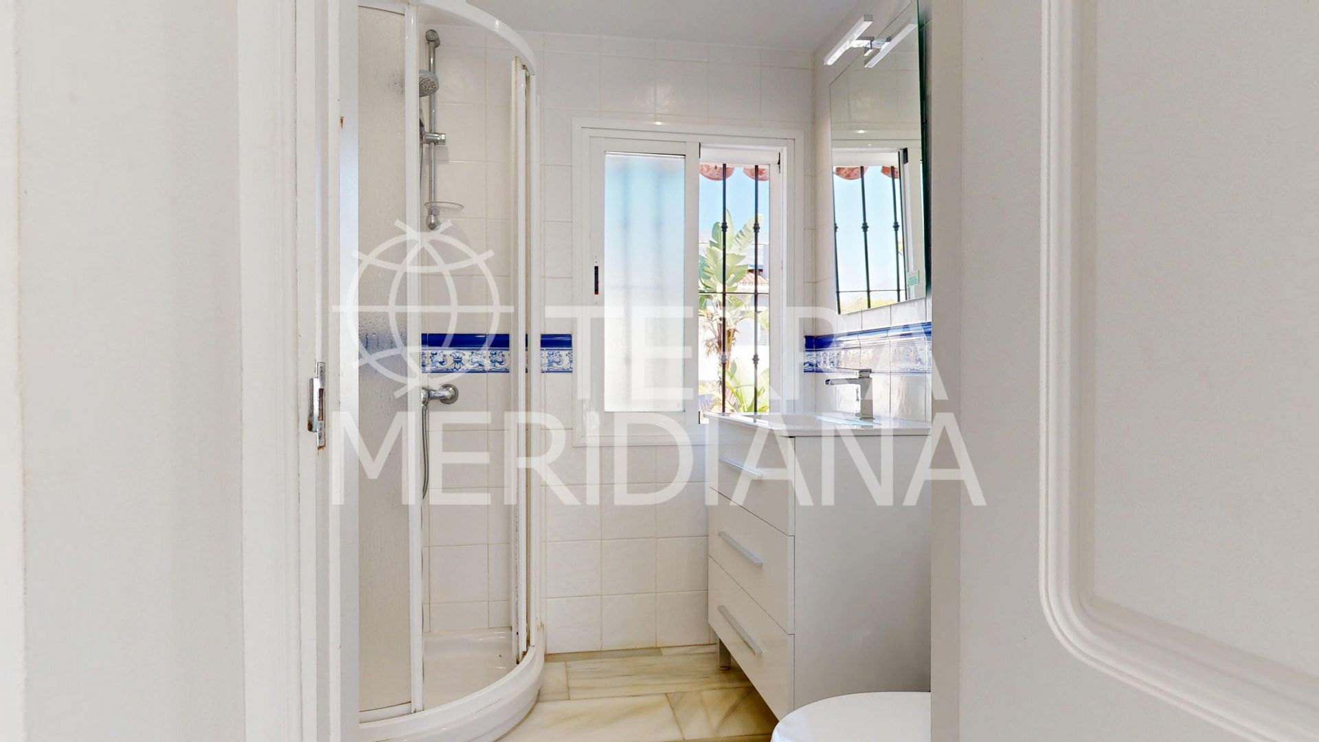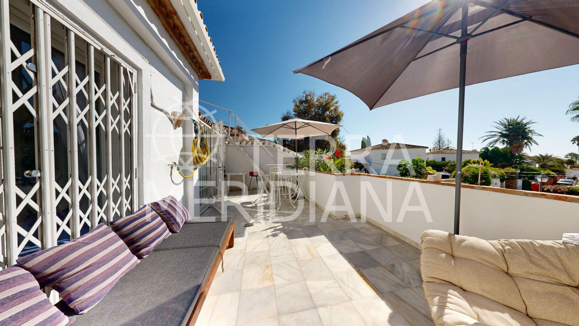 Interiors with Character: A charming Andalusian entrance patio welcomes you. The two-story layout offers generous spaces. The main floor houses the living-dining room with direct access to the garden, an equipped kitchen, and two bedrooms. The upper floor is reserved for the main bedrooms, featuring fitted wardrobes and large private terraces with South/West orientation. Marble flooring enhances the timeless character.