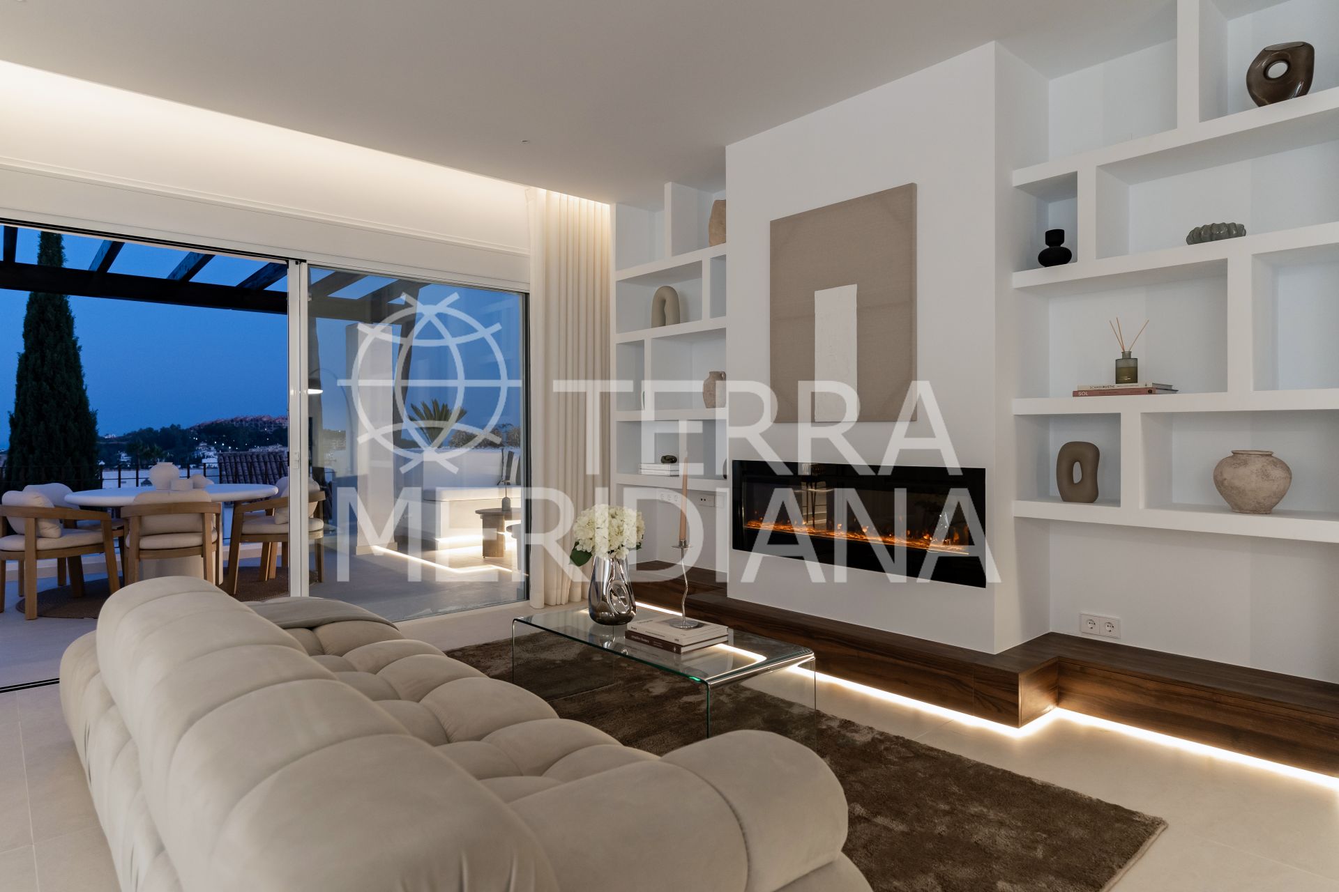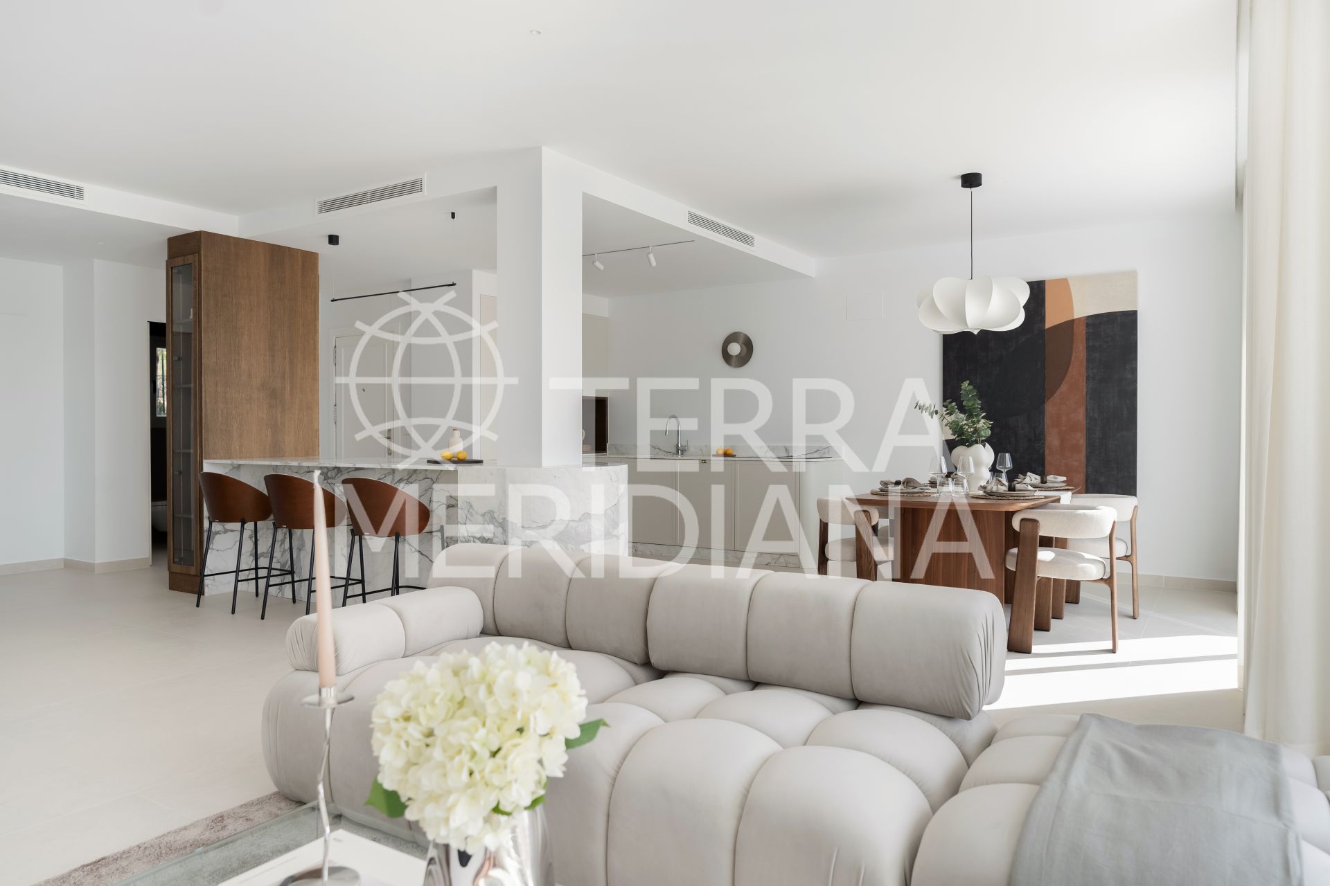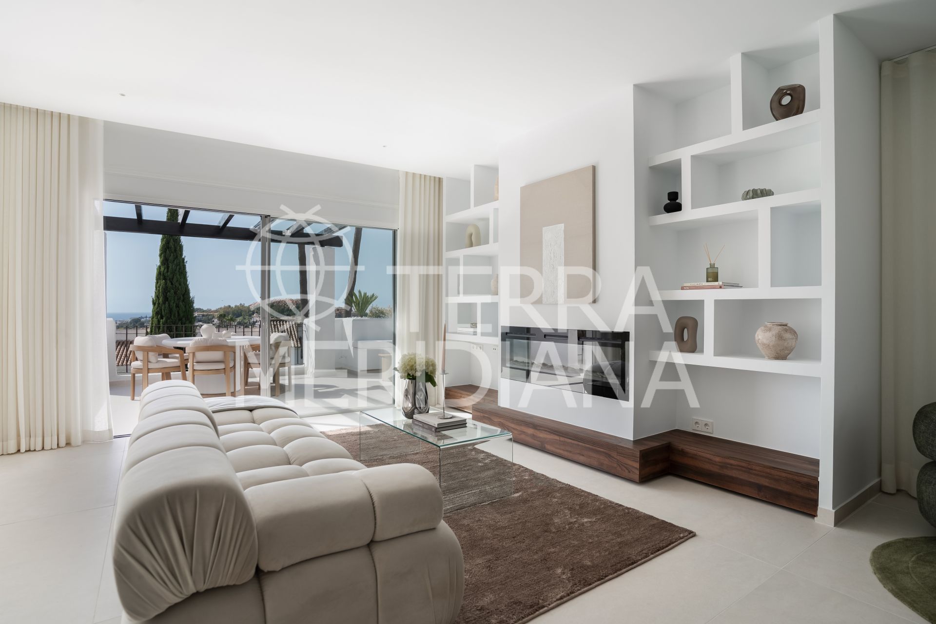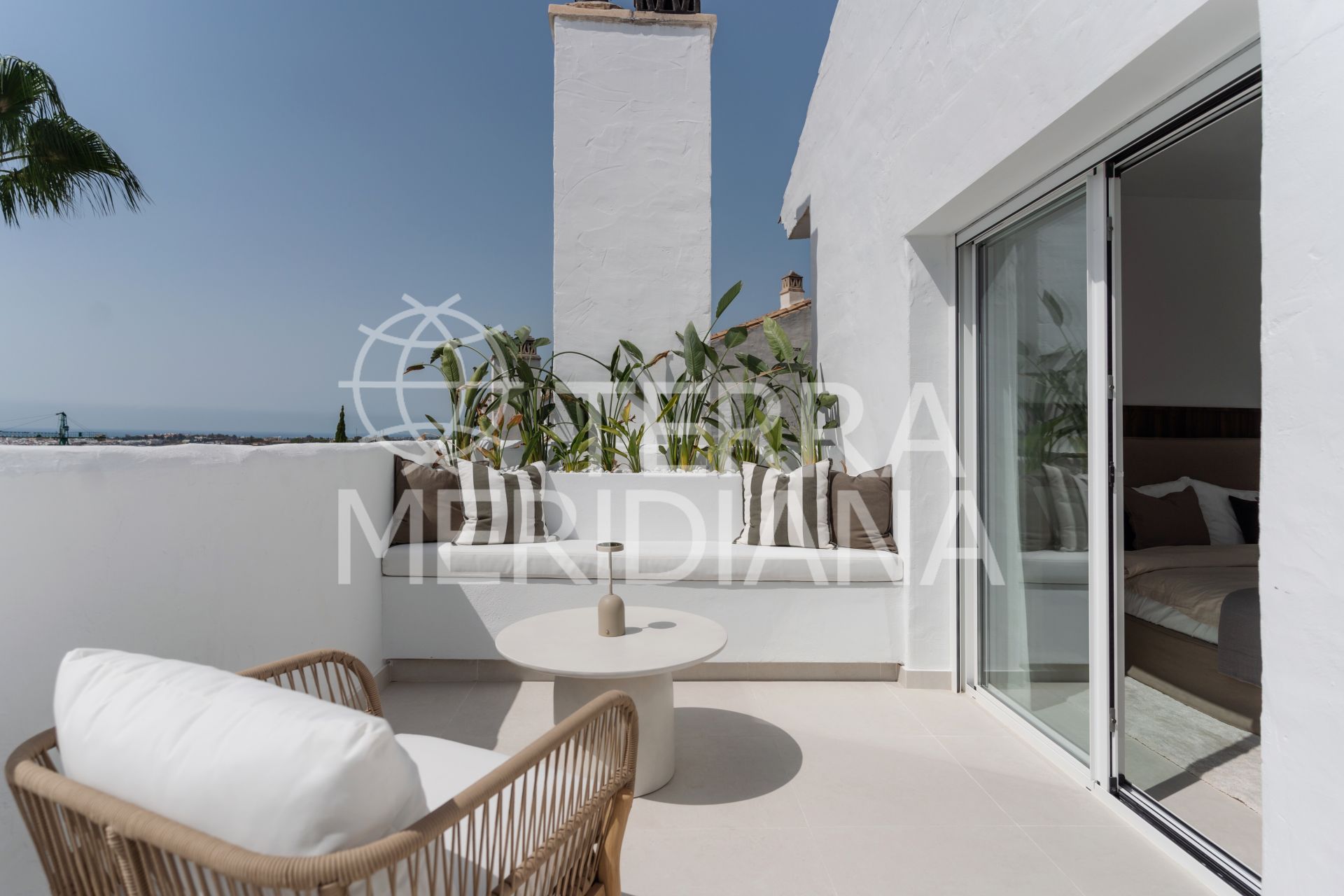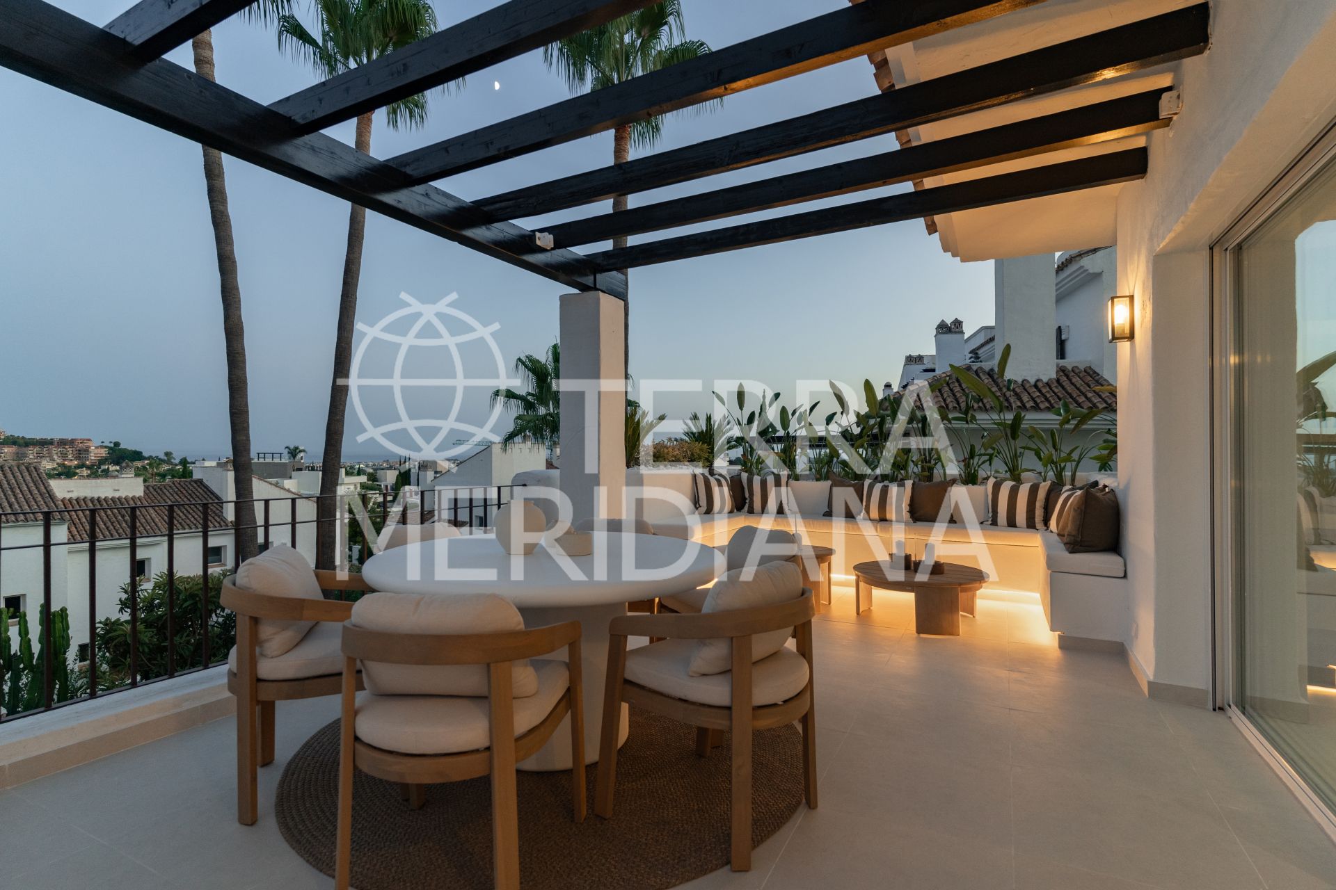 Fully renovated and effortlessly stylish, this 3-bedroom, 3-bathroom corner penthouse blends sleek Scandinavian design with sweeping Mediterranean views. Spread across two levels, this bright and airy home is made for laid-back coastal living.