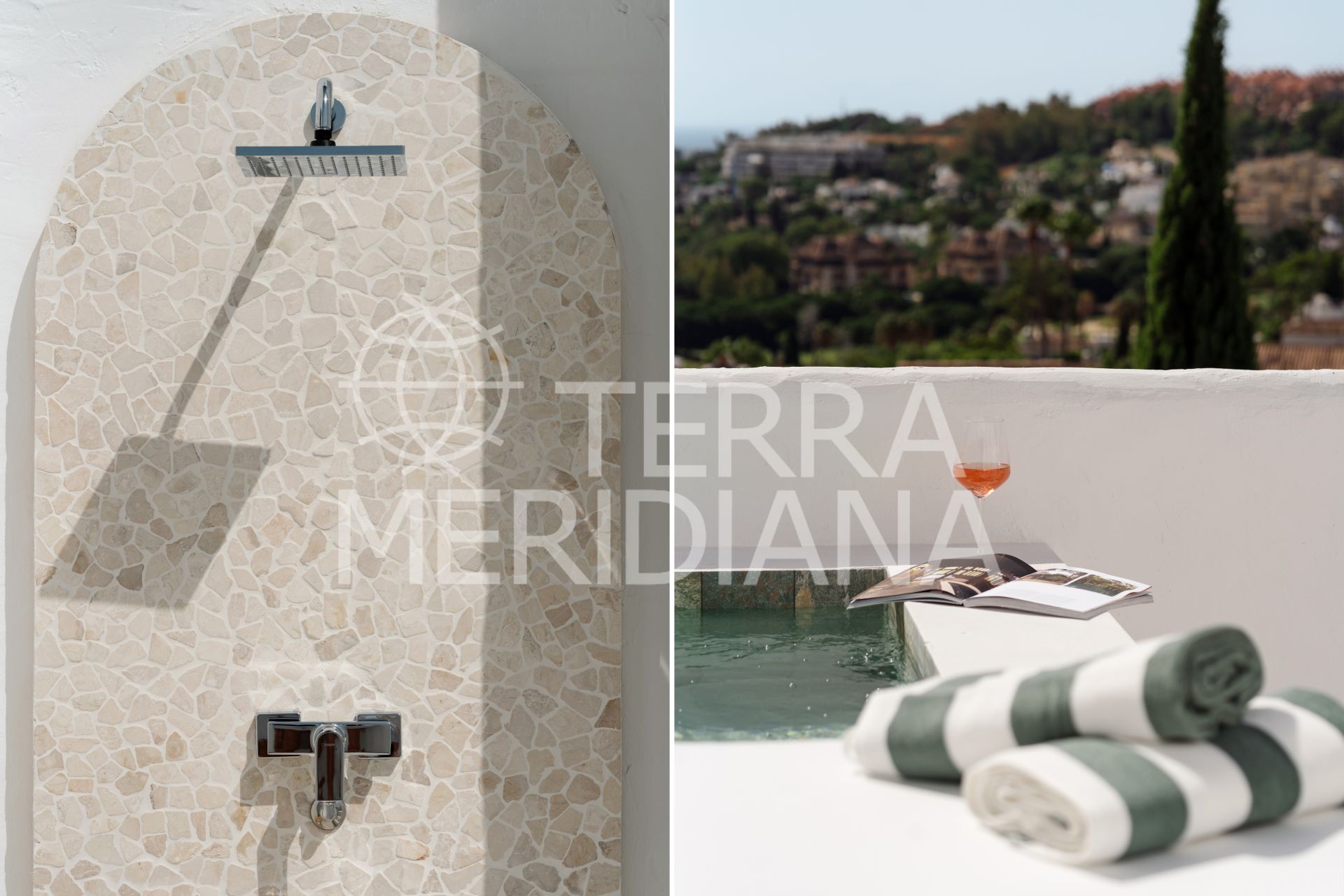 Upstairs, two more en-suite bedrooms each enjoy their own terrace. The master suite offers a walk-in closet and a spacious terrace complete with a private plunge pool, outdoor shower, and uninterrupted sea views, a true retreat.