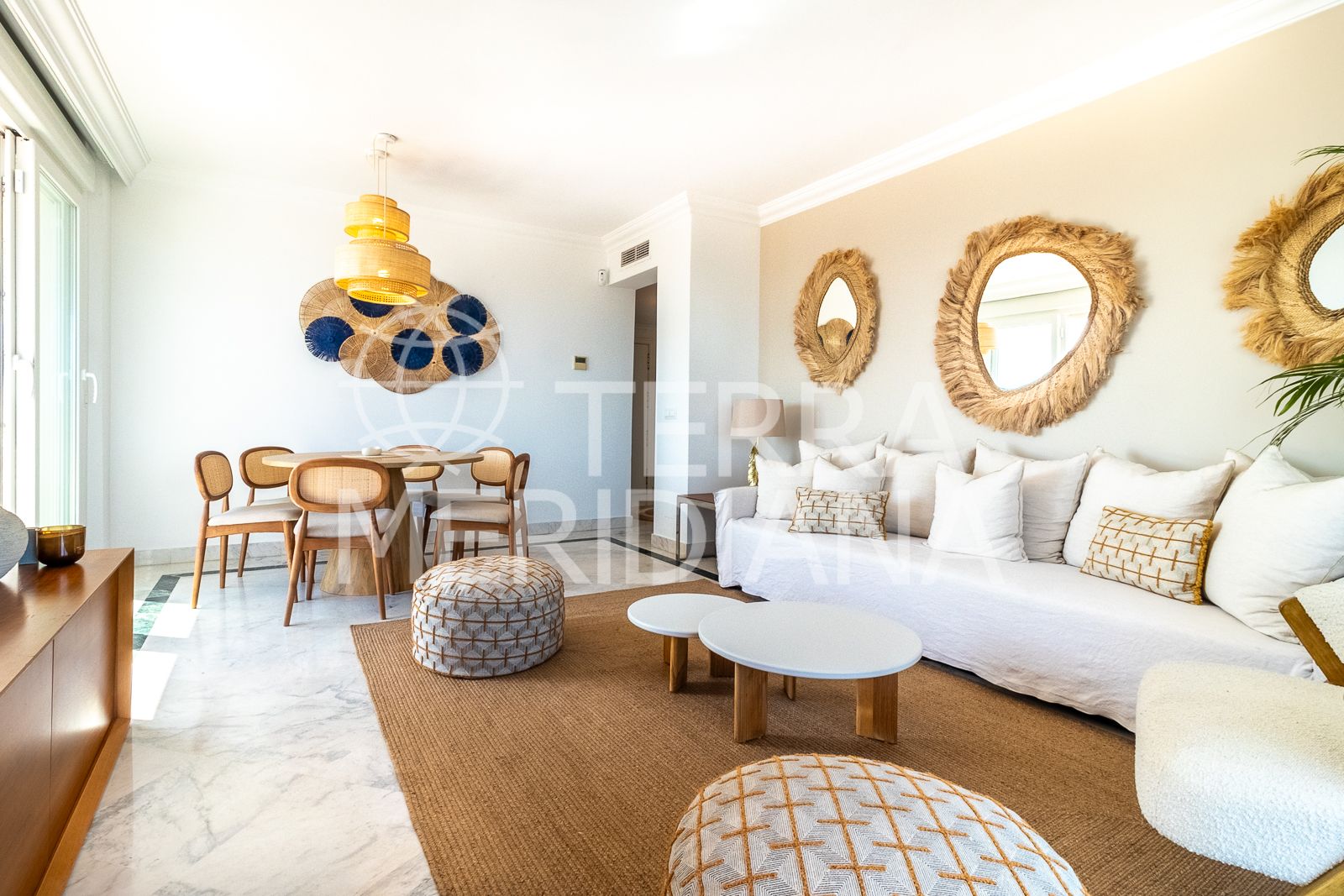 Inside, the apartment is bright and spacious, combining elegance and comfort across its three generously sized bedrooms and open-plan living spaces with direct access to the terrace.