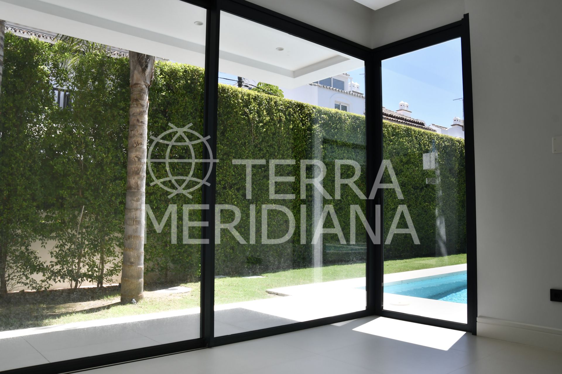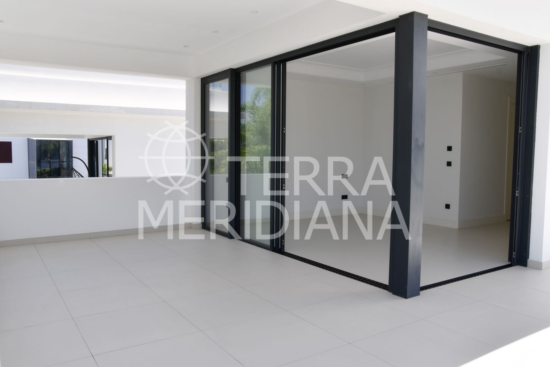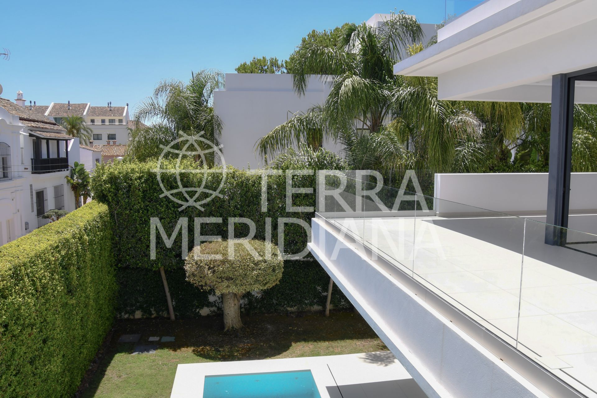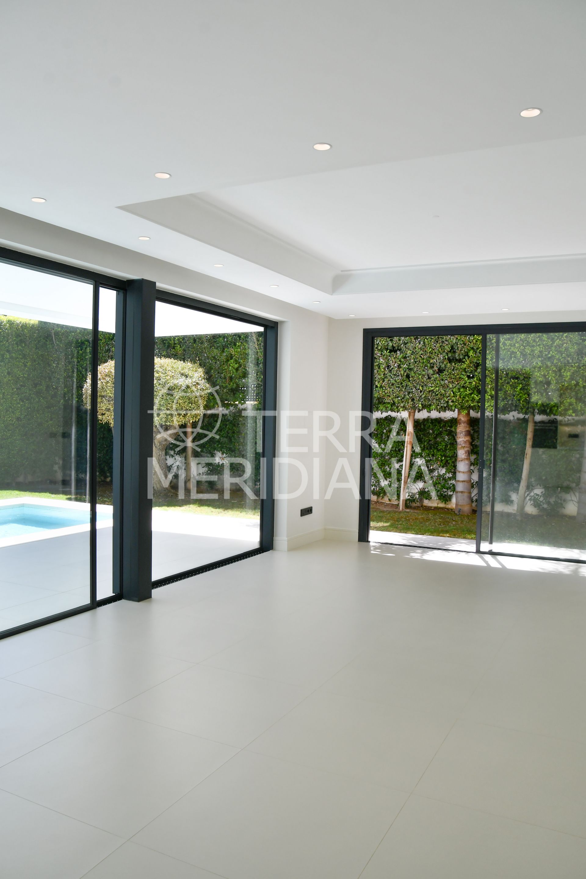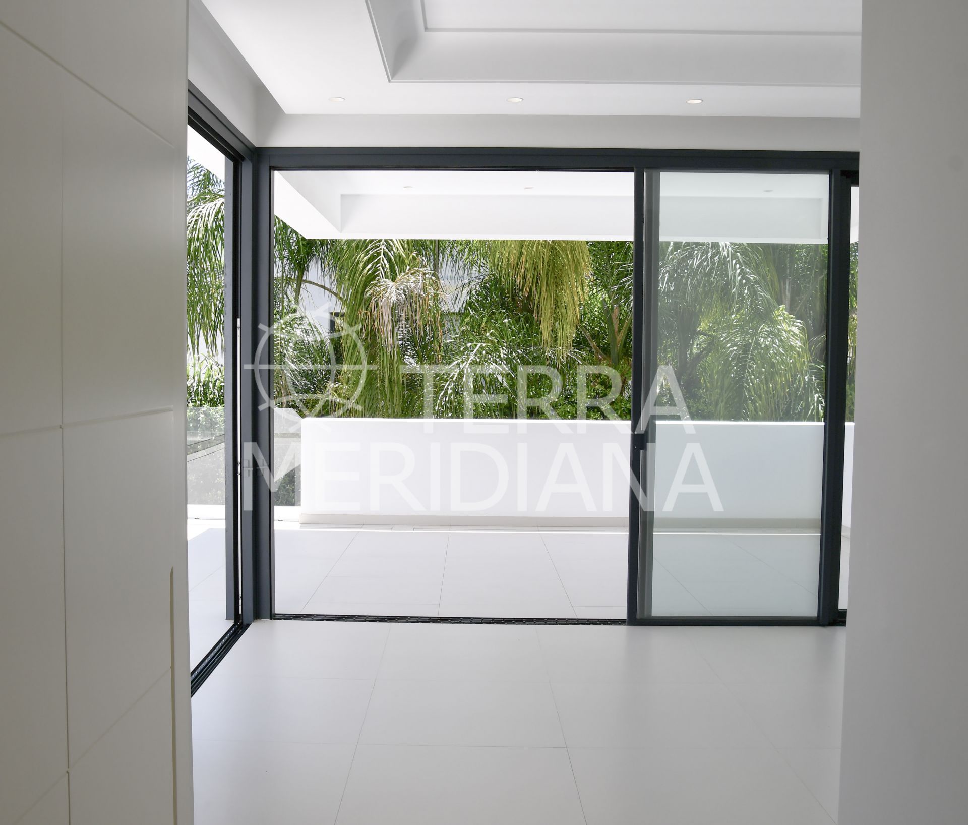 A marvelous new modern villa for sale is located in one of the most luxurious residential areas in Marbella – Golden Mile, in a secure urbanization Rio Verde, just 100 meters from the beach.